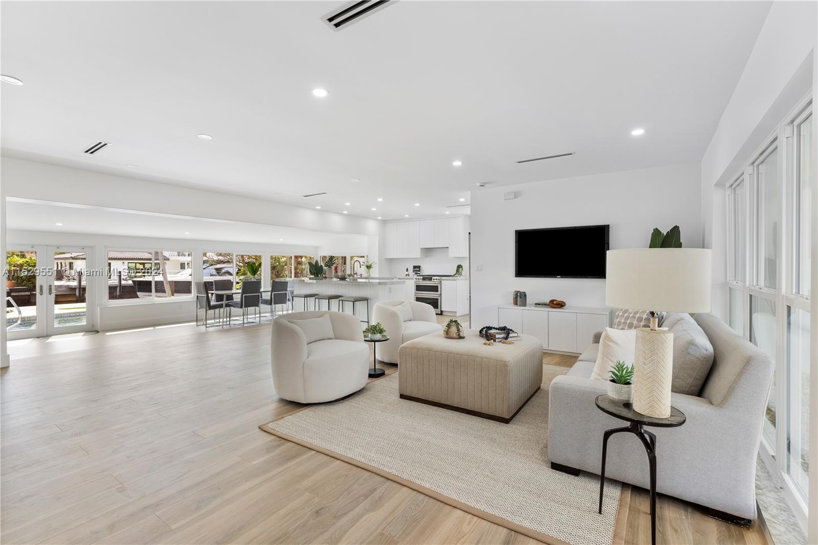 Meticulously renovated luxurious waterfront residence in the prestigious Pompano Isles community. This prime location with no fixed bridges is the epitome of South Florida luxury living. Redesigned by interior designer Susanne Wong. 3 bedrooms & 3 bathrooms on a seamlessly floor plan with Acero Sabia porcelain tiles & marble flooring. Gourmet kitchen with custom cabinetry & top-of-the-line stainless steel appliances. Impact windows & doors, new plumbing & electrical. The primary suite offers panoramic waterway & pool views, showcasing an on-suite oversized dual shower & sink. Indulge in 75' of waterfront on the newly installed wood composite private dock with lift. Resurfaced & tiled pool, new tiki & lush landscaping. Conveniently located near fine dining, attractions & premier shopping.