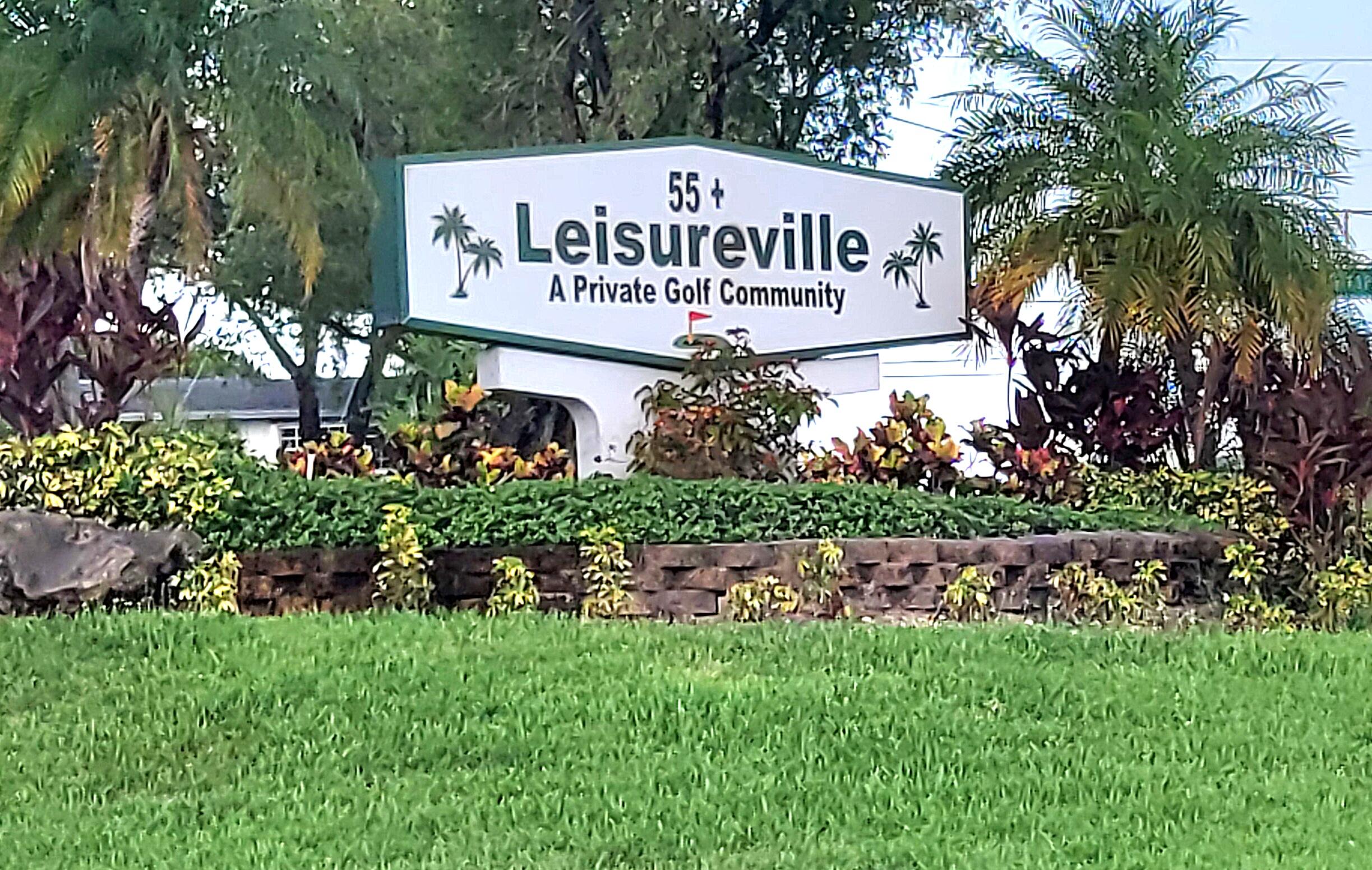 Hey we're Back On The Market with a Seller Incentive!!!This beautifully kept 2/2 home is one of the largest models built in Leisureville. This home offers an oversized living room & formal dining area, The large kitchen has new stainless steel appliances & an area for a breakfast nook. Large master has a private bath with oversized shower & walk in closet. 2nd bedroom may also be used as an office. The community is well kept and HOA Fees cover the Lawn Care, Water, Sprinklers, House Painting and Roof Coating. This is a pet-friendly, 55+ community which includes 2 heated pools, private golf course, 2 clubhouses & courtesy bus for local shopping. No renting for 1 year. 700 Credit Score required. Dining Chandelier Does Not convey!