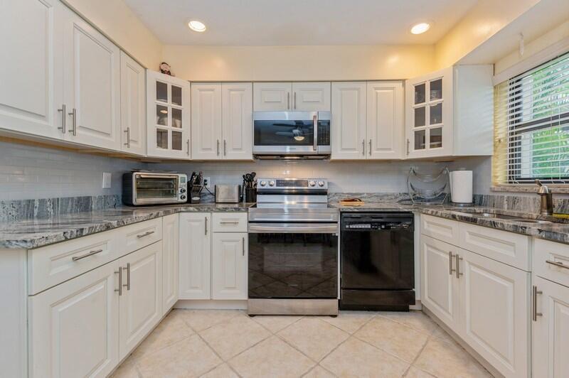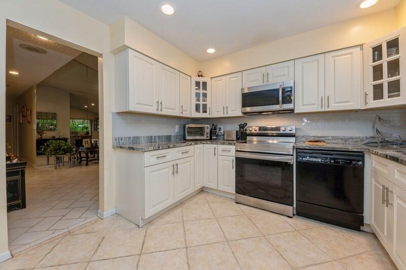 Reduced Beautifully Updated 2BR/2BA CBS home w/over 1,600 Liv Sqft in Highly DESIRABLE 55+ COMMUNITY of Greenbriar in Boca Chase!! Spacious Living Room w/Vaulted Ceilings leads you to the Big & Bright Family/Florida Room adjacent to the large Screened Porch. All overlooking the Park like setting, in your Back yard. Home features a upgraded kitchen in (2021) w/a Breakfast nook, Lots of upgraded Cabinetry, Granite Counter Tops, & Stainless Steel appliances. Updated Vanities in both bathrooms, most windows & doors are new Impact Glass Storm Windows(2022), plus most openings still have Accordion Hurricane Shutters. The roof was replaced in 2021. Home has been freshly painted Inside & out, new outlets/switches installed, along with a new Paddle Fan in Family Room & numerous light fixture