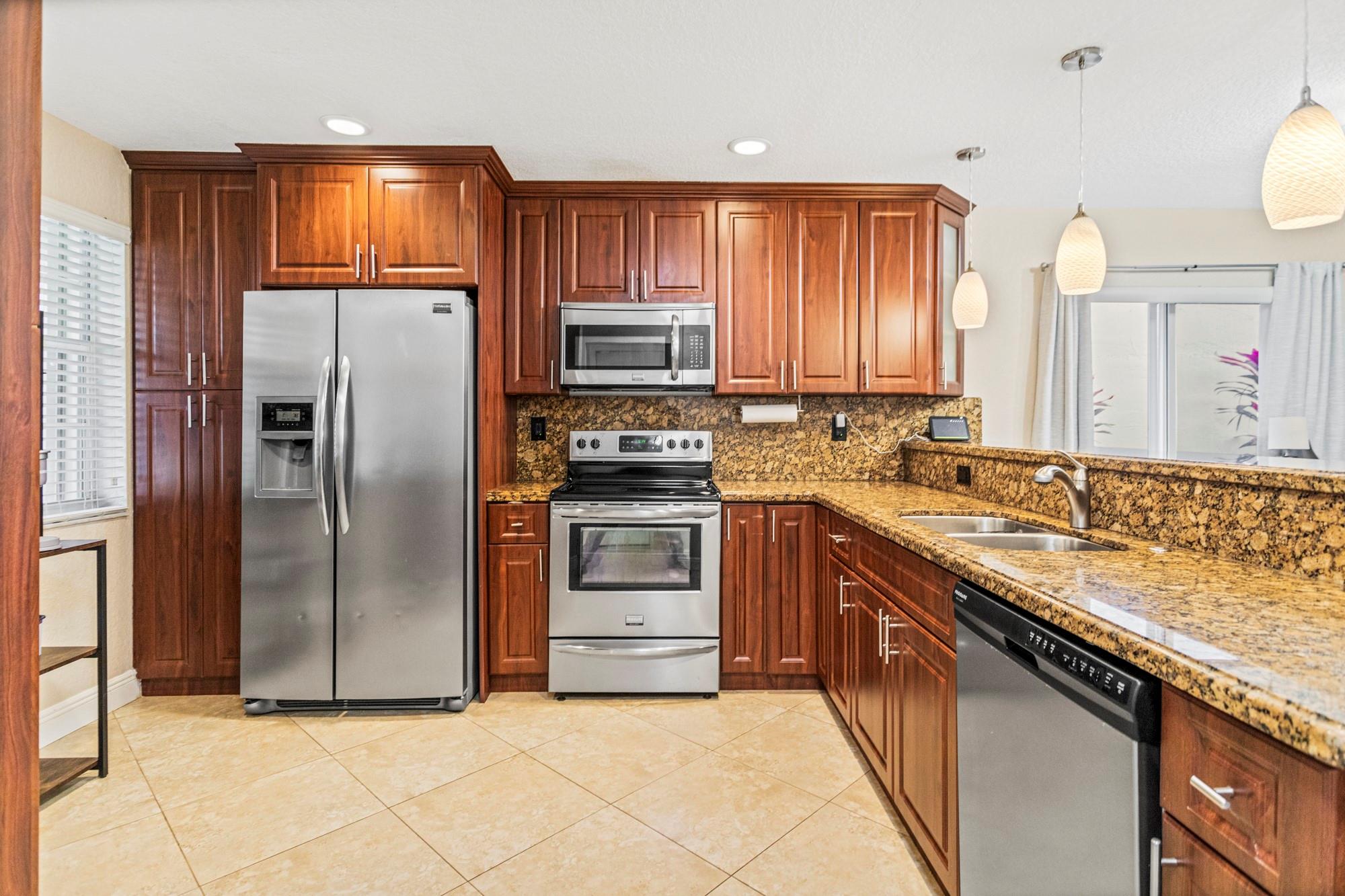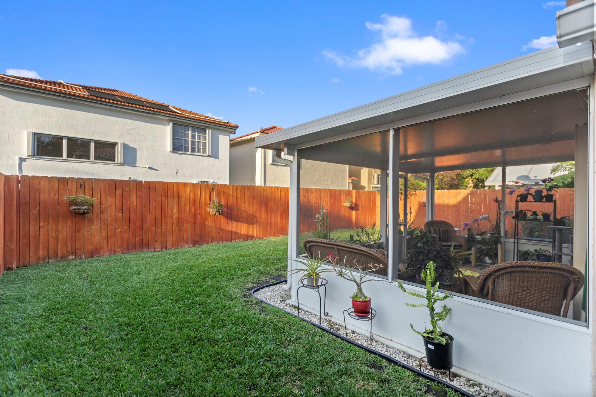 Stunning 3 bedroom 2.5 bath 2 story home located in the sought after neighborhood of the Trellises at Embassy Lakes. Open floorplan with oversized tile in the main living area and wood laminate floors throughout the bedrooms and stairs. Walk in closets in all bedrooms with master located on the first floor. Kitchen has wood cabinets and granite countertops with stainless steel appliances. 2014 tile roof, tankless water heater, Fence, Landscaping, Garage door all from 2021/22. Garage features washer/dryer and 220 electric car outlet New light fixtures and blink security system with Accordion shutters included! The newly enclosed patio and fence allow for maximum privacy. Multiple amenities including tennis, gym, pool, playgrounds and tennis court. Plus, the best A rated schools around!