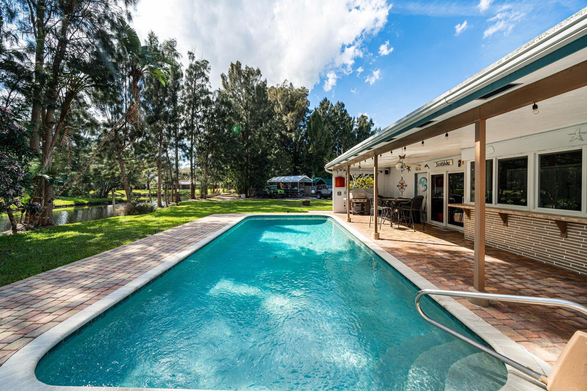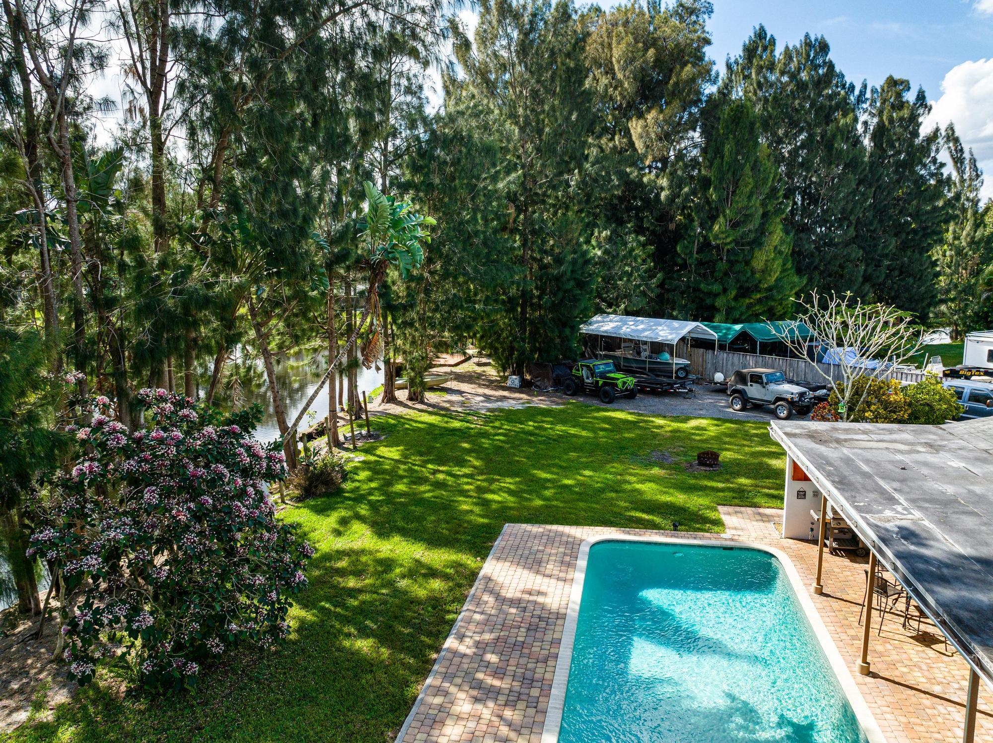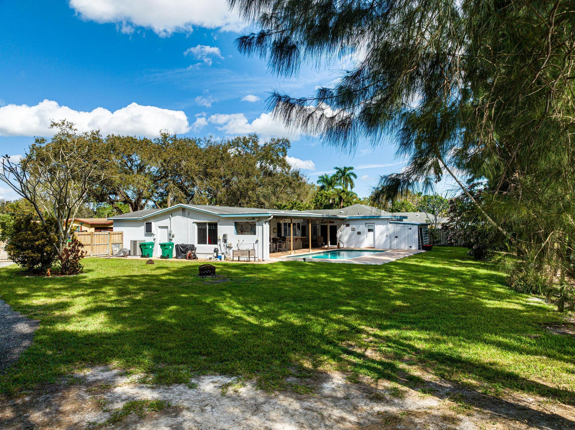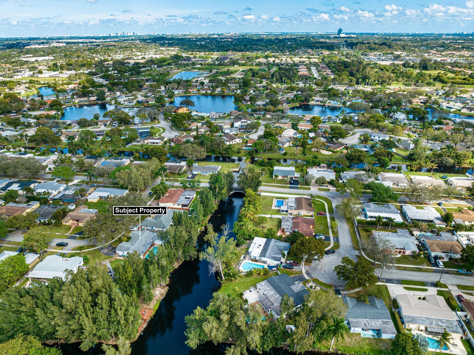 Rarely available waterfront home in Cooper City, with newer roof. The backyard offers spectacular water views with upper and lower level docks, a large pool, and beautiful pine trees providing ample shade, perfect for gatherings and entertainment. Bring your boats, RVs, or trailers; this oversized corner lot has parking like no other. Additional features include a generator hookup, two sheds, impact windows, updated guest and master bathrooms and a newly renovated kitchen. The saltwater pool was resurfaced with new diamond brite in 2023, and a quality American Standard A/C was installed in 2021. This home is centrally located in Cooper City and is conveniently located next to the best schools, restaurants, and entertainment including the nearby Golf Course. No HOA!