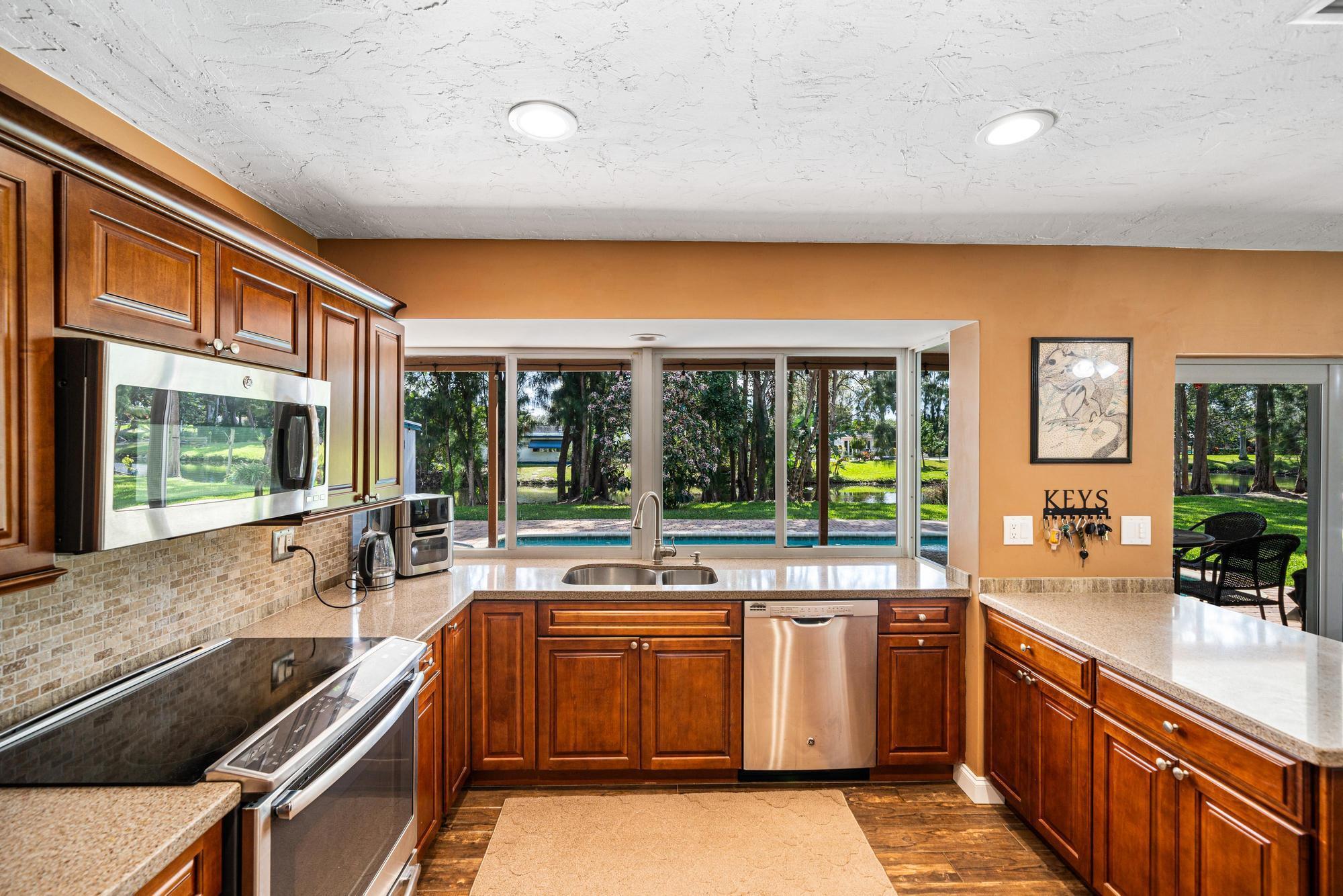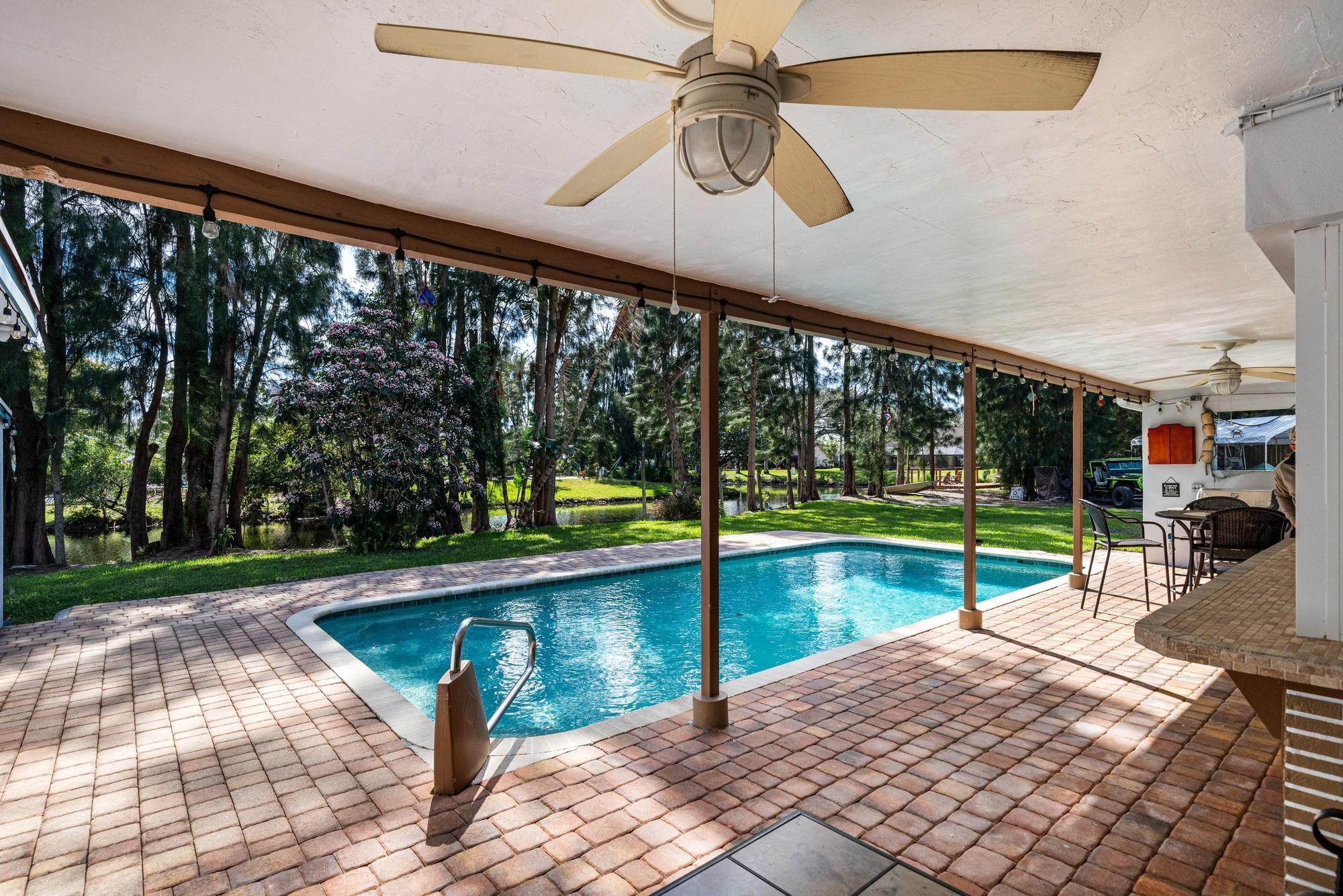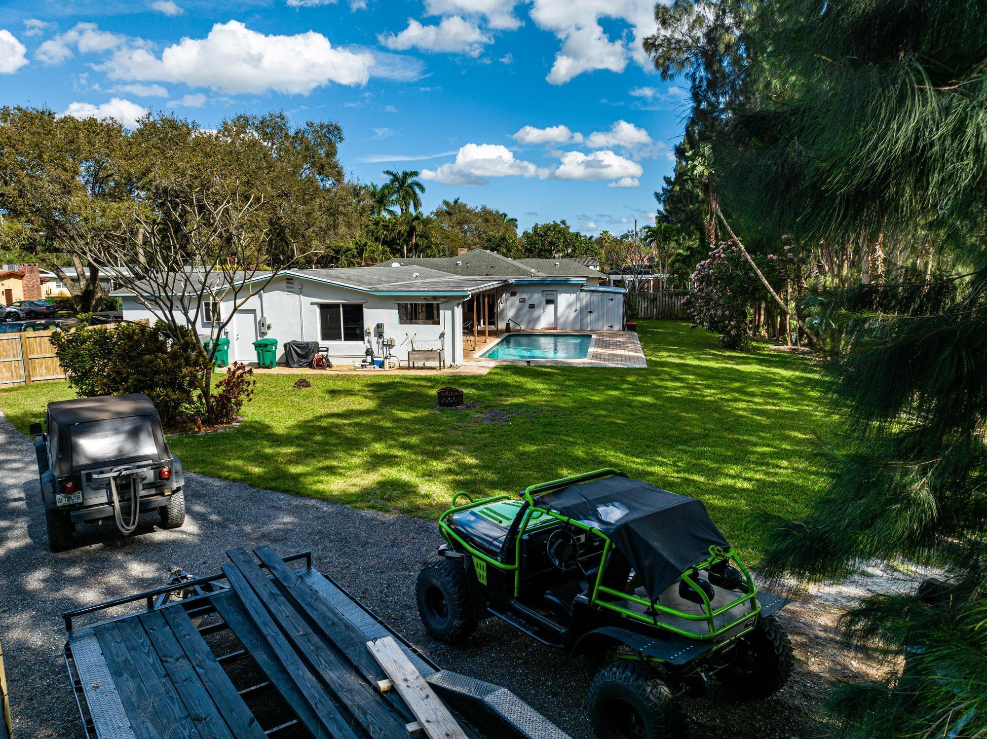 Rarely available waterfront home in Cooper City, with newer roof. The backyard offers spectacular water views with upper and lower level docks, a large pool, and beautiful pine trees providing ample shade, perfect for gatherings and entertainment. Bring your boats, RVs, or trailers; this oversized corner lot has parking like no other. Additional features include a generator hookup, two sheds, impact windows, updated guest and master bathrooms and a newly renovated kitchen. The saltwater pool was resurfaced with new diamond brite in 2023, and a quality American Standard A/C was installed in 2021. This home is centrally located in Cooper City and is conveniently located next to the best schools, restaurants, and entertainment including the nearby Golf Course. No HOA!