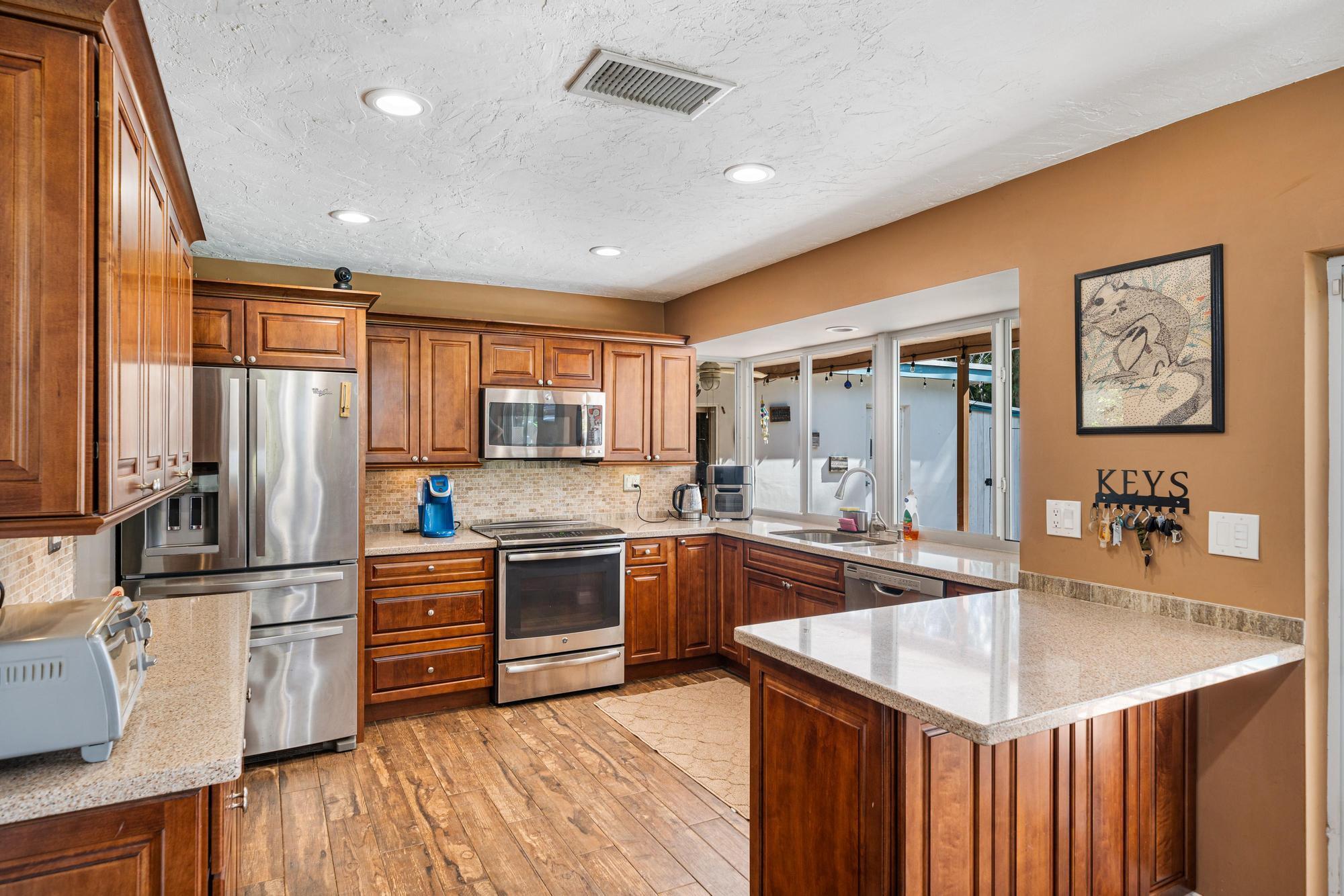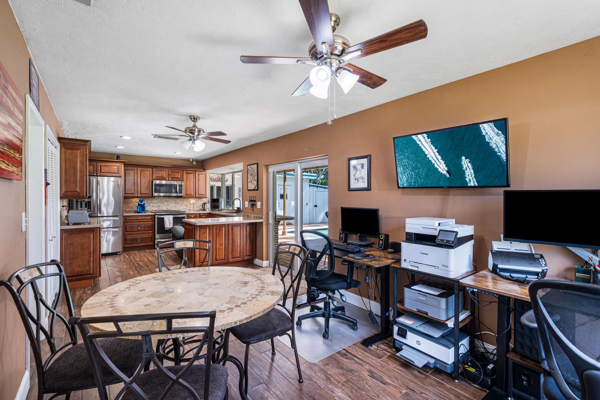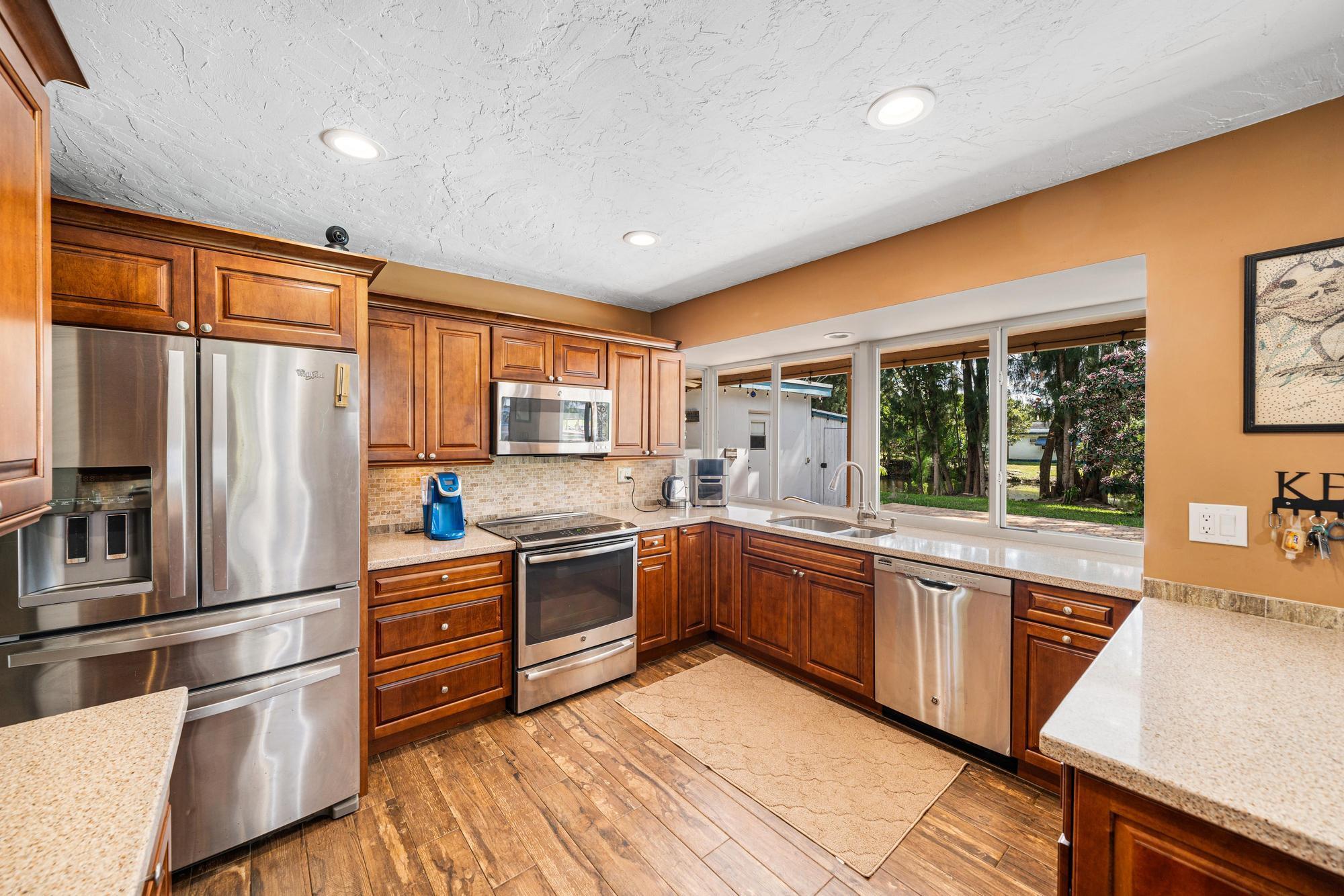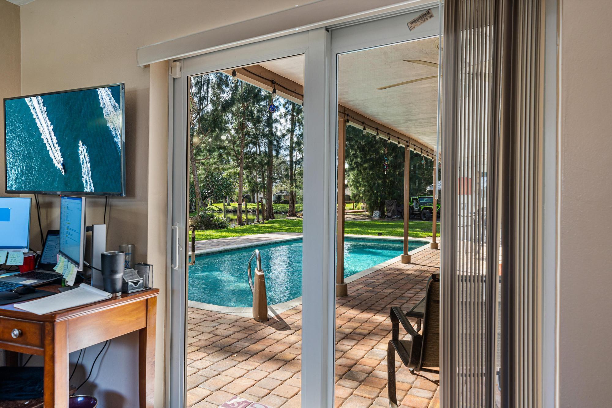 Rarely available waterfront home in Cooper City, with newer roof. The backyard offers spectacular water views with upper and lower level docks, a large pool, and beautiful pine trees providing ample shade, perfect for gatherings and entertainment. Bring your boats, RVs, or trailers; this oversized corner lot has parking like no other. Additional features include a generator hookup, two sheds, impact windows, updated guest and master bathrooms and a newly renovated kitchen. The saltwater pool was resurfaced with new diamond brite in 2023, and a quality American Standard A/C was installed in 2021. This home is centrally located in Cooper City and is conveniently located next to the best schools, restaurants, and entertainment including the nearby Golf Course. No HOA!