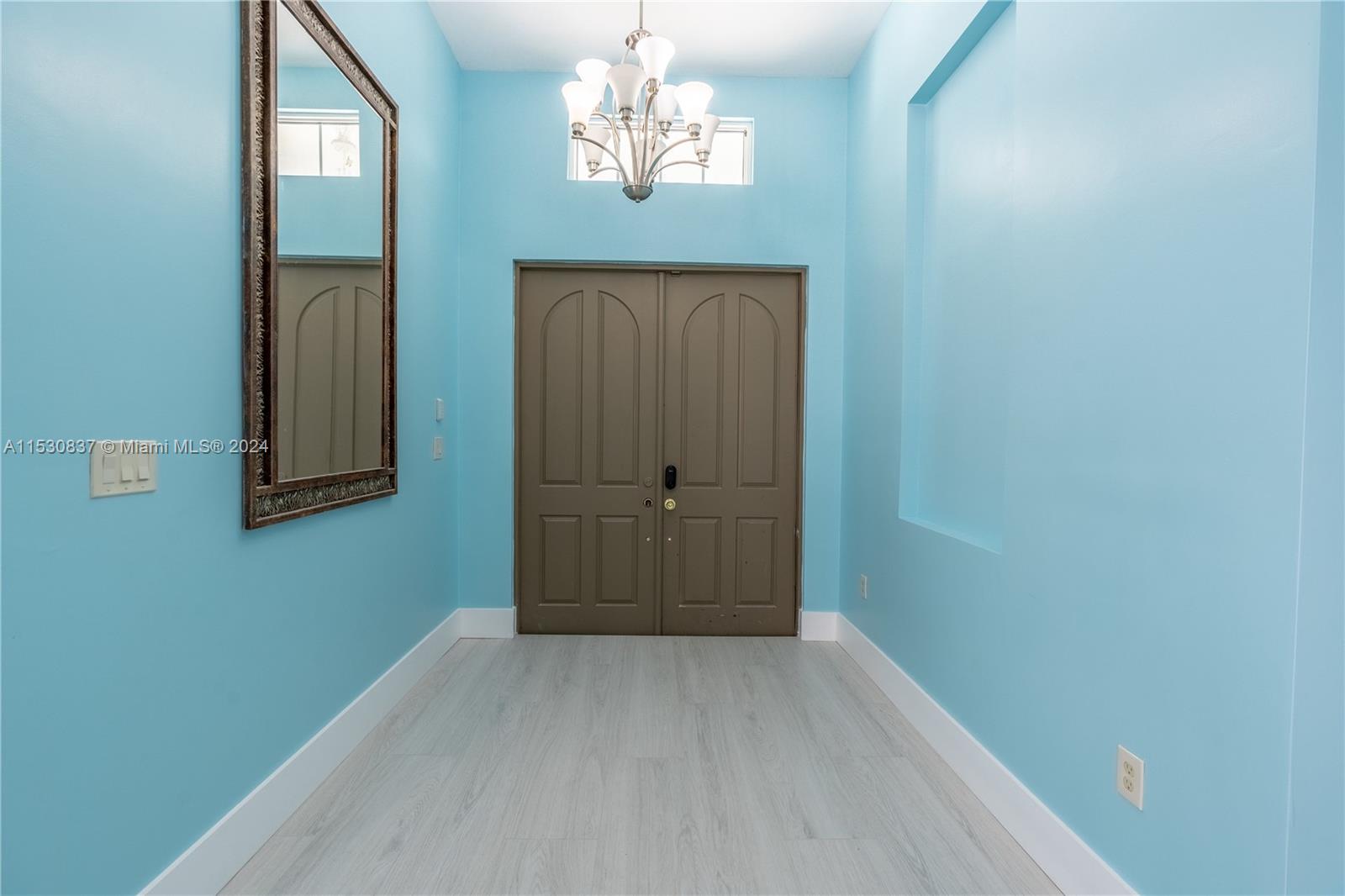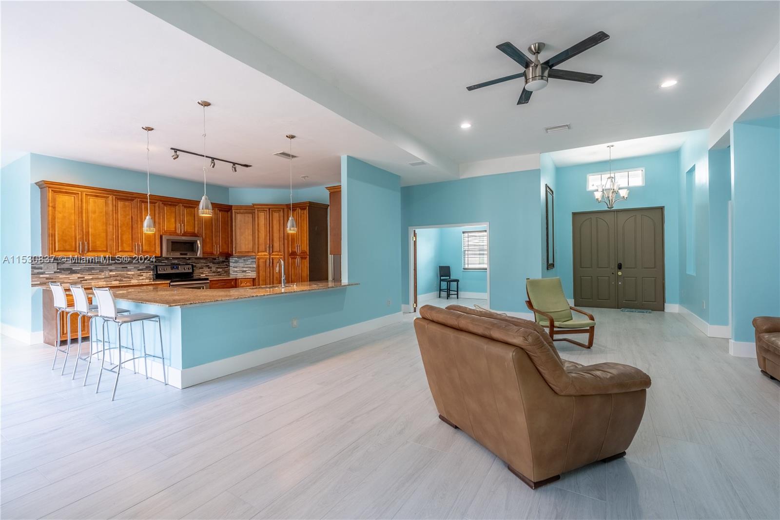 REDUCED! NEW APPLIANCES! This beautiful residence is on a 2.45-acre parcel of land! The stunning home boasts a spacious and open floor plan, featuring 4 bed, a den, 3 full bathrooms, and 1 half bath. It offers the convenience of an attached mother-in-law suite with an ensuite room and bath, with its own kitchen, living area, and separate entrance. The kitchen is adorned with modern stainless steel appliances. Throughout the home, enjoy the comfort of impact-resistant windows and brand new wood-look tile floors. As you approach the exterior, a handsome paved driveway and meticulously maintained sprinklers greet you. The vast cleared land, comprising 100% upland, beckons for your creativity, offering ample space for recreational activities, outdoor entertainment, a potential pool, and more.