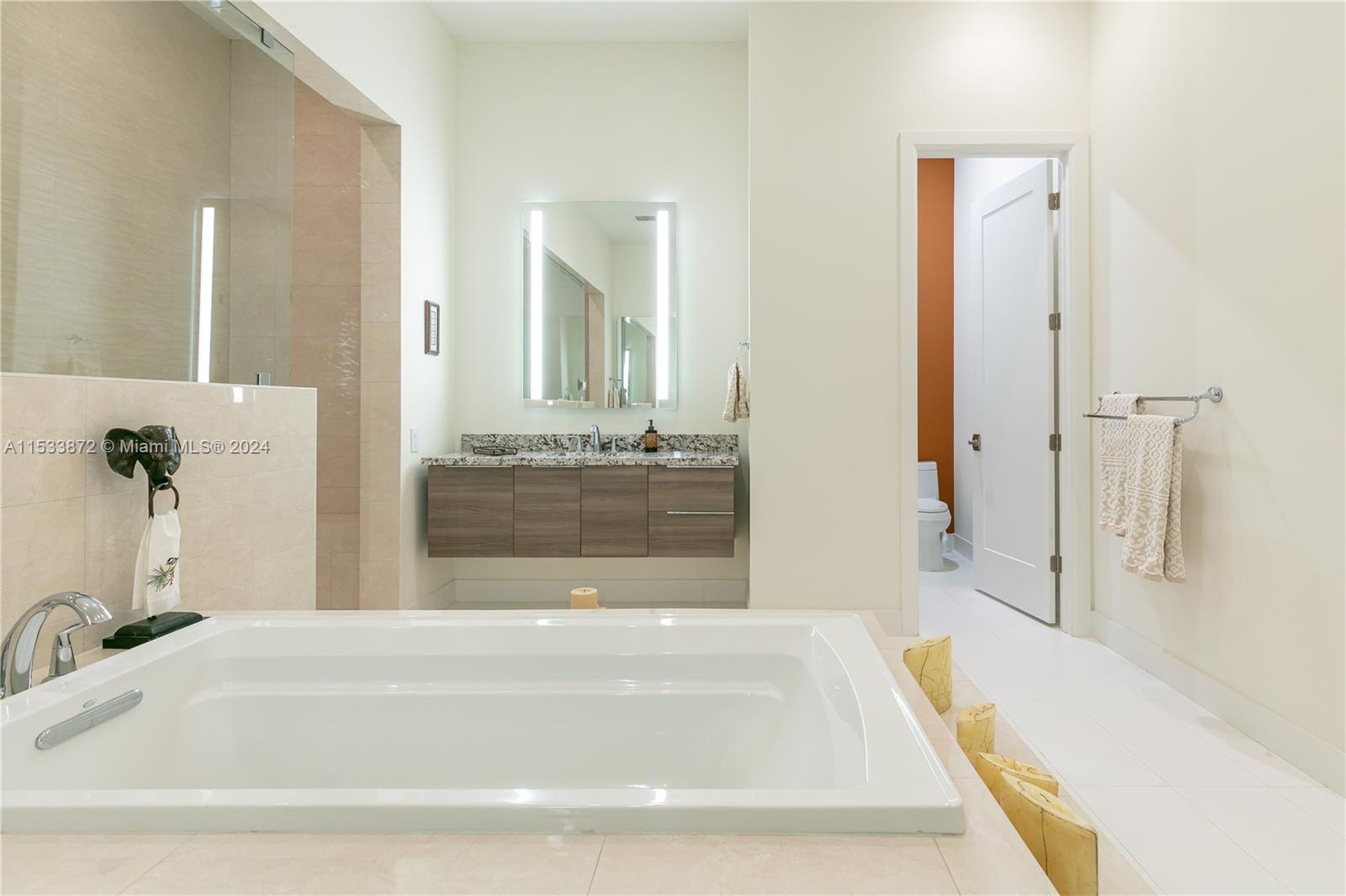 Luxurious Estate Residence Nestled in the Prestigious Preserve at Emerald Hills. This Home Boasts 4 Bedrooms, 4.5 Bathrooms Plus a Bonus Room. Impeccable Interior Design. Imported Italian Cabinetry & Caesarstone/Quartz Countertops. Wolf Appliances, Subzero Fridge, Double Oven, Gas Stove, Extensive Kitchen Island. Porcelain Tiles throughout the Main Living Areas & Wood-Like Ceramic Tile in the Bedrooms. Impact Doors & Windows. Plantation Shutters. Master Suite Offers an Ensuite Bathroom Featuring Open Double Showers. Walk-in Custom Closets. Electric Car Charging Station. Split Floor Plan. Soaring Ceilings. A Delightful & Private Backyard. Covered Patio w/Extended Awning. An Elegant Space for a Great Living Experience! Guard Gated Community. Clubhouse, Pool, Gym, Tot Lot and More. Must See!