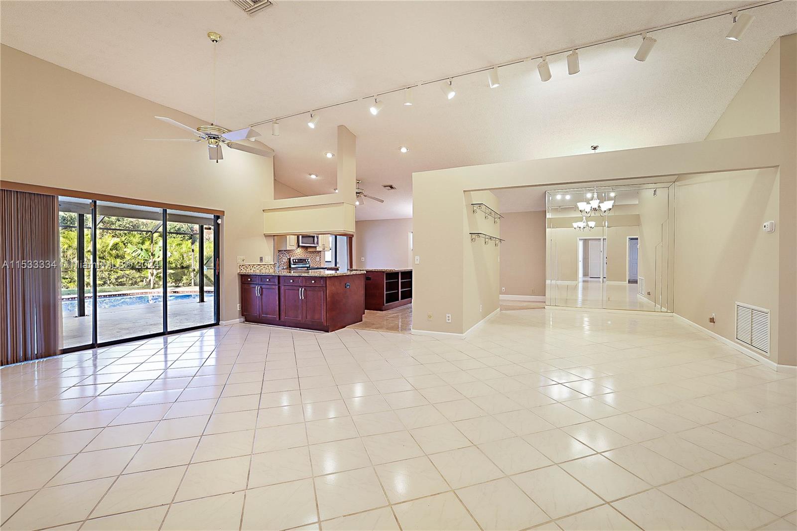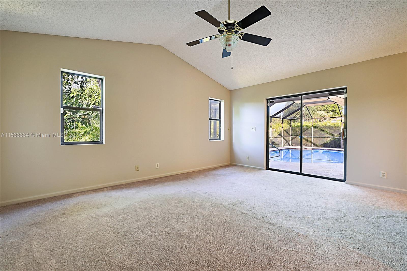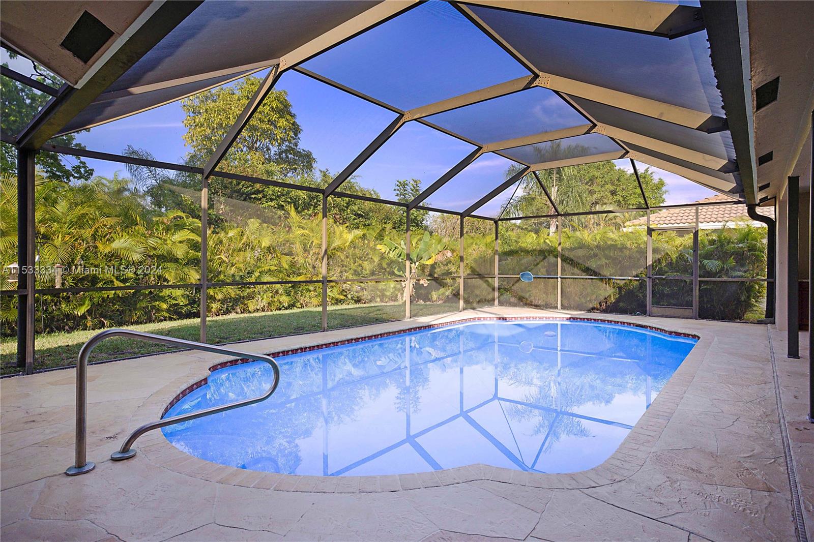 Located in the highly sought after community of North Springs, this beautiful 4/3 2 car garage pool home features a spacious 9,401 sqft lot. Freshly sealed stamped concrete driveway lead you to your entry way & as you walk through your front doors your immediately greeted by the vaulted ceilings, natural lighting & captivating views overlooking the pool & private backyard. Spacious floorplan w/ large family, formal living & dining rooms, open & upgraded kitchen w/ massive island, breakfast bar & nook in the heart of the home perfect for entertaining. Spacious bedrooms & triple split floor plan. Large owners suite w/ dual walk-in closets and spa-like en-suite bathroom. Screened pool area and built in Jennair electric range. Fruit Trees. Hurricane Shutters & more! No HOA. Great Location!