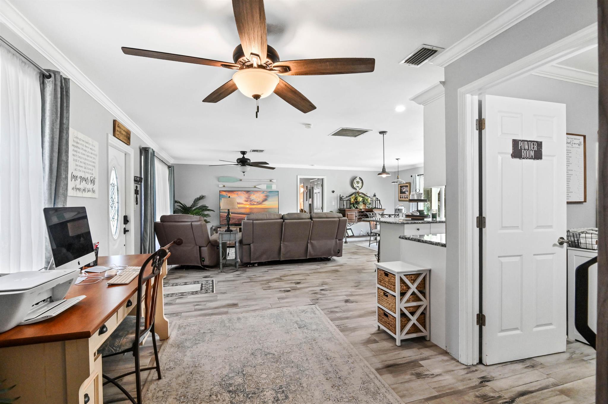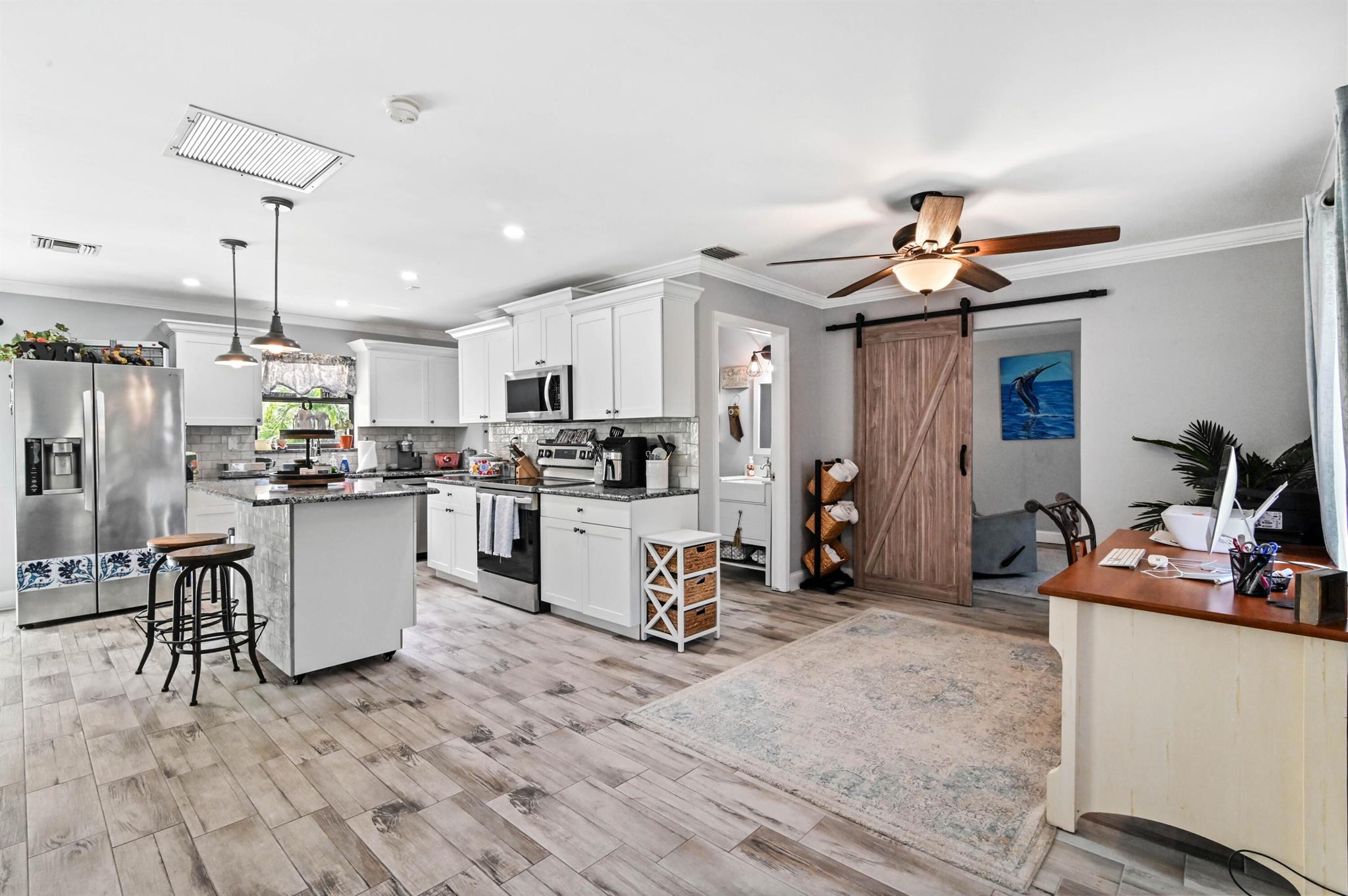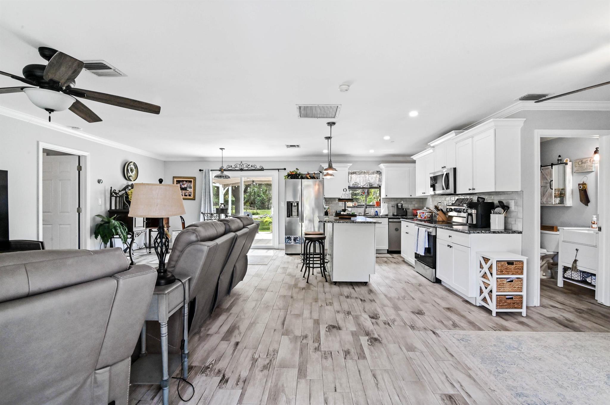 Embrace the allure of rural living in this captivating 2-bedroom, 2-bathroom haven. Nestled on 1.25 acres of partially fenced land, this charming residence unveils a thoughtfully crafted split bedroom plan for enhanced privacy. Revel in the upgraded flooring, granite countertops, and the convenience of a new water system, elevating both style and functionality.