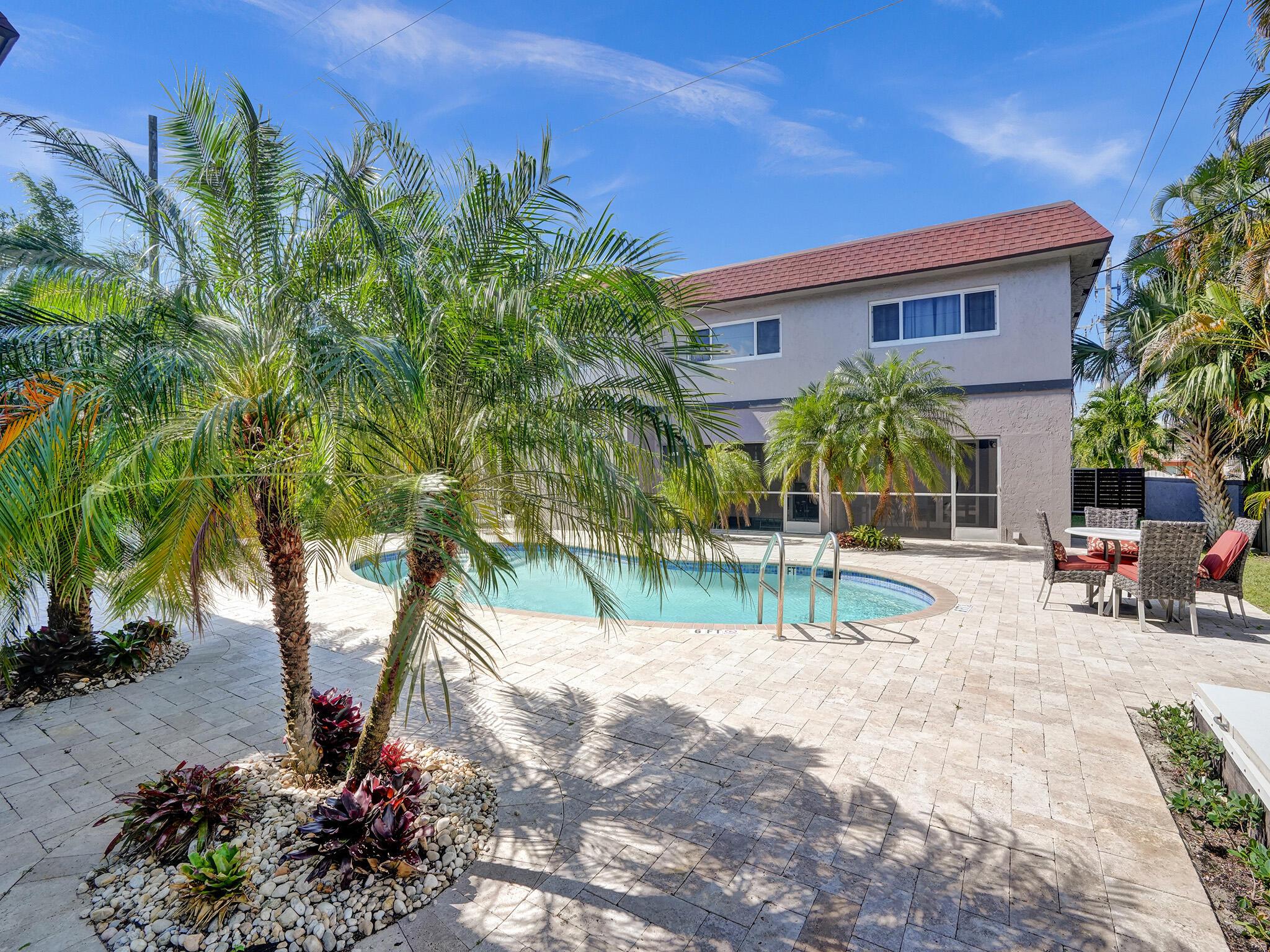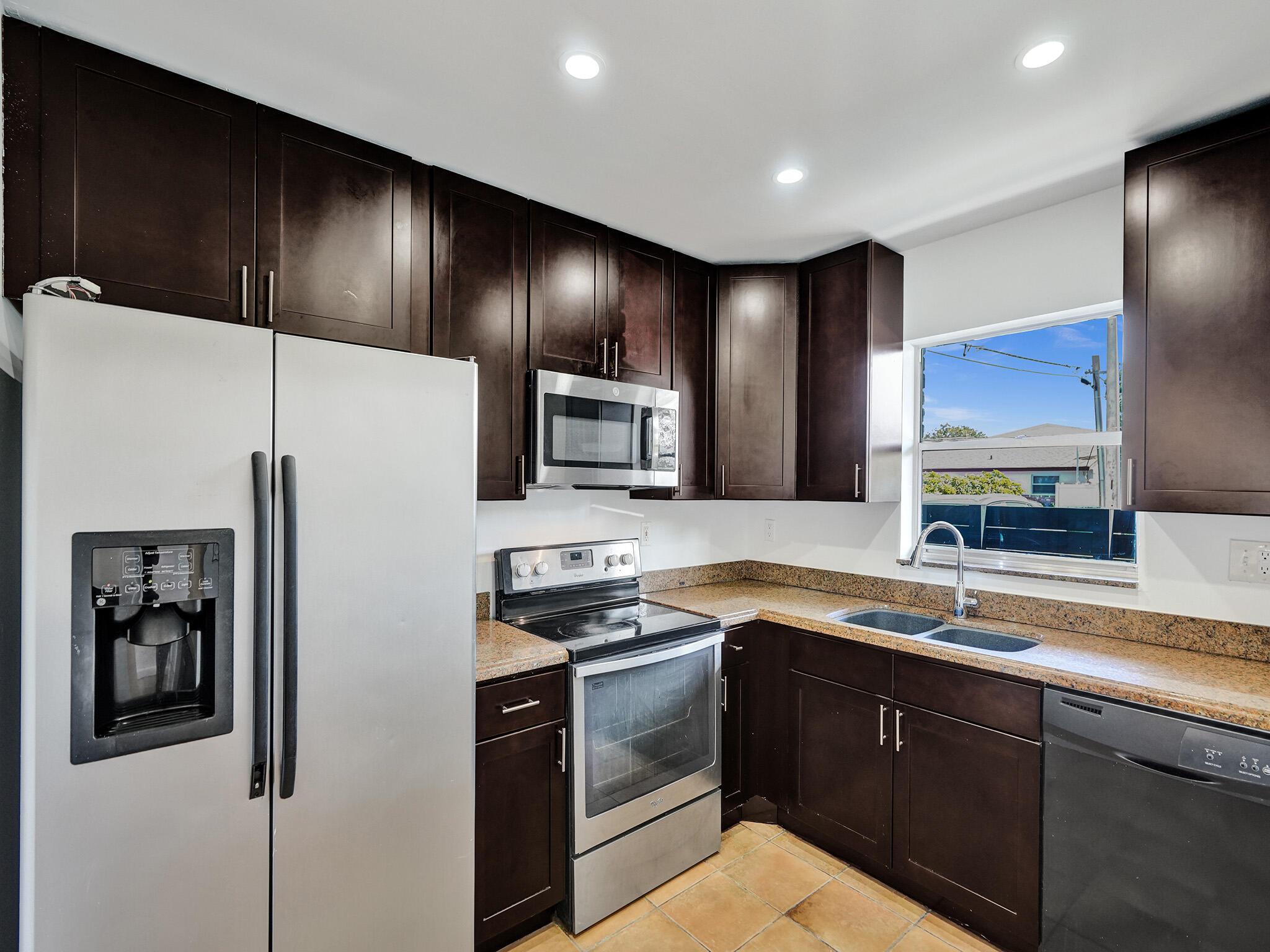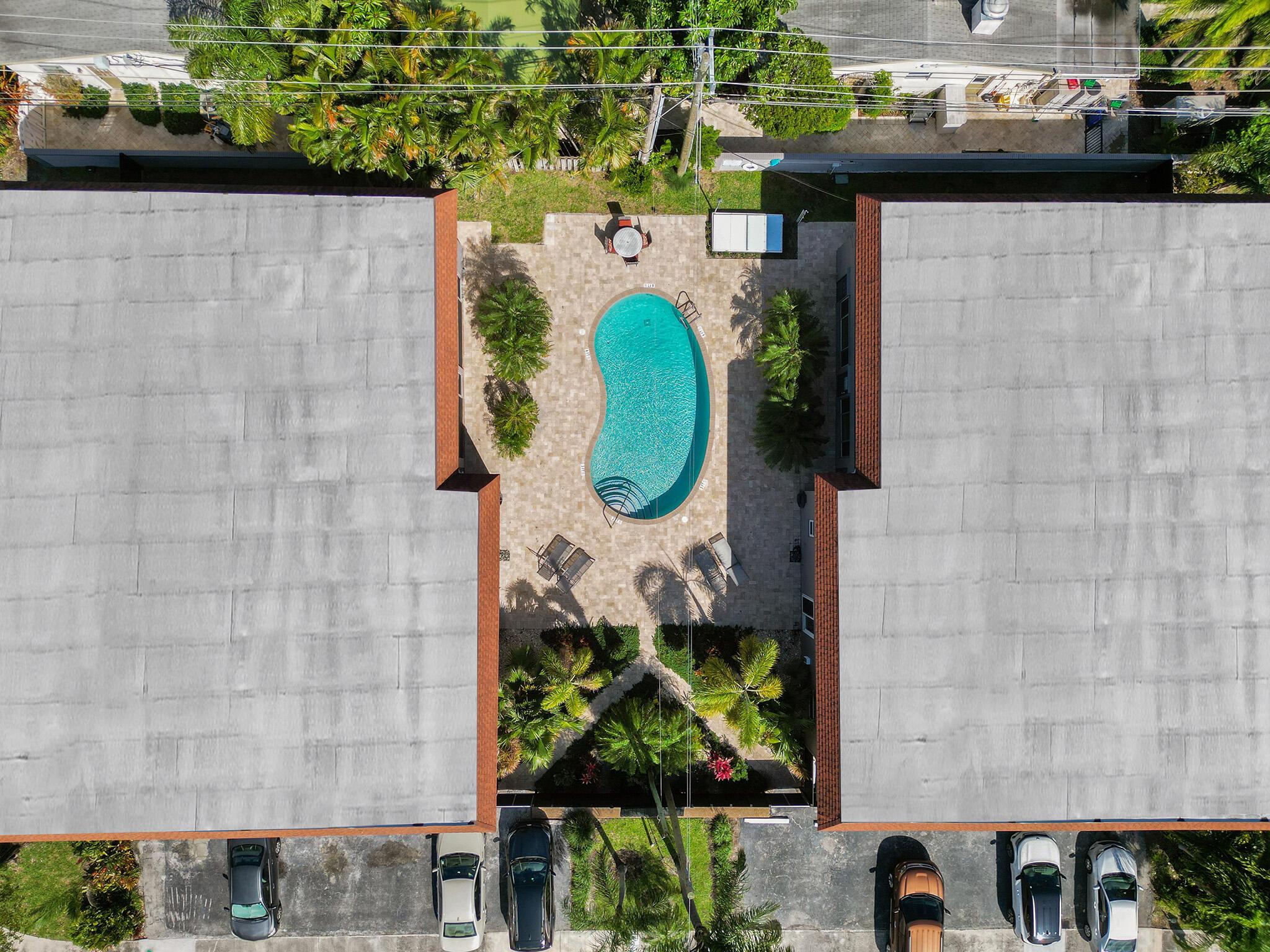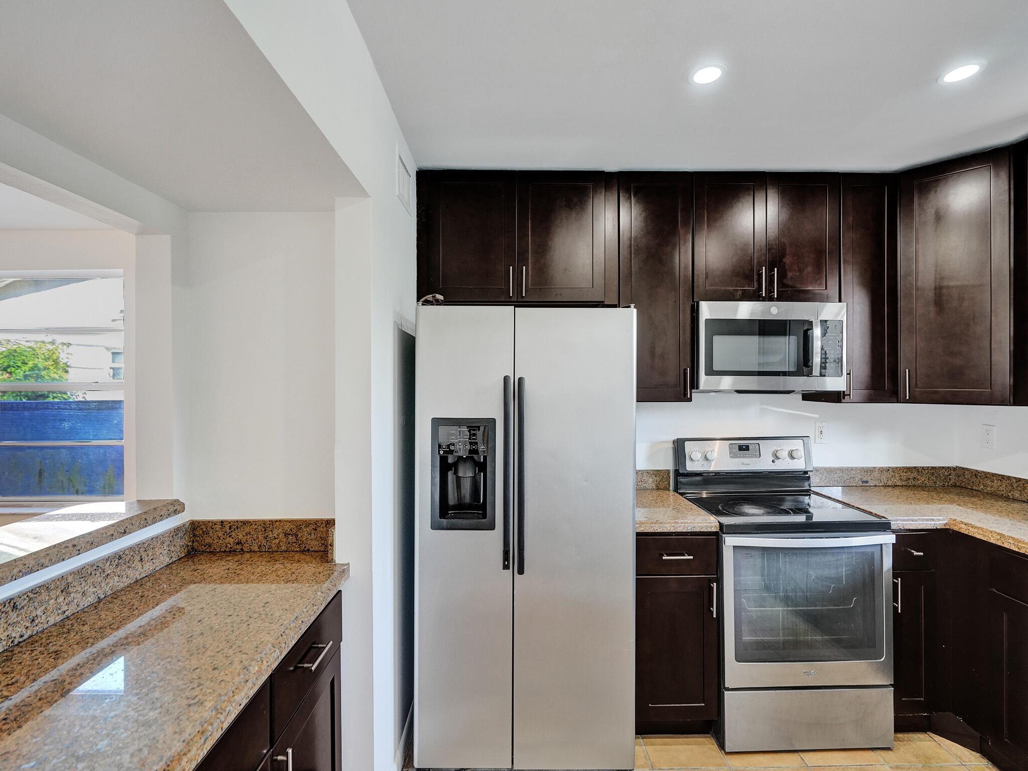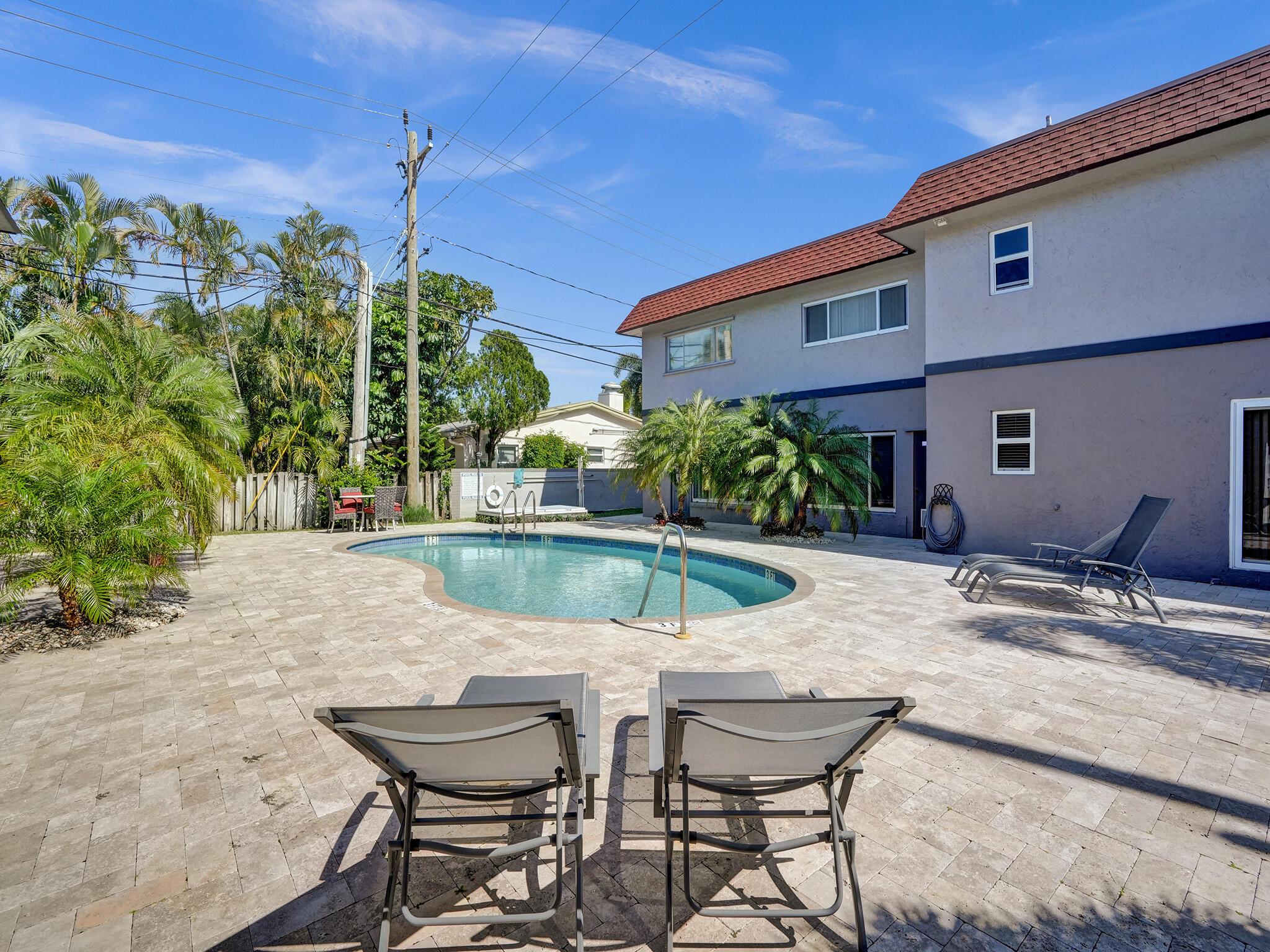 This spacious 2 bedroom Townhouse is located just 1.5 miles from the fantastic Lauderdale By The Sea Beach and entertainment district. The large living room has wonderful natural light, beautiful tile floors, a 1/2 bathroom and an expanded Florida room which overlooks the tropical pool area. The kitchen has stainless steel appliances and granite counters. Upstairs are 2 large bedrooms with wood laminate floors, en-suite bathrooms plus the Master bedroom has a private 2nd floor screened porch east exposure, perfect for soaking up the sunrises. *** Brand new roof paid for by the Seller ***The tropical pool area was recently updated with lush landscaping and travertine paver patio. The 2 large Florida room windows are impact plus there are panel shutters. Washer/Dryer next to unit.