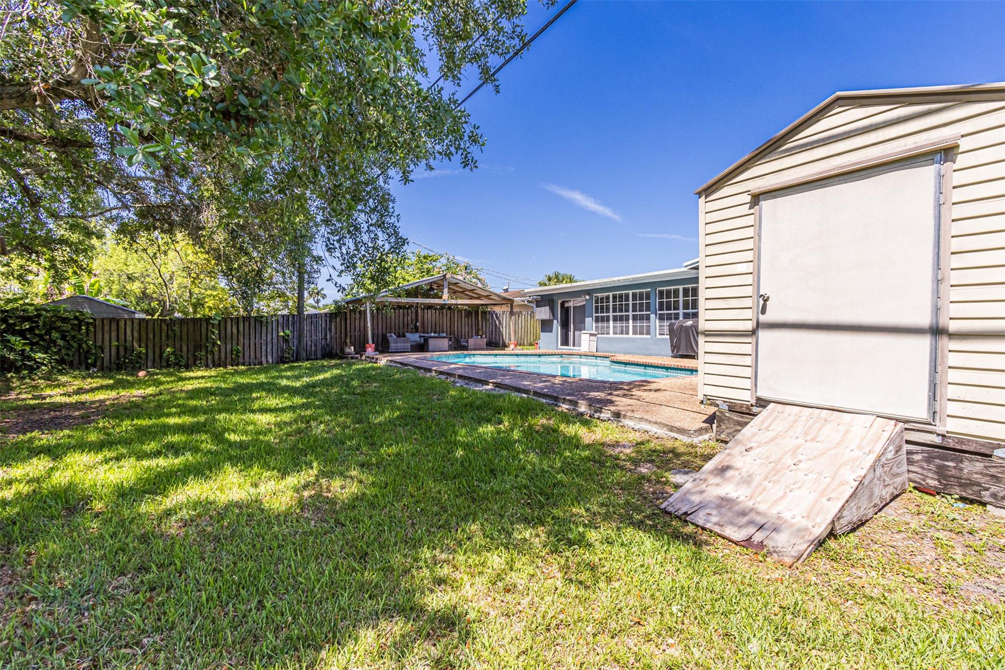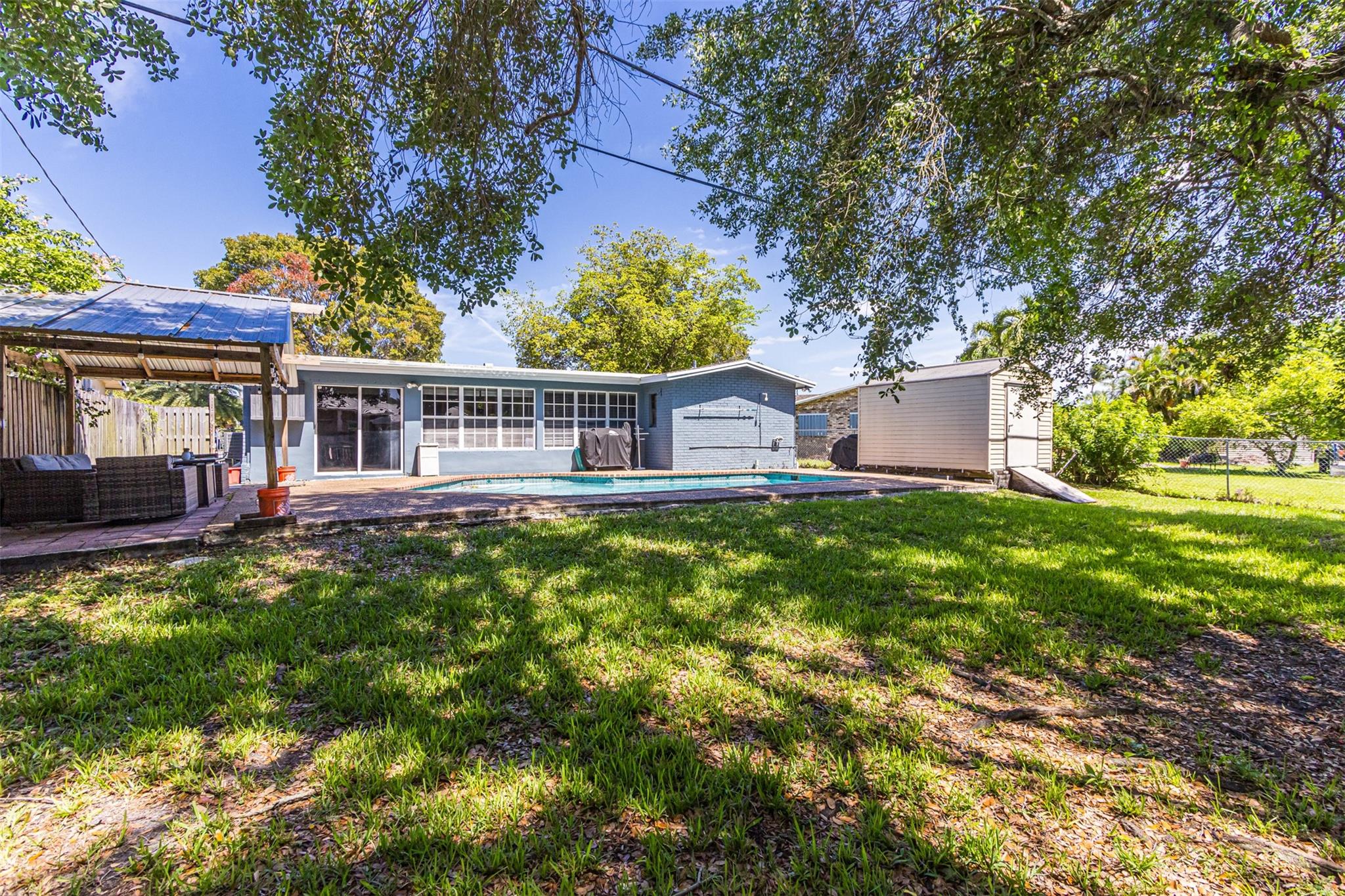 Charming 3/2 in Sunrise with a converted den adding versatility, serving as either a bedroom or office. The custom wall in the entryway adds a unique & inviting touch, setting the tone for the rest of the house. The kitchen has a handmade breakfast nook featuring a custom-made chandelier with a brand new smart oven, large laundry room, newer roof, A/C, & water heater & NO HOA! As you enter that back of the home you will be greeted with a pool & canopy surrounded by a large fenced backyard giving privacy & offering a perfect retreat for outdoor entertaining. There is ample space for a boat with gate access adding more appeal, especially for those who enjoy outdoor activities. Easy access to shopping & Sawgrass Expressway & 595. What are you waiting for? Schedule your showing today!