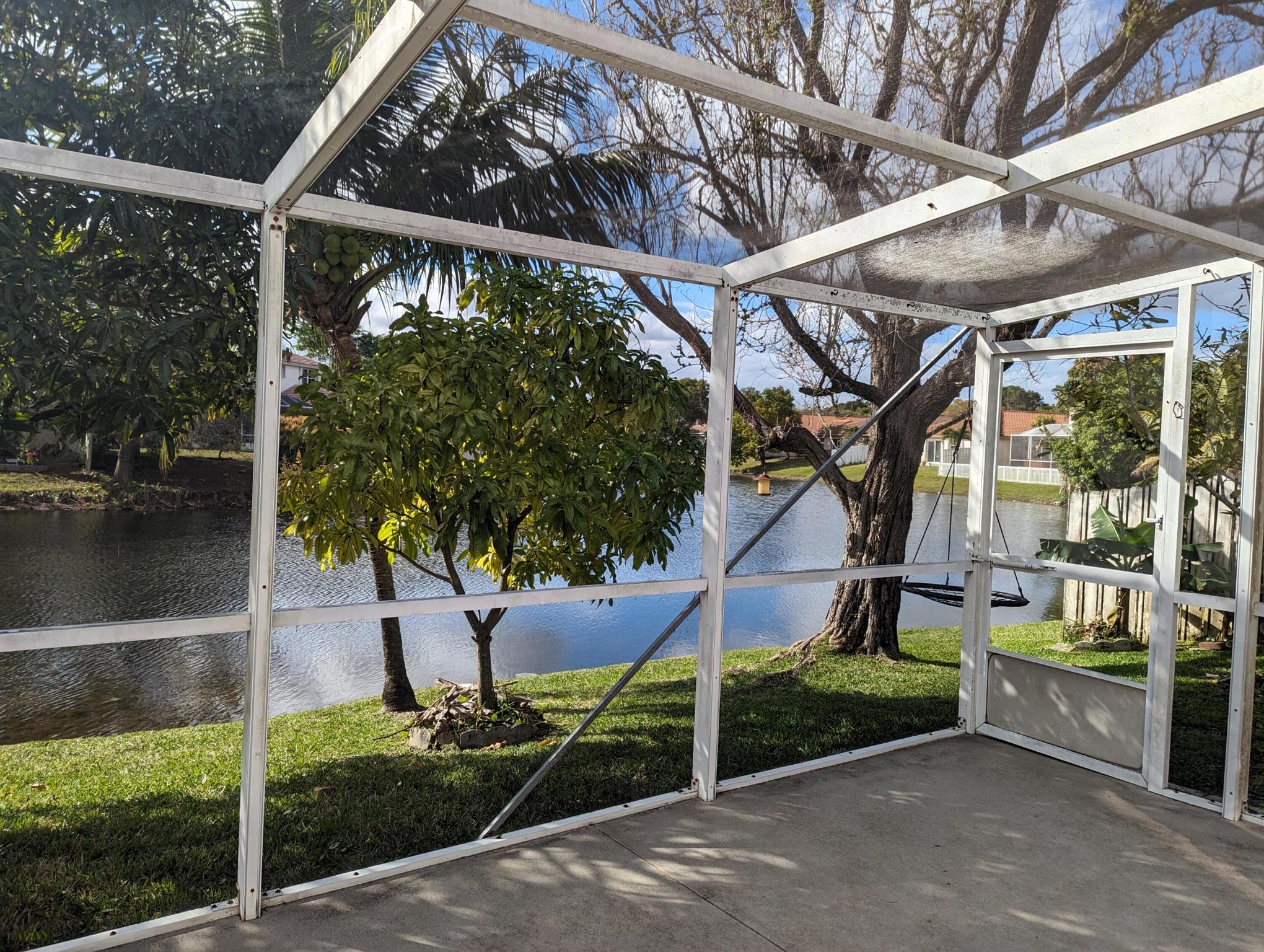 This well kept house has a beautiful lakeview, tile floors throughout, newer AC (2020) & roof (2017), 2 car garage, screened in patio, french Doors and backyard fruit trees. Spacious master bedroom with walk in closet. Community pool, playground, walking paths, lakes, basketball & tennis courts. Pets OK. Low HOA dues! Lakes of Newport, close to everything!4 bed, 2 bath. (The 4th bedroom is currently an office. Easy conversion to a bedroom by adding a closet.)