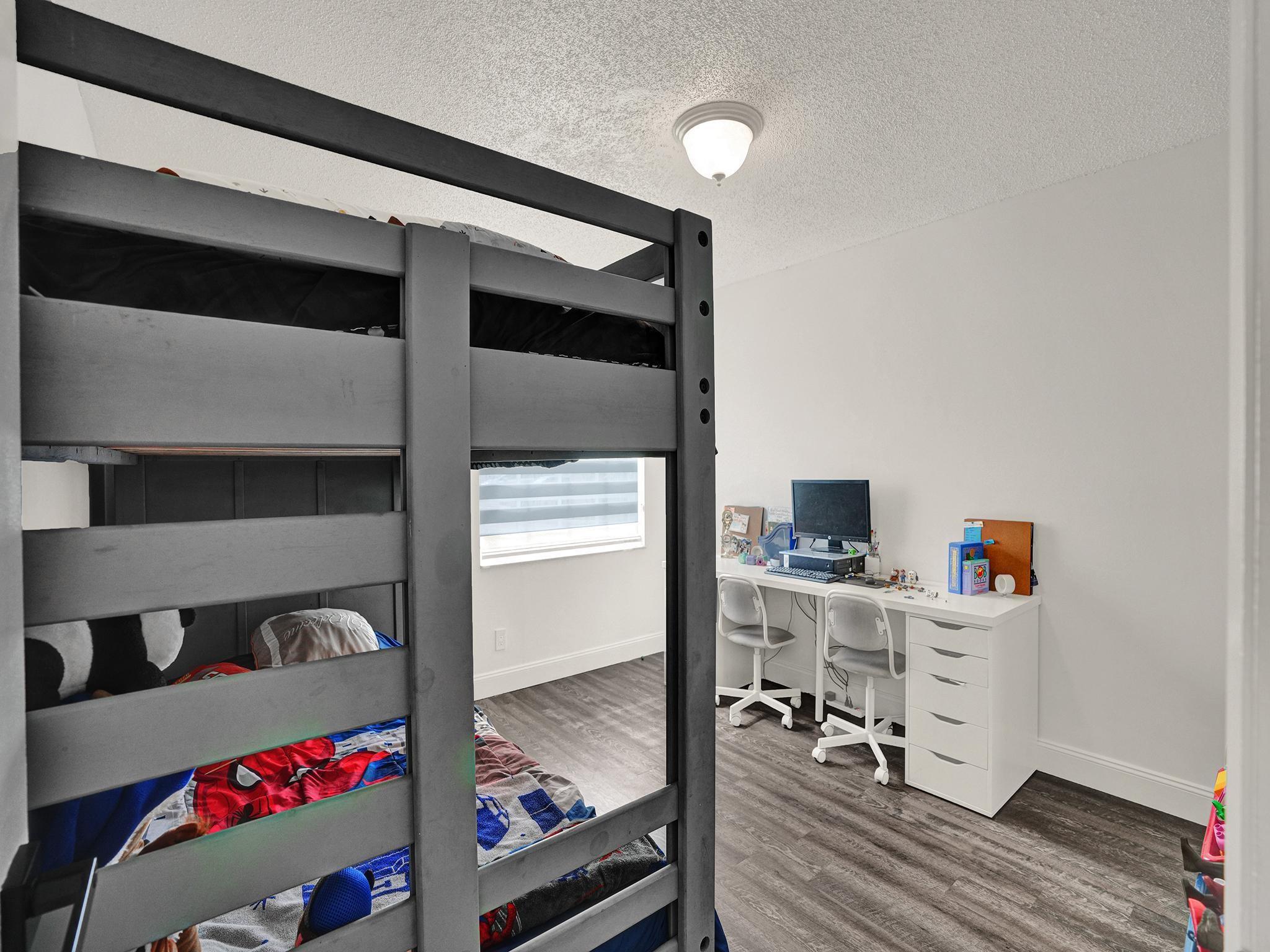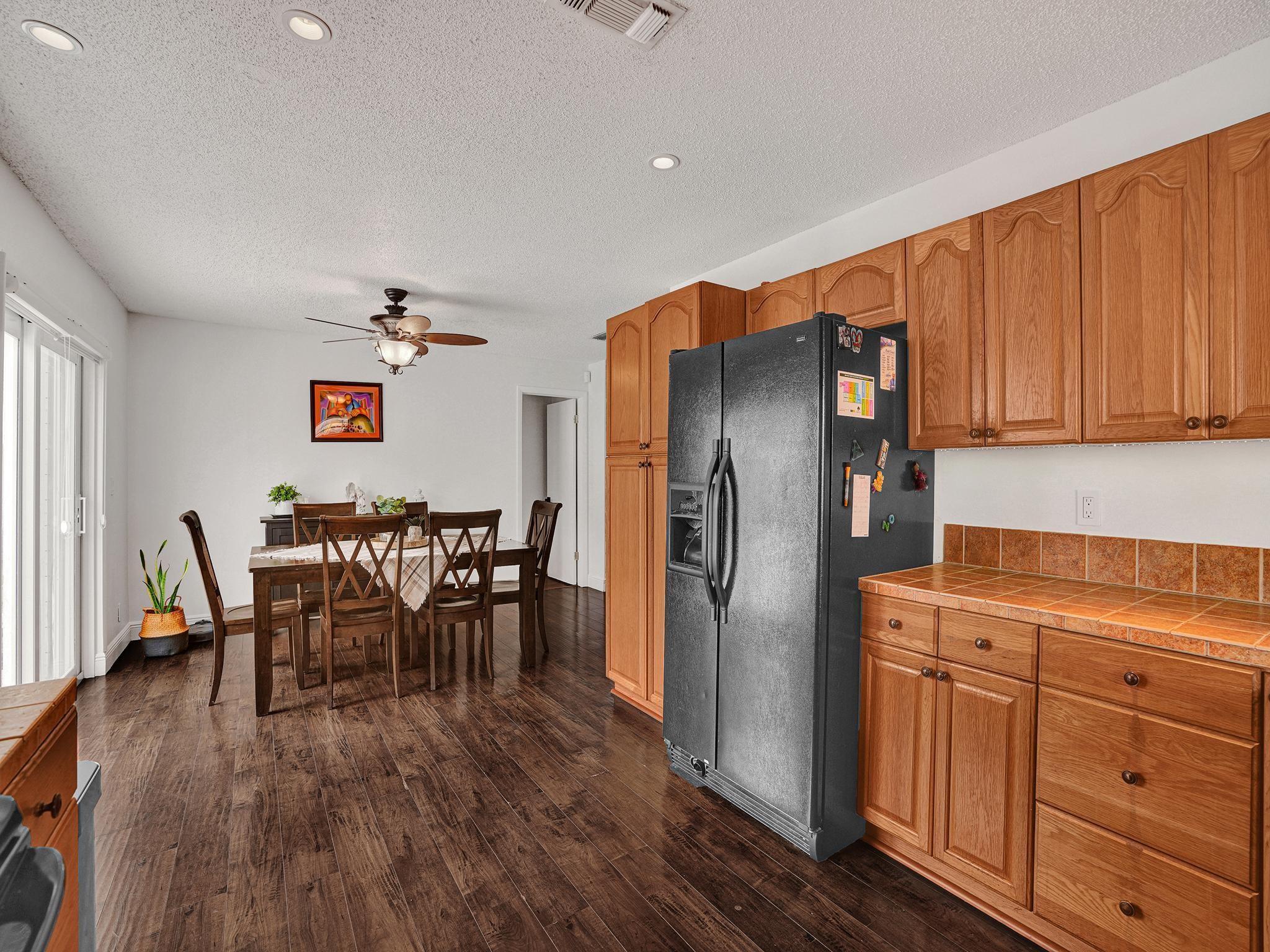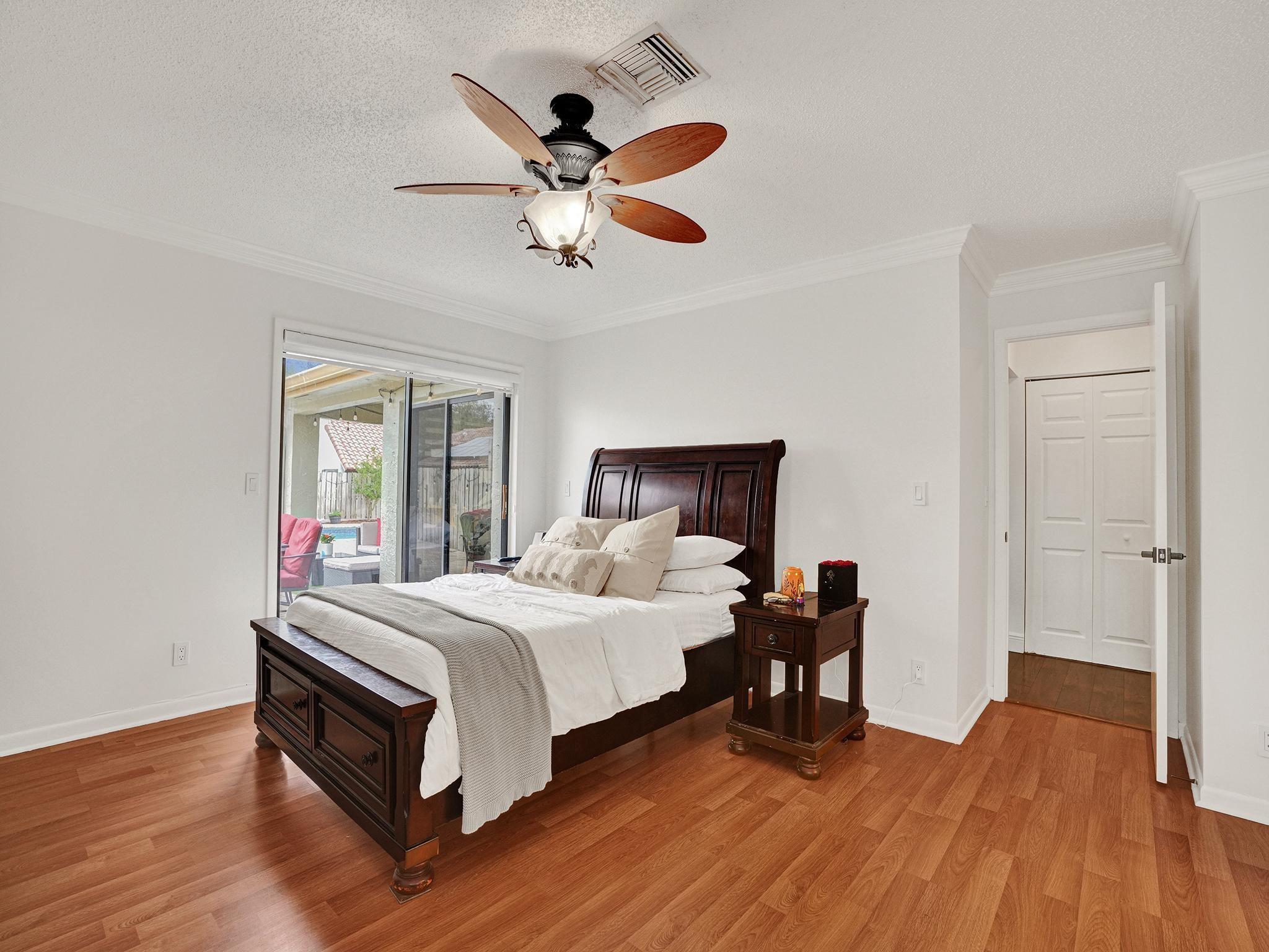 Stylish & Open updated pool home with huge custom pool on Cul du Sac. Plenty of natural light, vaulted and volume ceilings, laminate wood flooring throughout. Foyer entry opens to big living & dining room being used as a great room overlooking the covered patio, pool/spa and private low maintenance fenced yard. Open kitchen w tile counters, wood cabs overlook the pool and patio. Spacious Master Suite w views of pool, good sized bathroom with huge shower & large cedar lined closet. Generous secondary bedrooms off family room with adjacent updated bath with tub. Very large custom salt chlorinated pool and spa with child fence, big paver patio & sun deck. Great Rock Creek location close to parks, top rated schools (walk to A rated elementary school) and area shopping.