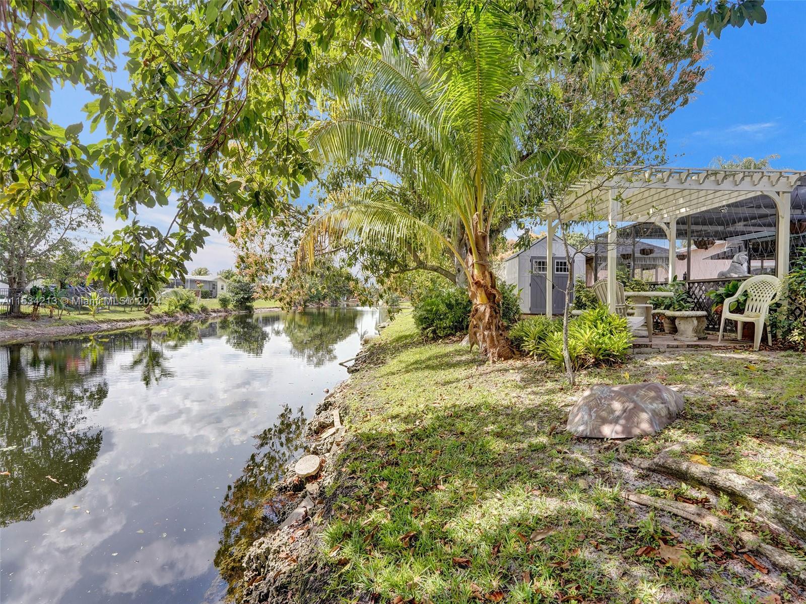 Welcome to paradise! This charming 3-bedroom, 2-bathroom single-family home, nestled in a serene waterfront setting, offers pure luxury. The kitchen features a spacious island with abundant counter space, perfect for culinary creations. Step inside to find a delightful entryway leading to cozy family dining areas and a TV room/Den. The master suite offers an en suite bathroom for your comfort. Step into your own oasis and enjoy a refreshing pool with canal views, a built-in BBQ, and outdoor kitchen. Relax in the pergola gazebo surrounded by lush fruit trees. Situated in a desirable neighborhood, this gem offers privacy and tranquility while being conveniently close to schools, shops, and restaurants. Don't let this opportunity to own your dream home slip away!