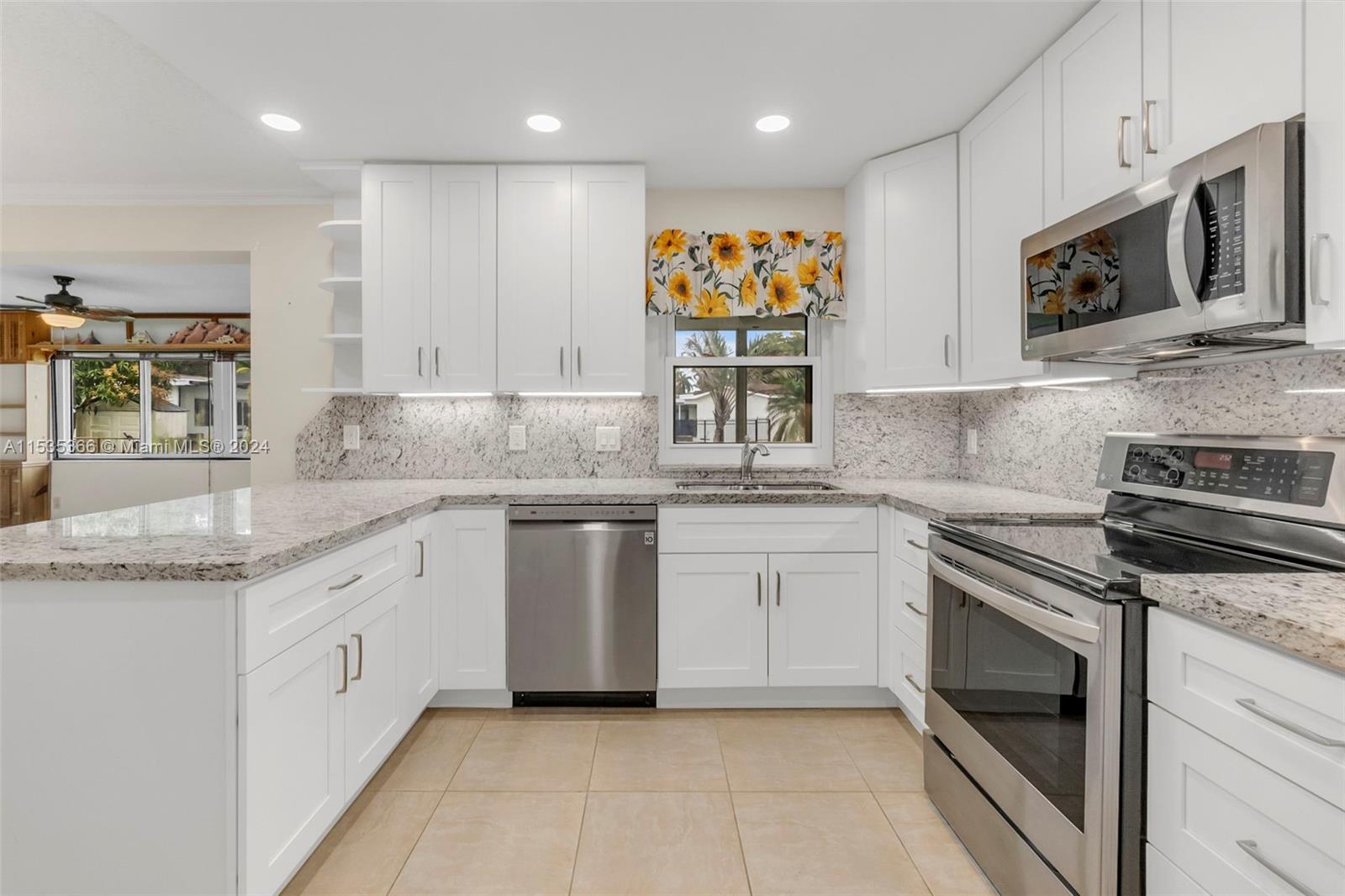 Explore this meticulously maintained home located in the highly desirable community of Pembroke Lakes in Pembroke Pines. In this prime location, this home offers 2 spacious bedrooms with the potential for a 3rd, along with 2 remodeled bathrooms, complemented by a sizable 2-car garage. Remodeled kitchen with white modern cabinetry, granite countertops and stainless steel appliances. Enjoy peace of mind with high impact windows and doors, as well as updated plumbing and electrical. Neutral tile and carpet flooring throughout with charming crown molding and tons of closet space. Step outside to relax in the screened-in porch and fenced-in yard, offering ample space for a pool and tons of room for entertainment. Conveniently located near major highways, dining and shopping.
