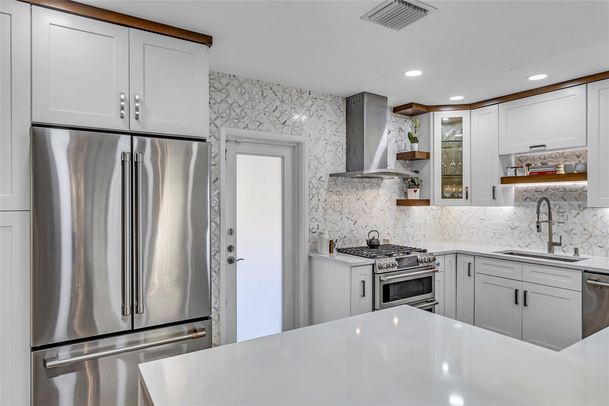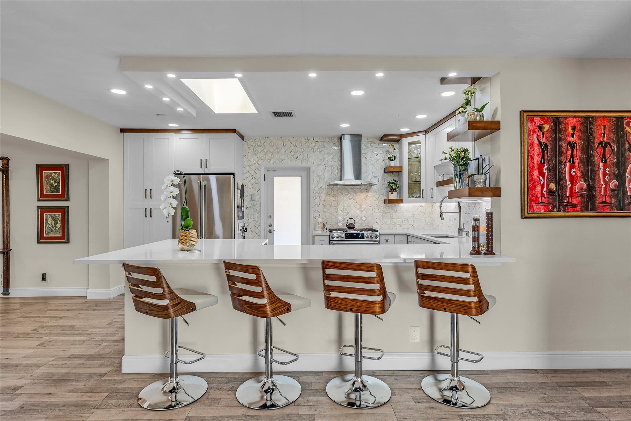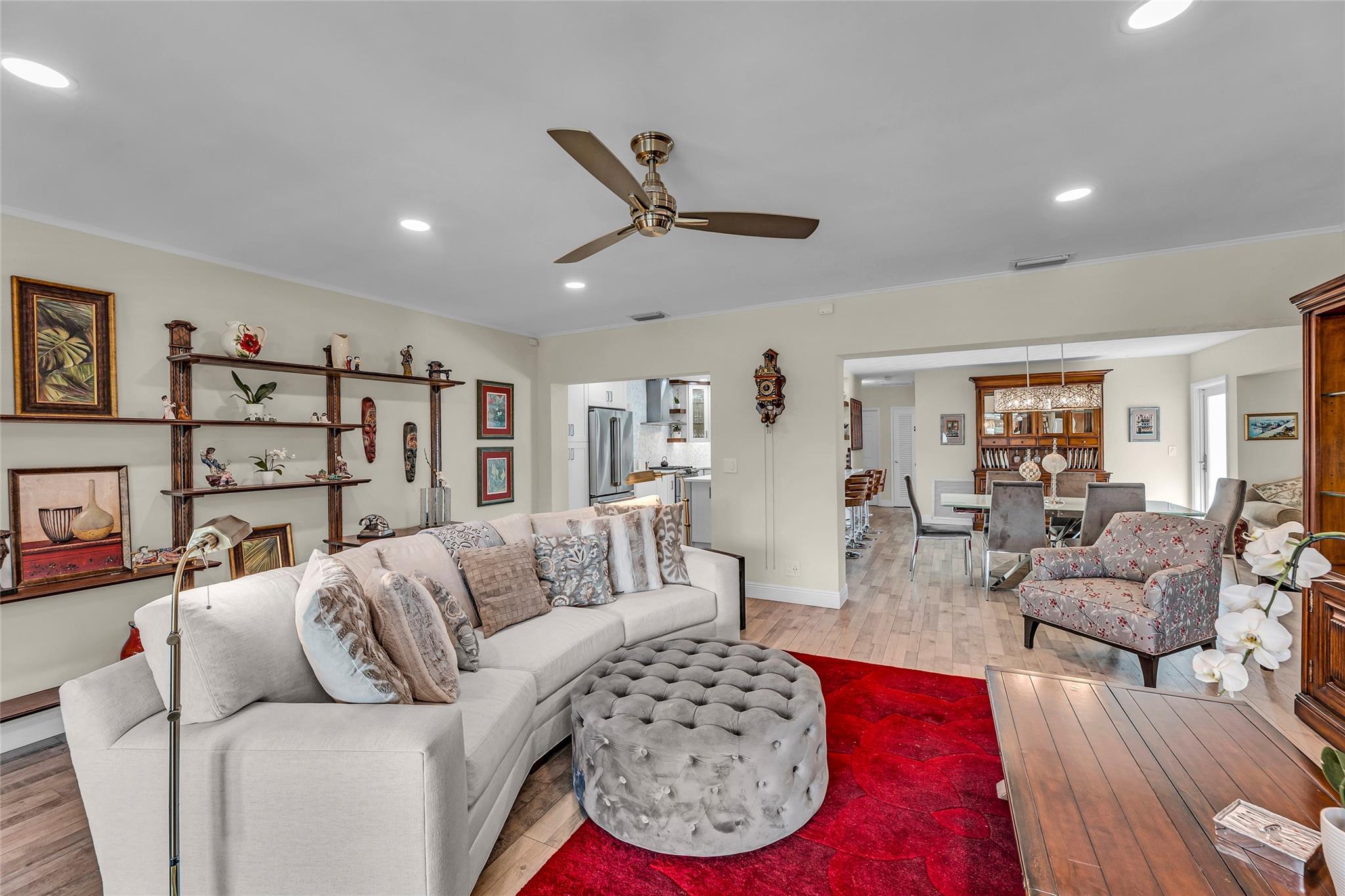 Beautiful sunsets await you in this spacious, waterfront home. Tastefully appointed details throughout this four bedroom, four bathroom remodeled home. New chef's kitchen equipped with gas, quartz counters and GE Cafe appliances. Impact glass throughout (excluding laundry room door in carport) with high end window treatments. Lots of storage in addition to custom office builtins. Home currently has a one/one Mother In Law suite. A must see! Centrally located, quiet neighborhood close to the beach, airport, restaurants and golfing.