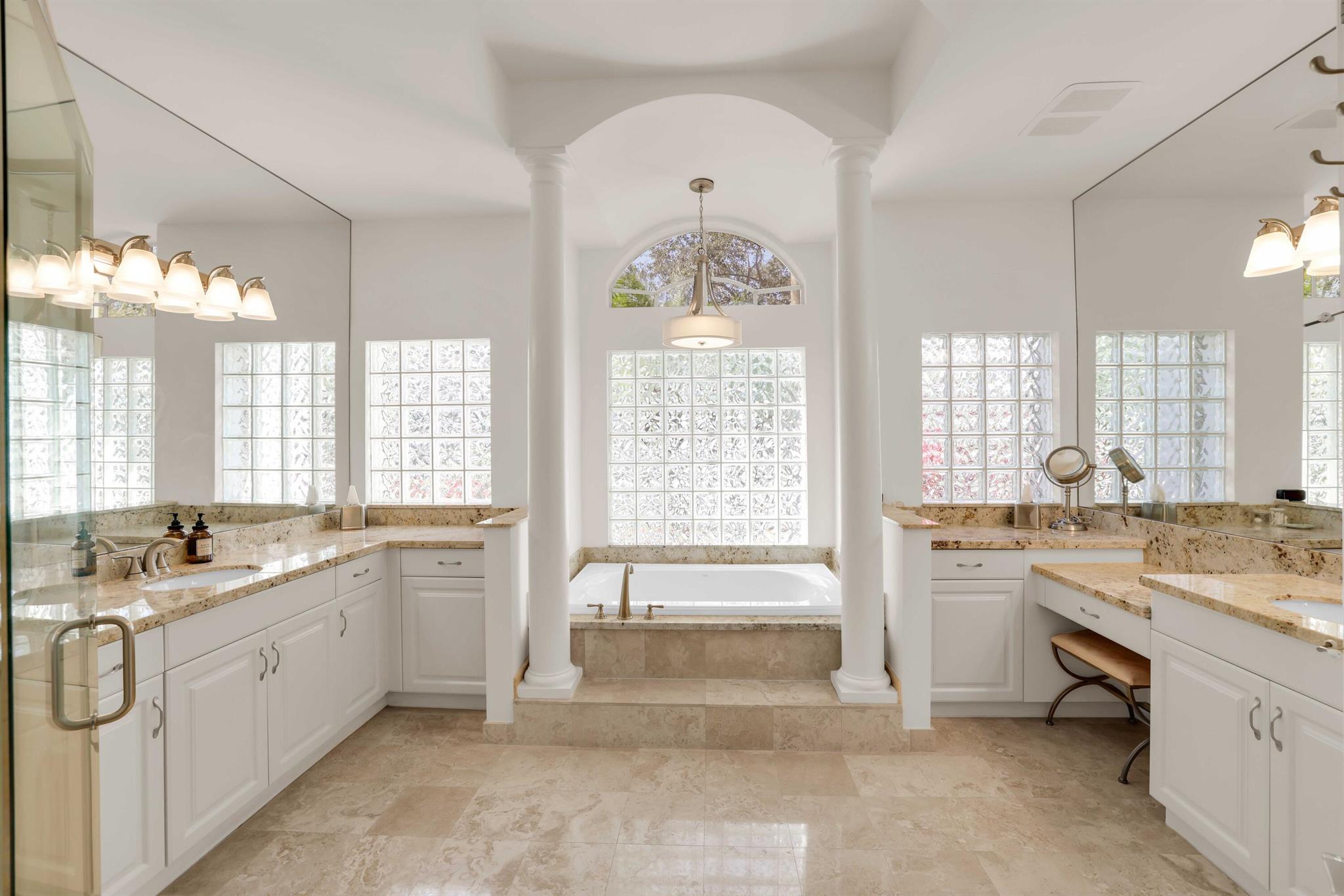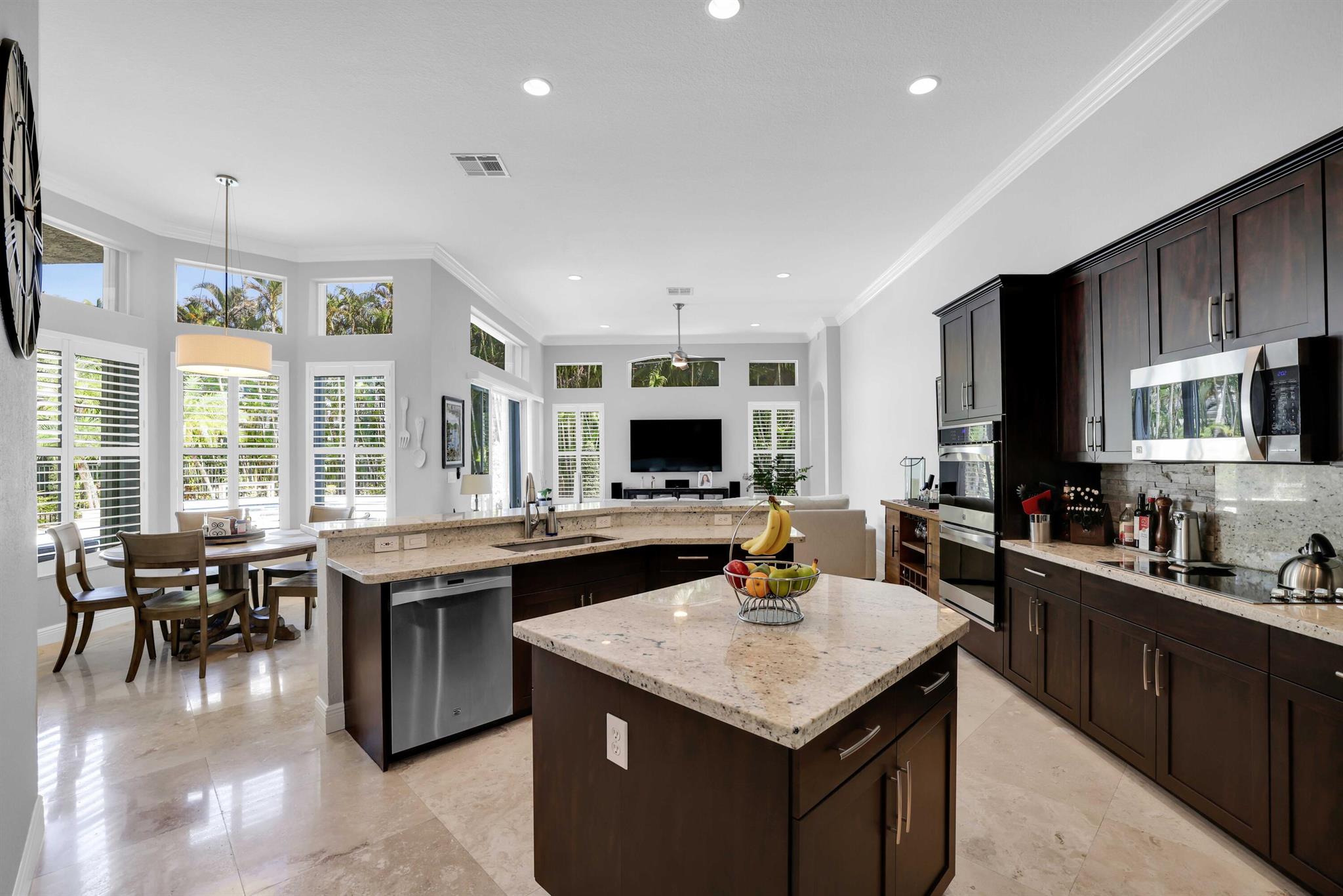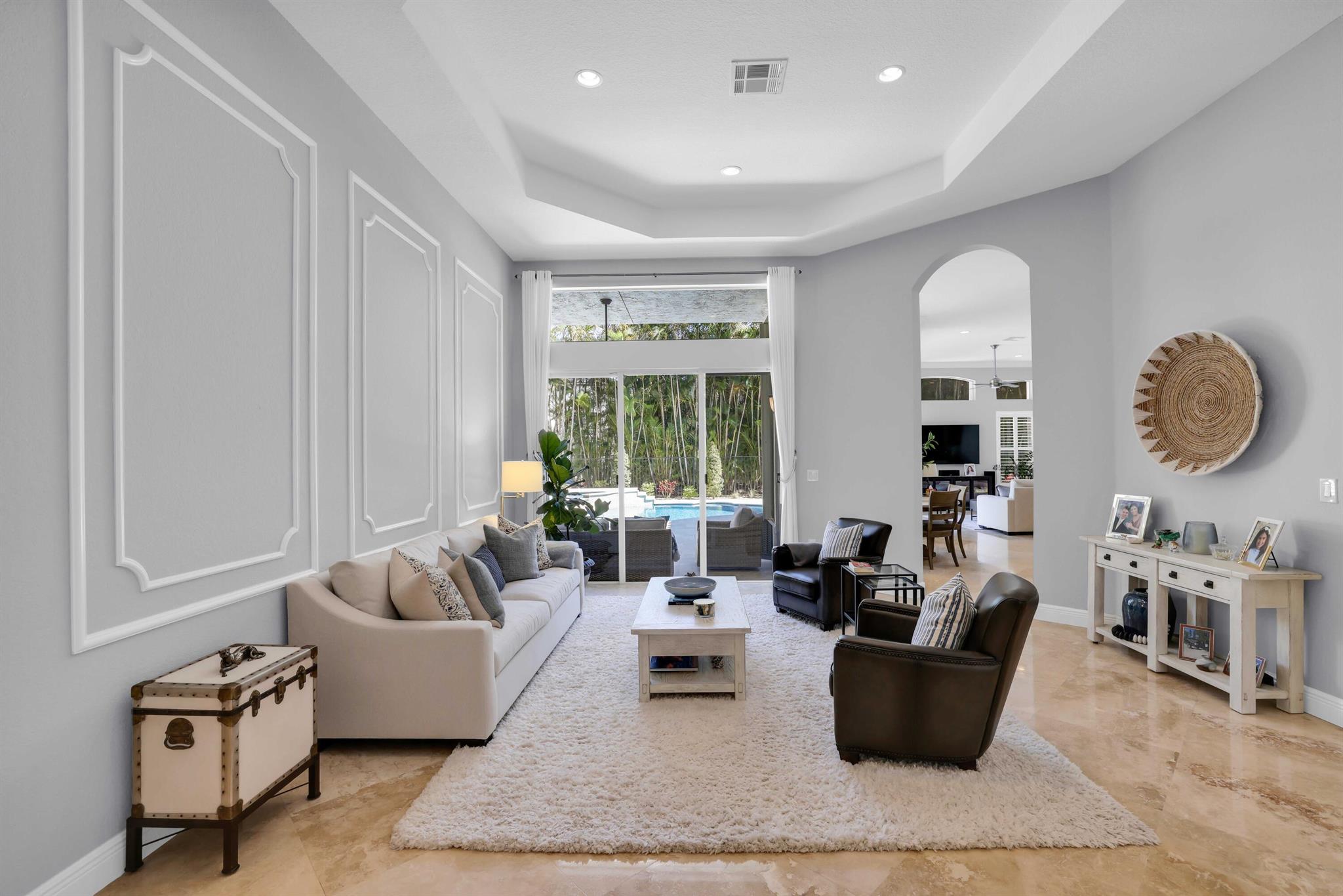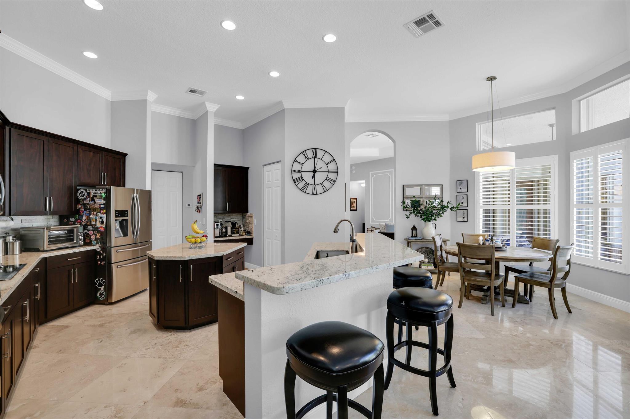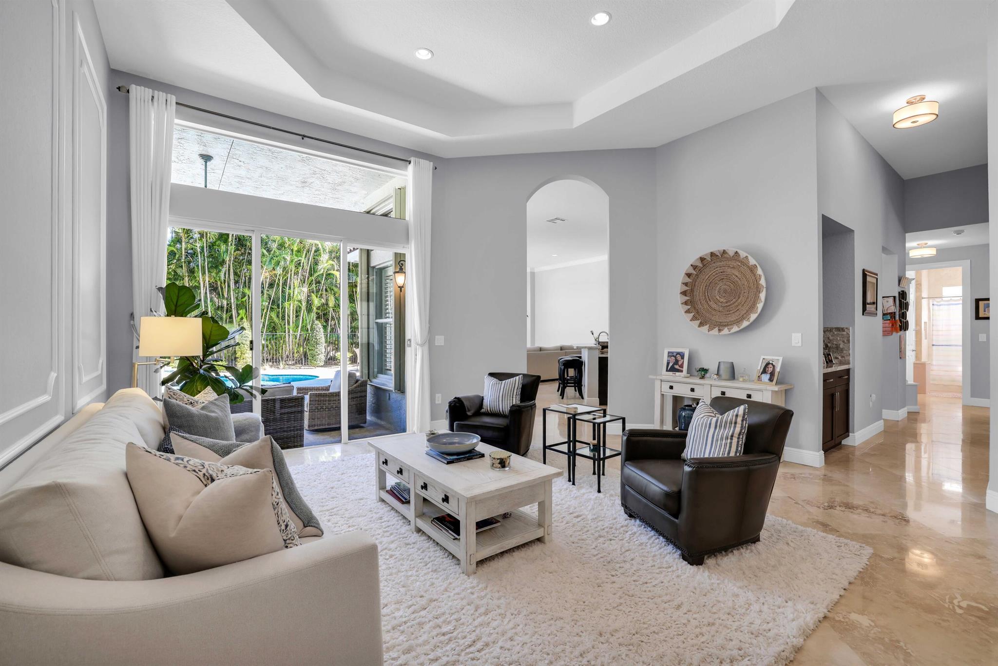 BEAUTIFULLY APPOINTED & UPGRADED MONET MODEL, ONE STORY HOME, NEW ROOF 2024, THIS TRIPLE SPLIT FLOORPLAN HAS BEEN UPDATED NICELY WITH MARBLE IN MAIN LIVING AREAS & GORGEOUS WOOD FLOORS IN THE BEDROOMS, BATHROOMS ARE ALL UPGRADED. STUNNING OFFICE, NEW WINDOW TREATMENTS, UPGRADED HIGH-END APPLIANCES, NEWER ACs, COMPLETE STORM PROTECTION, DOORS & GARAGE. BEAUTIFUL BACKYARD OASIS WITH REDONE POOL, TURFED AREA & TRAVERTINE DECKING. OUTSTANDING NEIGHBORHOOD WITH A+ PLUS RATED SCHOOLS ACROSS THE STREET, MANNED GUARD GATE, AMENITIES & MORE! BIKE TO THE BEST PARK IN PALM BEACH COUNTY FEATURING A KIDS WATERPARK, NATURE CENTER, GOLF, BOATING, AMPHITHEATER, DOG PARKS & EVERY BALL FIELD YOU WILL NEED!!!