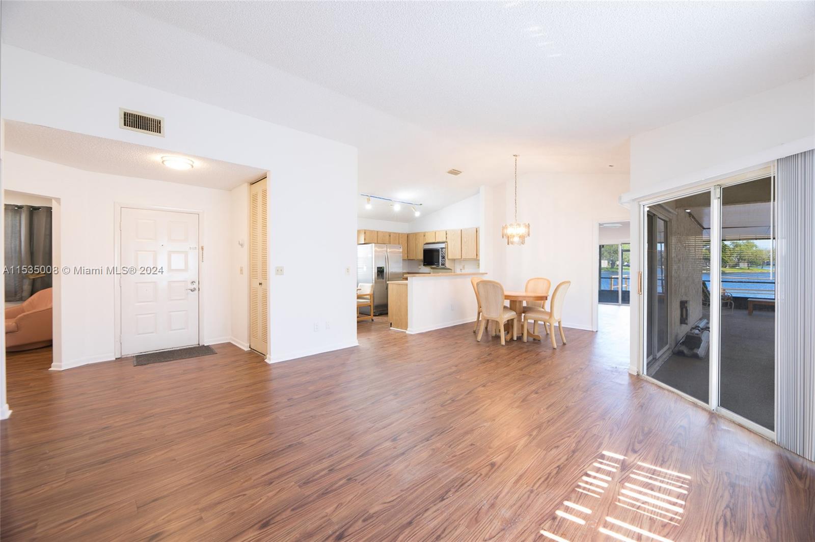 Lovely and spacious 4 bedroom/2 bathroom single family home on the tranquil and breathtaking LAKE, located in the man-gated community of Pierpointe in Pembroke Pines. BONUS: *NEW ROOF JUST INSTALLED* This home boasts an open floor plan, new vinyl flooring in the living areas and primary bedroom, freshly painted interior and exterior, walk in closet, hurricane shutters. Entertain in your very large screened-patio facing the scenic lake, take your kayak out on the lake or sit on your new dock and go fishing. The home has 2 parking spots in the driveway and is steps away from the community pool. The community requires 700 credit score to purchase. This home will not last!