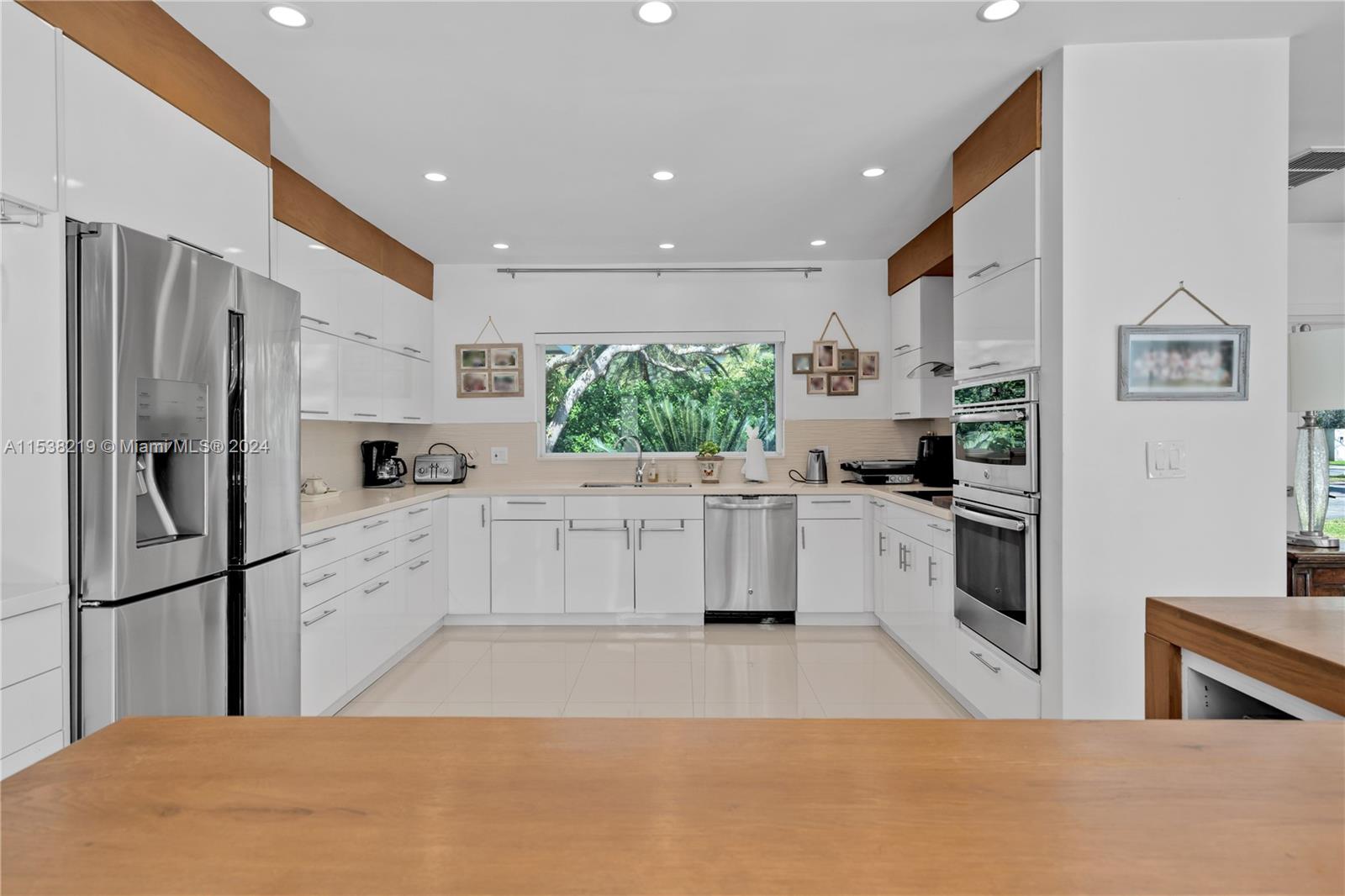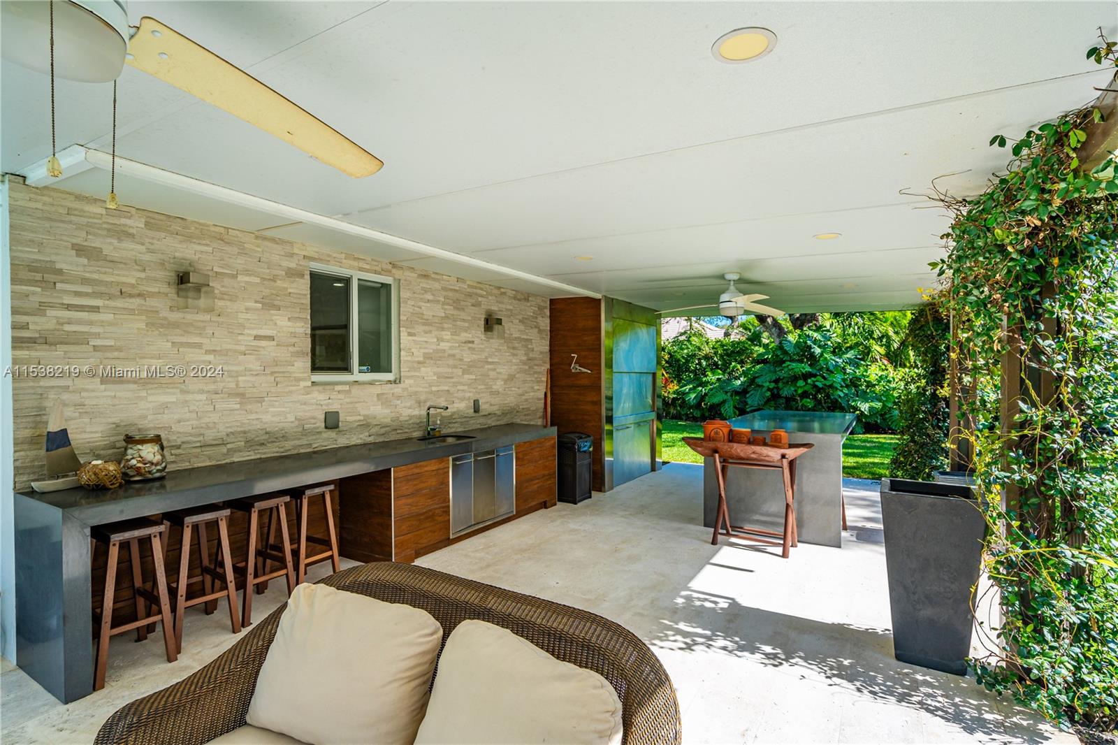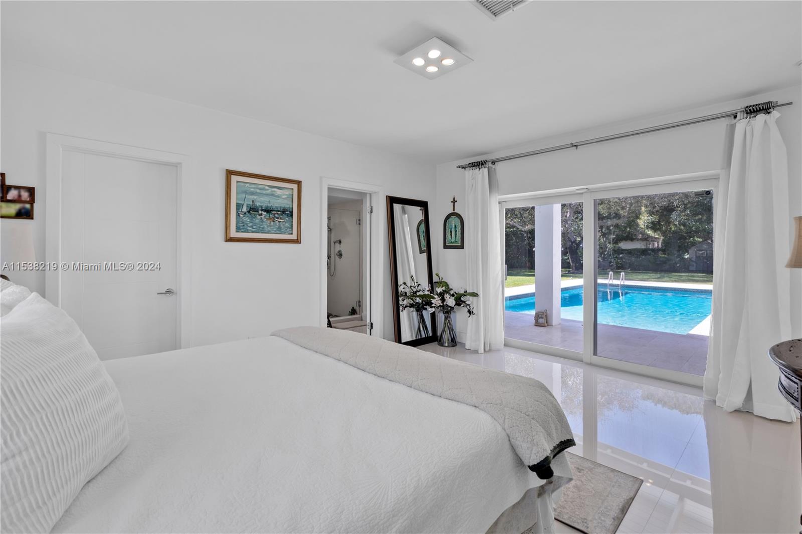 Situated on a quiet street, the house boasts an open-floor plan, spacious living, and dining area. Floor-to-ceiling impact glass doors with breathtaking views of a fully tiled trough out pool, creating a seamless indoor-outdoor living experience. The expansive patio and vast backyard provide an ideal setting for hosting gatherings and enjoying outdoor activities with a unique Argentinian grill and dining area. The home features four bedrooms total. The master bedroom includes two walk-in closets and its ensuite bathroom. One bedroom/study with an accompanying bathroom located on the West side. The property has a two-car garage conveniently adapted as an additional expansive social area.