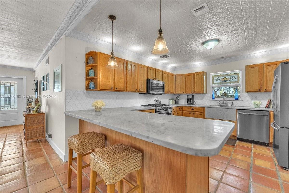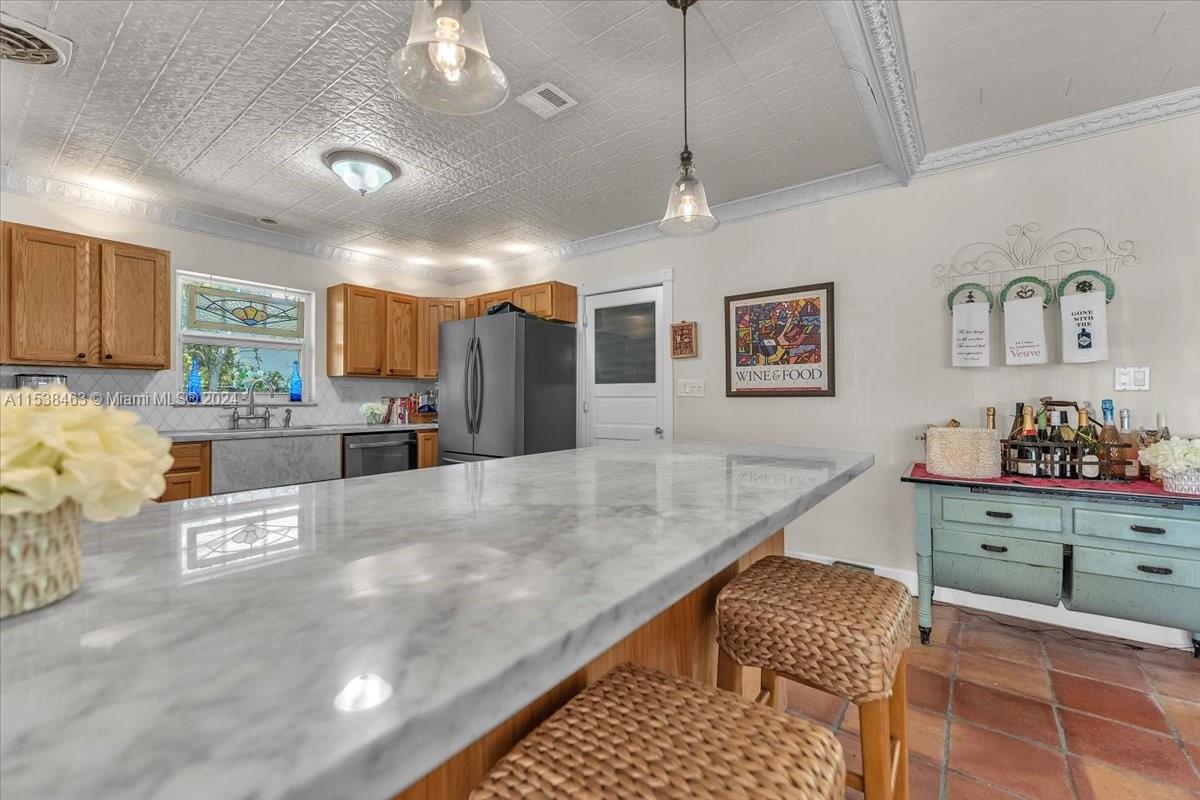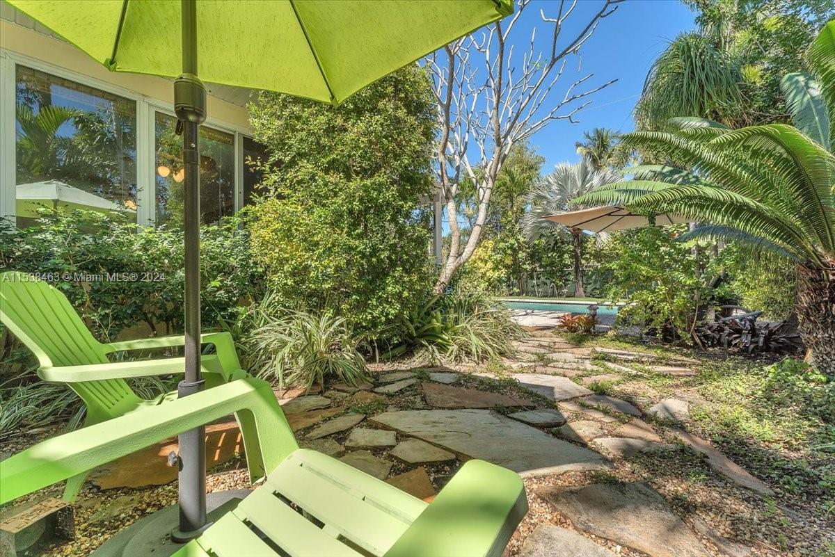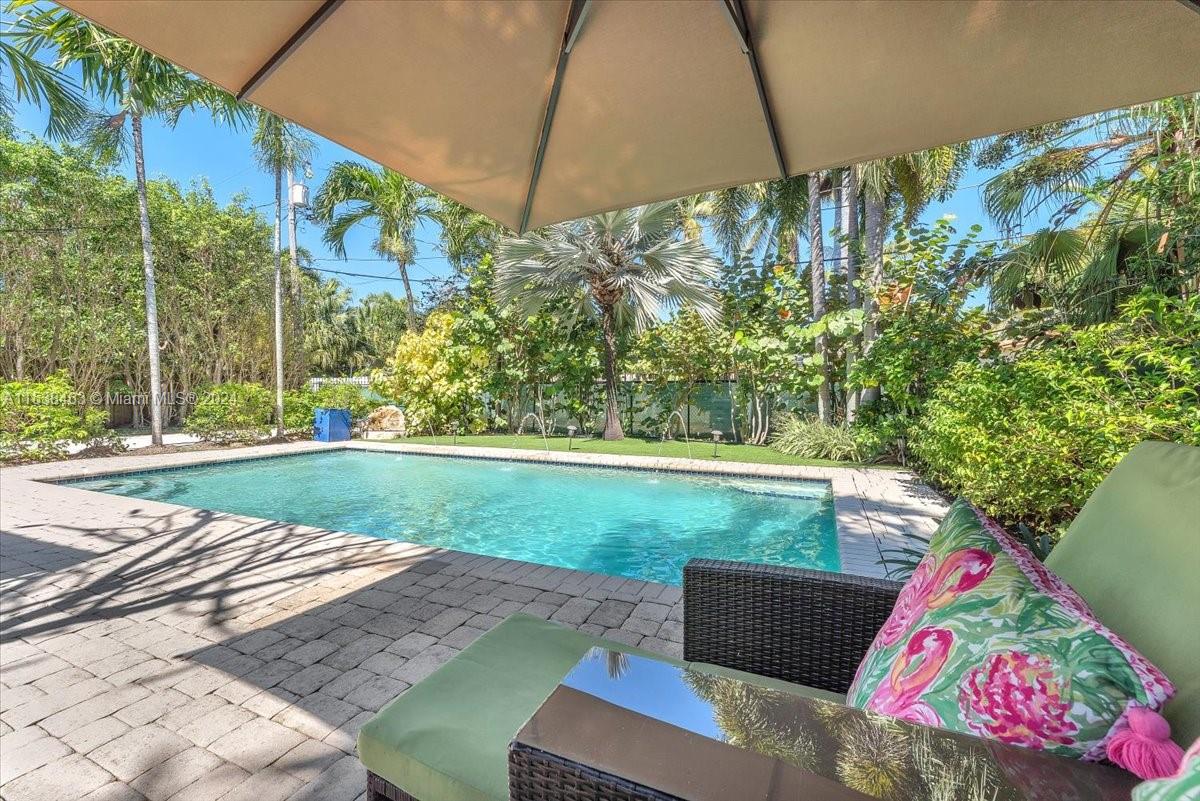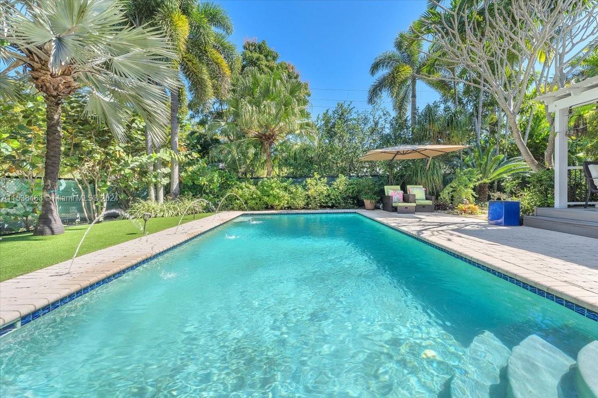 This home has a lot of charm with a spacious living room and dining room combination, perfect for entertaining guests. The open kitchen features stainless steel appliances and a marble apron front sink. The oversized family room, surrounded by windows, floods the space with natural light and offers a tranquil view of the pool, lush tropical foliage, and landscaping. Step outside onto the covered patio with brand-new decking & enjoy the tropical ambiance. Dive into relaxation with your saltwater pool. Located just a block from North Lake and a golf course on a street with very low traffic. This home features a appx 4-year-old roof, a 5-year-old A/C, and a 6-month-old tankless gas water heater, impact windows and doors, and is freshly painted. Tented in 2019 and is still under warranty.