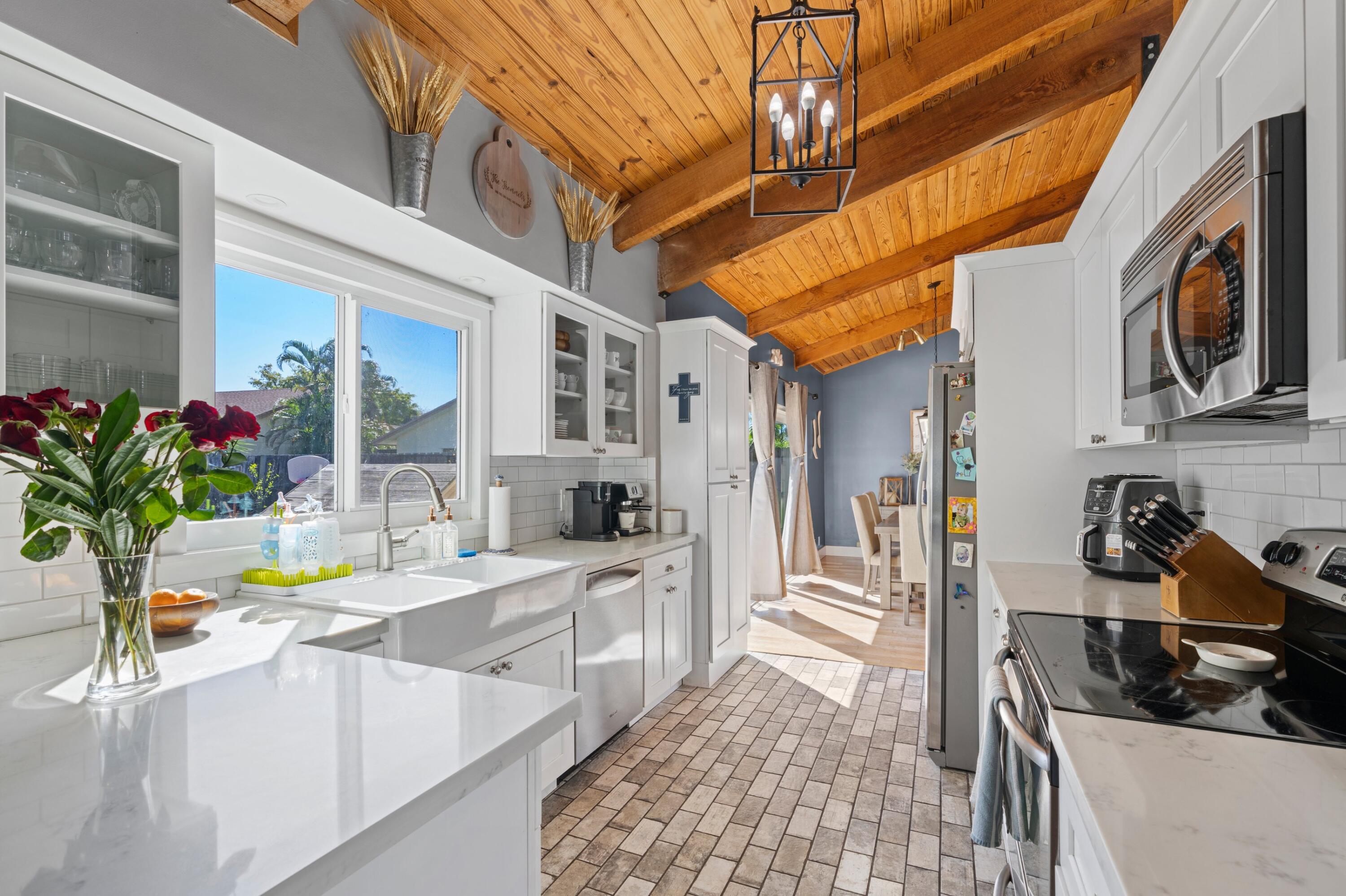 Well maintained, updated 2/2, located in south central Boca - Boca Del Mar. Quiet, family-friendly neighborhood. Quick access to 95 or the Turnpike. Vaulted ceilings with exposed cedar beams. Impact windows and doors. Galley kitchen, farmhouse sink, quartz countertops, S/S appliances. Large primary suite w huge walkin closet. Roof/gutters - 2015, Frig 2019, dishwasher 2020, Irrigation & AC 2021, Water heater & custom closets 2022. Electrical panel 2024.A+ Schools VerdeSpanish RiverHOA paid up to April 2024