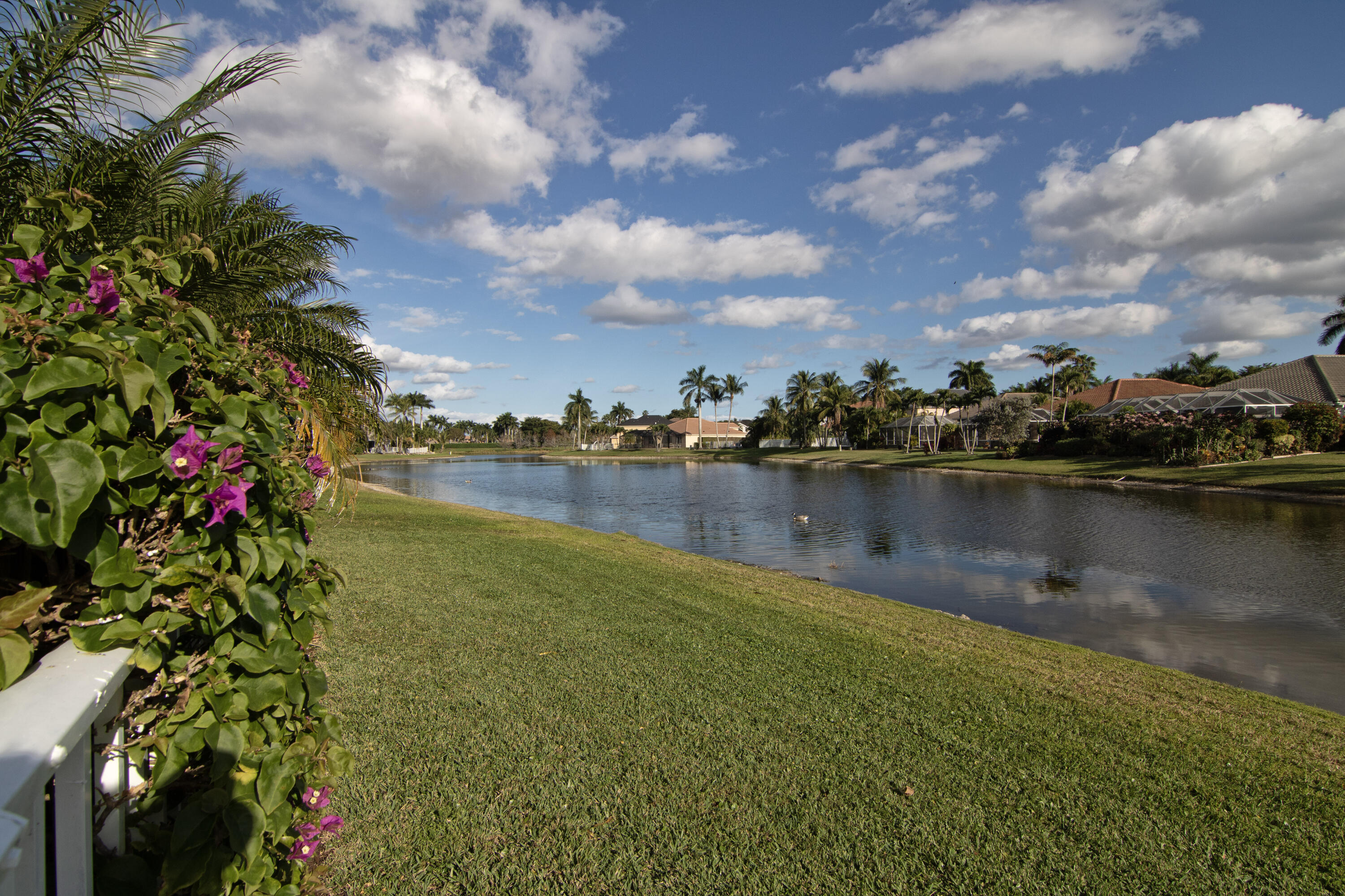 Move-in ready! Crown moulding, all solid wood doors, Plantation Shutters throughout.Beautiful waterfront backyard professionally landscaped with pet friendly synthetic turf. Solar/electric heated salt chlorinated pool with natural stone patio. Whole house water softener/purification system. Walk or bike to ''A'' rated schools with sought after academies. Marble, stone, and wood floors. Granite kitchen counter topsFinished garage with porcelain tiled floor, storage cabinets, separate A/C, 2 TV's, refrigerator, sink, and built in Tesla charger. Garage doors storm rated with 2'' insulation. Highly desirable gated Boca Falls community featuring fitness center.