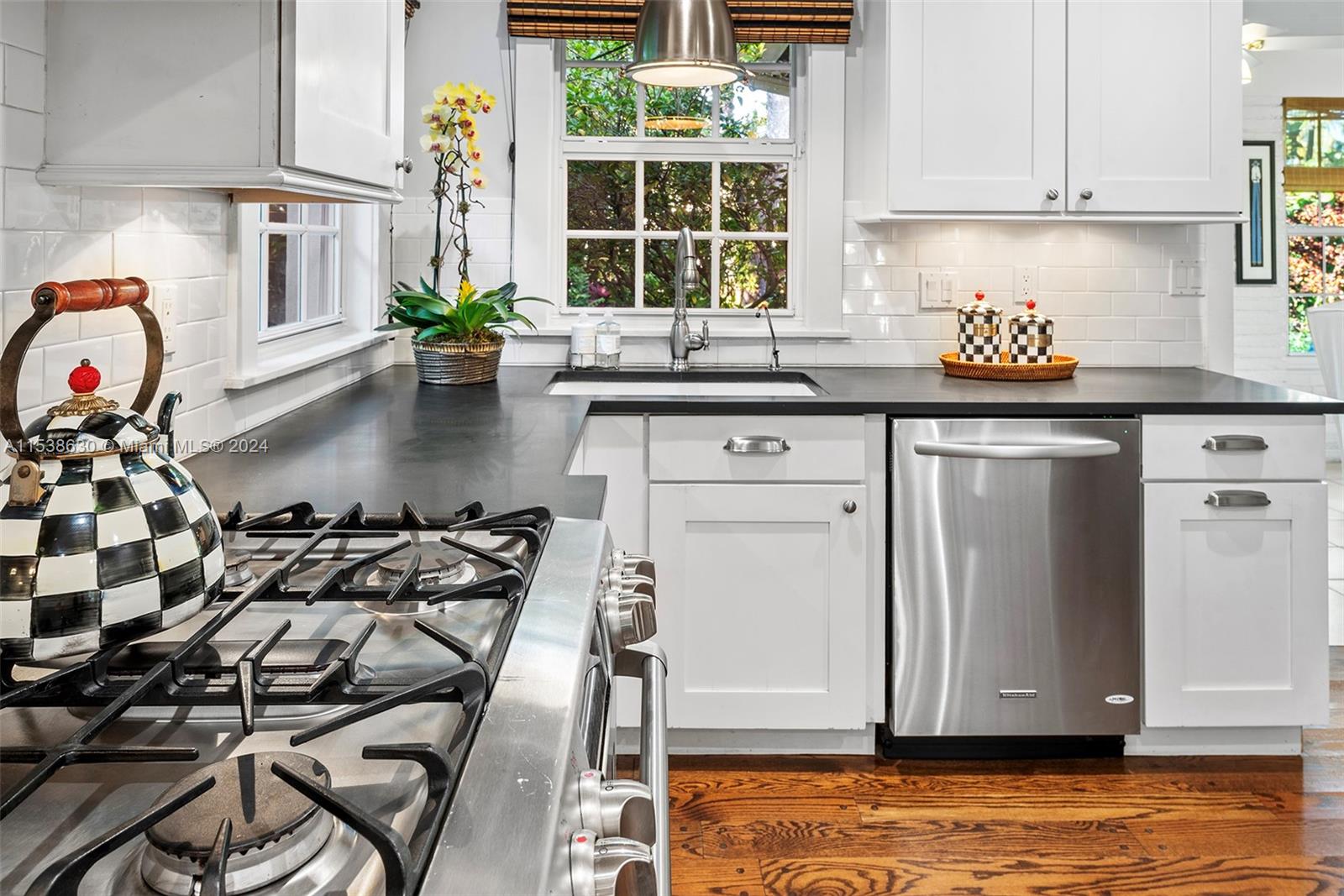 Absolutely beautiful & perfectly located in the Golden Triangle, this 5 BR, 3 BA 3,069 SF home features timeless design coupled w/ modern updates! Enter the grand formal living room w/ working fireplace & beautiful built-ins that flows seamlessly into the sun-drenched dining rm. The updated kitchen hits all the right notes w/ white cabinets, sleek counters & stainless steel appliances including gas range, & it opens to the comfortable family room – the perfect hangout spot! Ultra-serene, the primary suite includes 2 closets & a BA w/ dual vanities, sep tub & shower. The 14,822 SF lot is lush & private w/ majestic oaks & wonderful spots for seating & dining. Inside find 4 add’l BRs, 2 more renovated BAs, laundry, garage, oak flrs, impact windows & more. This is the Gables at its finest!