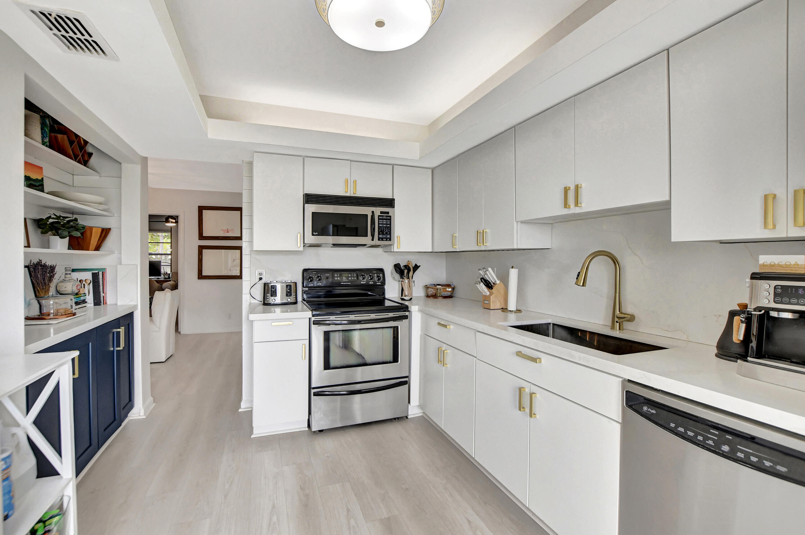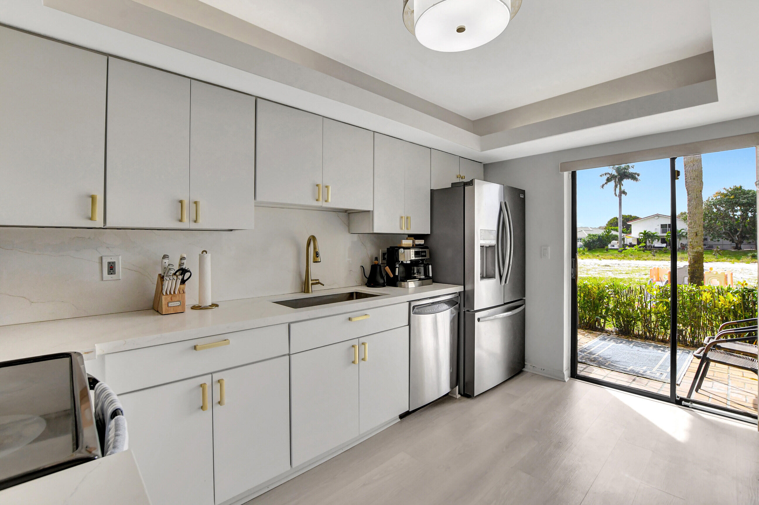 Discover waterfront luxury in Boca Raton with this beautifully updated 4-bed, 3-bath townhouse, featuring over $70,000 in enhancements for the pinnacle of comfortable living. The design includes a convenient bedroom with a full bath on the first floor, ideal for guests or as a home office. The heart of the home is its openfloor plan, accented by a decorative fireplace, providing a warm and inviting atmosphere. Significant upgrades like a tile roof (2016), a new A/C unit (2022), and a waterheater (2016) offer peace of mind and comfort. The kitchen is a chef's delight, with new wood cabinetry, a butler pantry, quartz countertops, and a modern backsplash,all complemented by new wood floors and lighting fixtures throughout. An attached 1-car garage adds practical storage space.