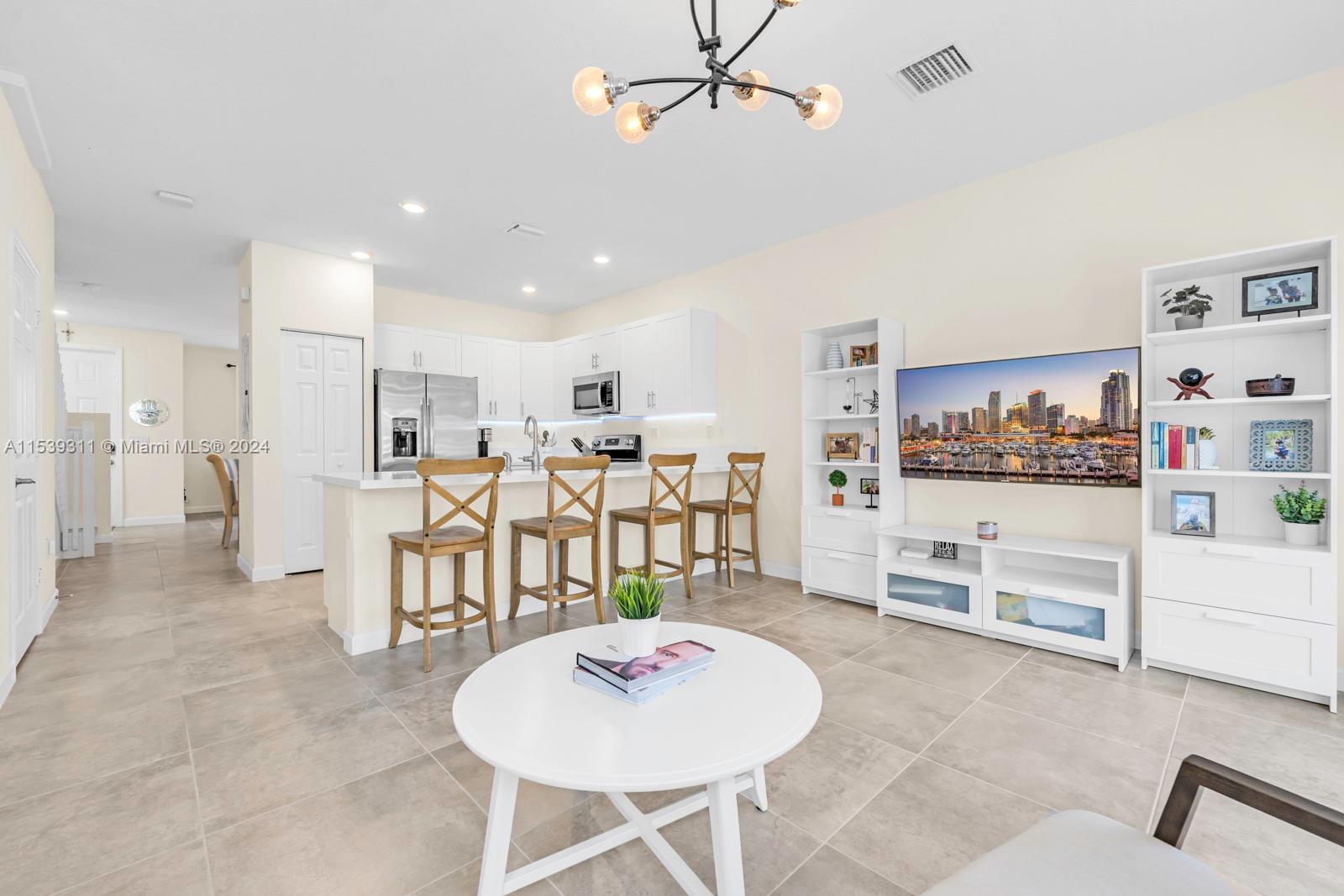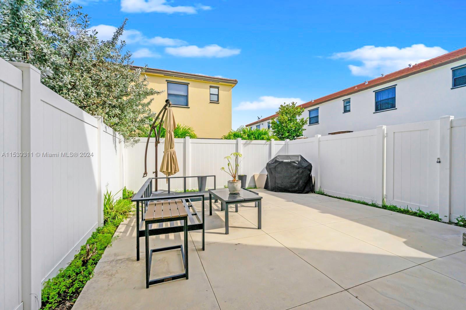 This home is located in the gorgeous gated community of Aquabella. The property sits on a corner lot featuring 3 bedrooms and 2.5 bathrooms with elegant touches throughout. The kitchen is fully renovated with stainless steel appliances and white quartz countertops overlooking a spacious family room. In the primary bedroom, you'll find a large walk-in closet with plenty of storage space. The backyard has cement and an entrance on the side fence for easy access to the yard. Enjoy resort-like amenities including swimming pools, children's park, fitness center, clubhouse and plenty of visitor parking spaces. Great location near major highways and a brand new shopping center featuring Publix, Homegoods, Five Below, and more. A + Rated Schools. Perfect home for first-time home buyers!