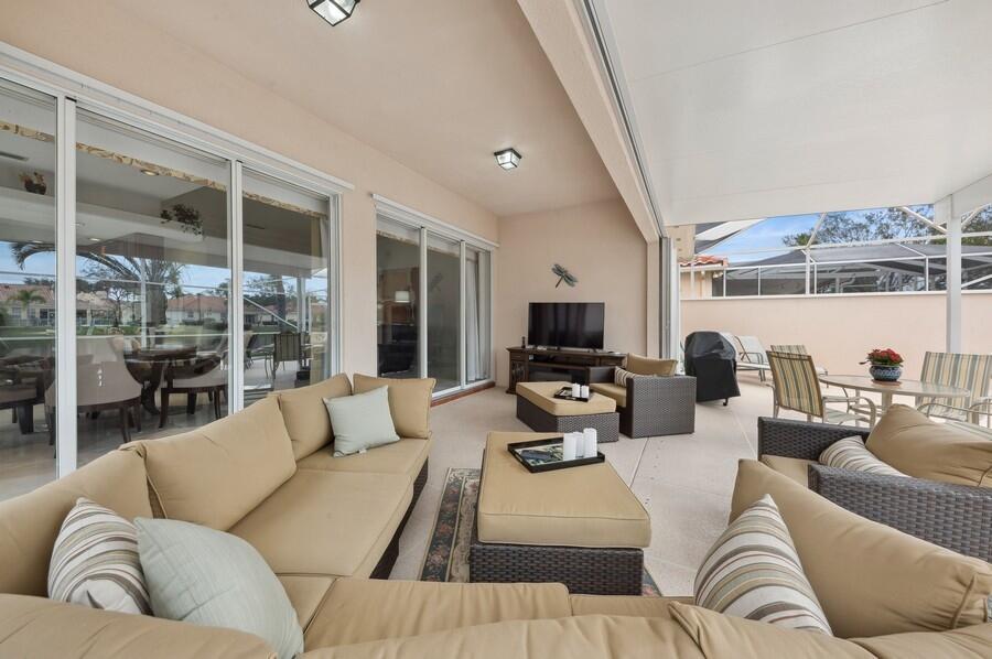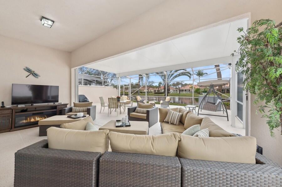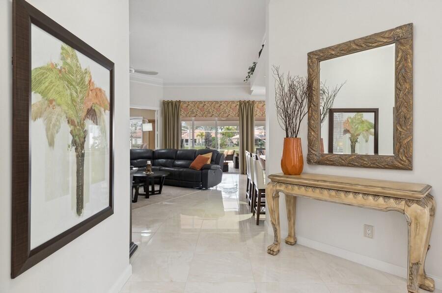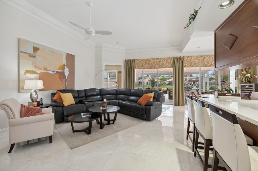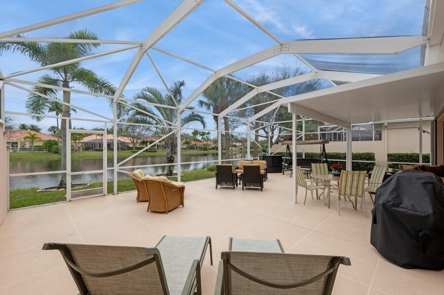 There are but, a few ''Crown Jewels'' that Glisten & Sparkle, with as many facets, as this Unique, Re-imagined & Skillfully Designed Oakmont that will Capture the Heart & Mind of One Lucky Buyer! This Gem is Set On A Gorgeous Wide, Lush Lakeside Lot! In the Fantastic 24 Hour Manned Gated Community of Riverwalk! One of the Best Locations in Palm Beach County, 15-20 minutes to Everything including Palm Beach, the Ocean & Airport! It's Impressive & Commanding Siting with a Lush Lawn & a Side Loading 2 Car Garage with an Enlarged & Expanded Motor Court leading to the Screened Entry with a Double Door & a New Ceramic Tile Floor that opens to the Gracious Foyer with a Designer Fixture, is Just the Beginning! The Foyer, as well as The Entire Residence has Breathtaking Polished 24 Inch Porcelain