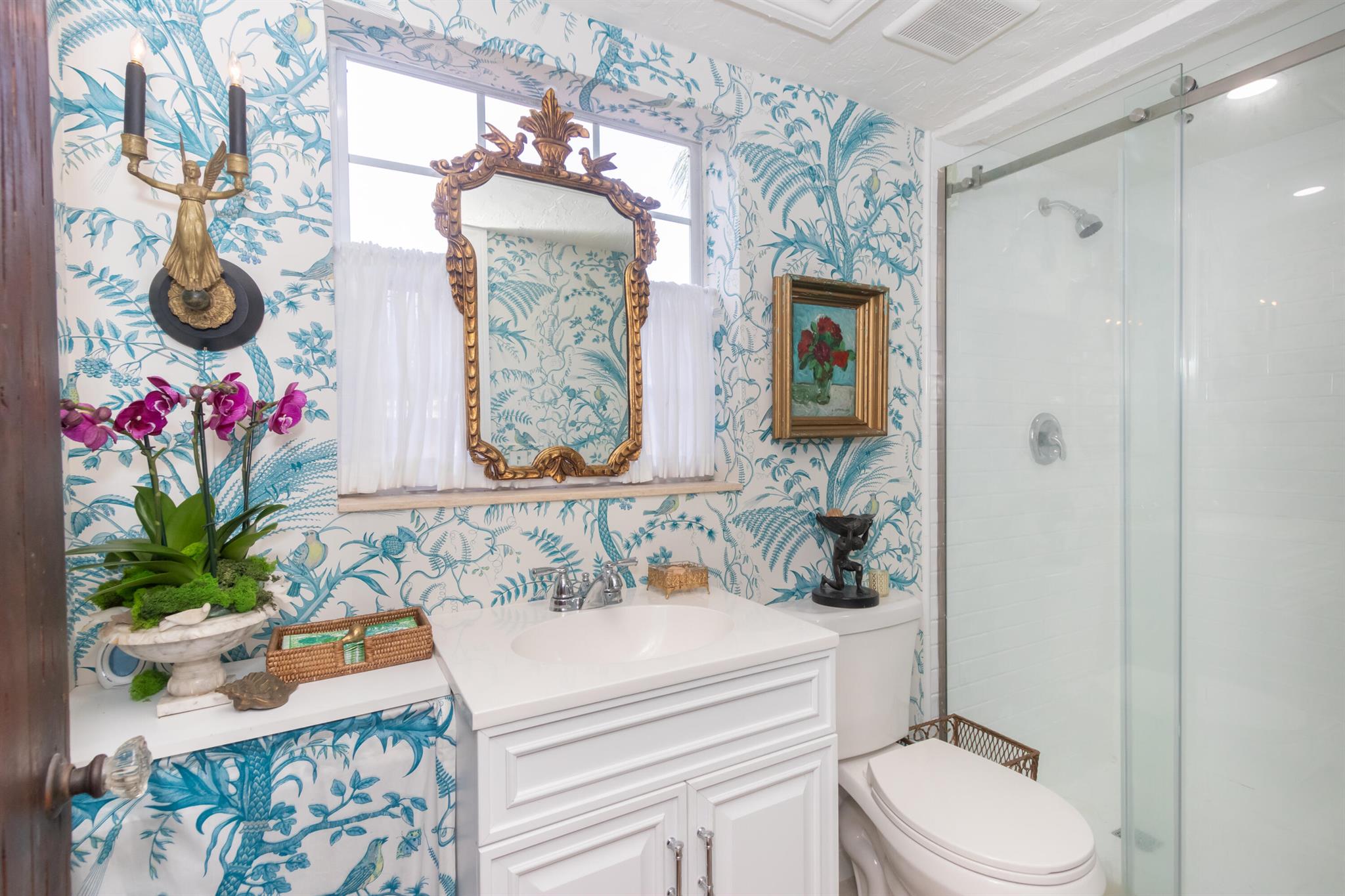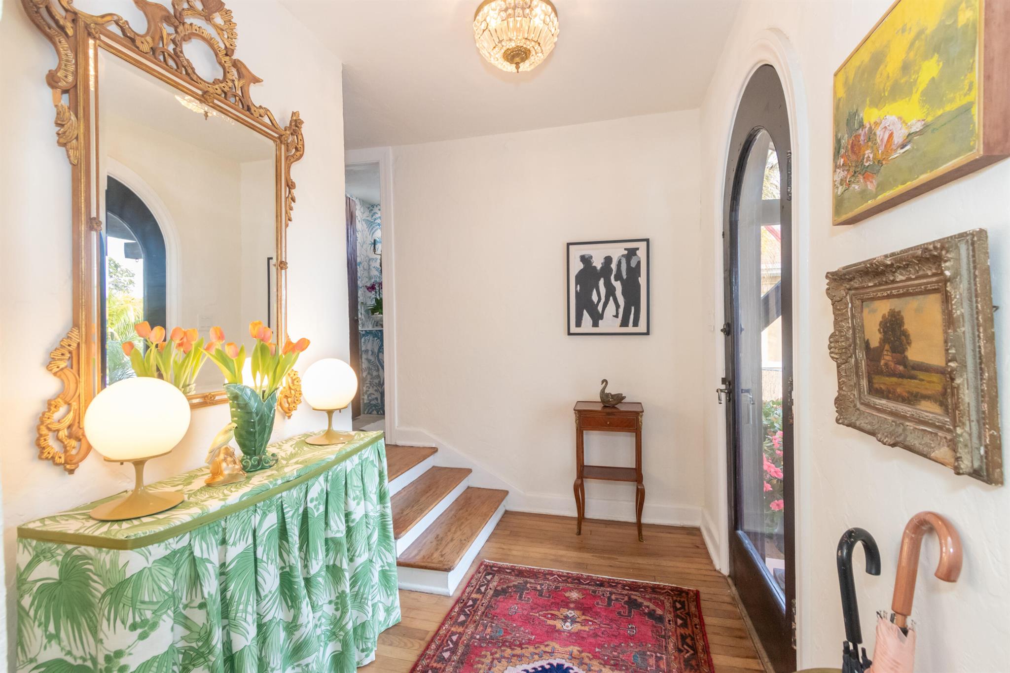 This big 3 bedroom/2 bath two-story Spanish style home with finished guest cottage is fully updated & located in Northwood Hills, minutes from downtown West Palm Beach. Fully remodeled kitchen with newer electric & plumbing. Two renovated full baths, large bedrooms, lots of storage, original oak wood floors throughout, updated windows, & tankless water heater. Architectural details include high ceilings, Victorian moldings, archways, Pecky Cypress, custom stained-glass windows in the sunroom, & big entry foyer. French doors off the dining room lead to brick paved patio, fenced-in yard, oversized lot with land for a pool. Lush, mature landscaping provides privacy in this tropical oasis. Casa de Joyas was showcased in the 2023 Historic Home Tour. 10 minutes to the ocean or airport. No HOA.