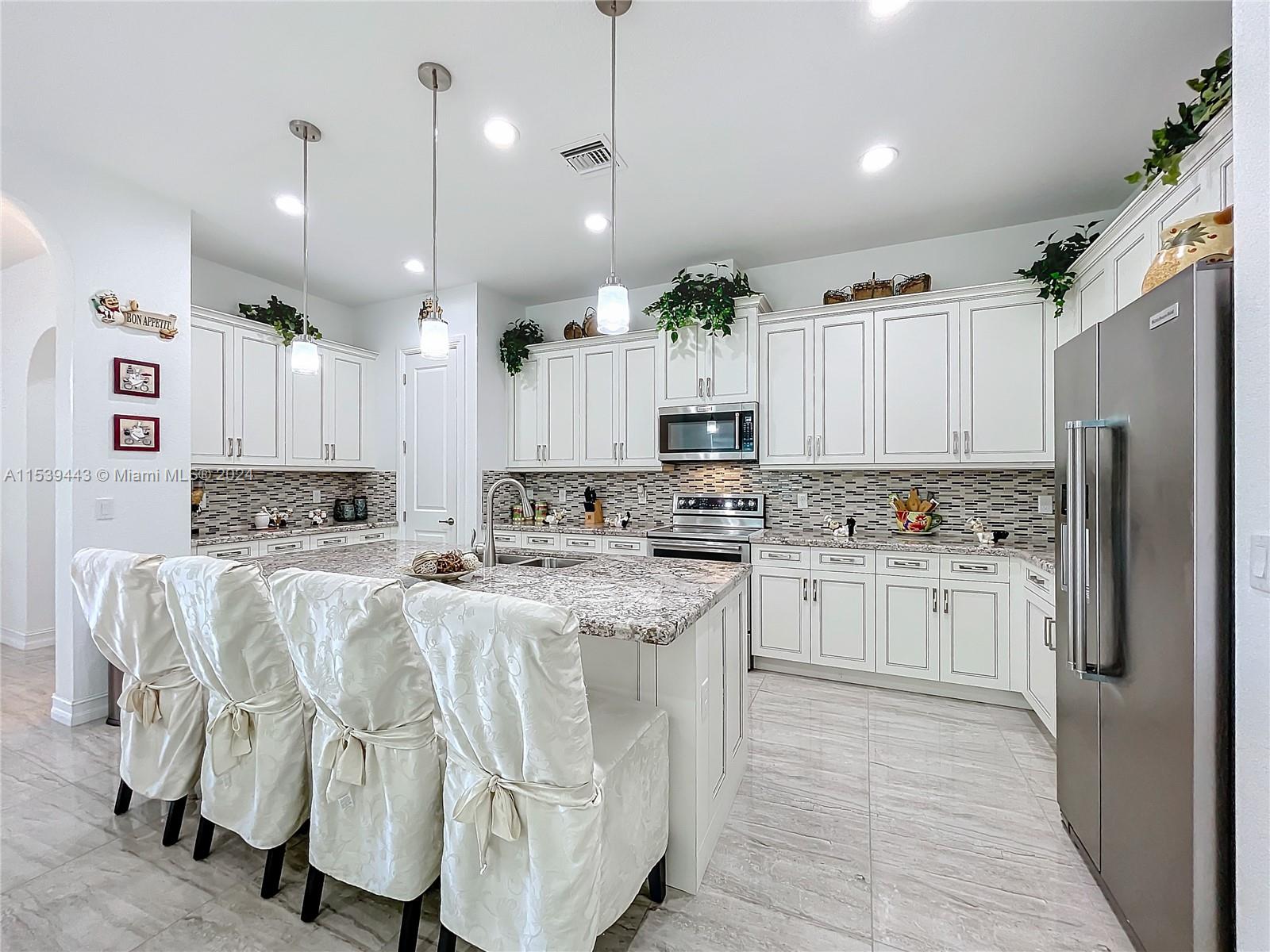 Welcome to this meticulously maintained and beautifully one-story corner lot home. This 3-bedroom, 2 ½-bathroom residence boasts elegant upgrades throughout, including a gourmet kitchen with stainless steel appliances and granite island. Luxurious features such as a customized walk-in closet, and blackout curtains enhance the comfort of this home. Security cameras both inside and outside. Enjoy the tranquility of the aluminum fenced yard, pavers extension, and a screened patio with electric shutter. The 2-car garage features an epoxy floor. Residents can take advantage of the community's amenities, including a gym and heated pool. With its prime location near I75, shops, restaurants, and easy access to airports, this home offers the perfect blend of luxury and convenience.