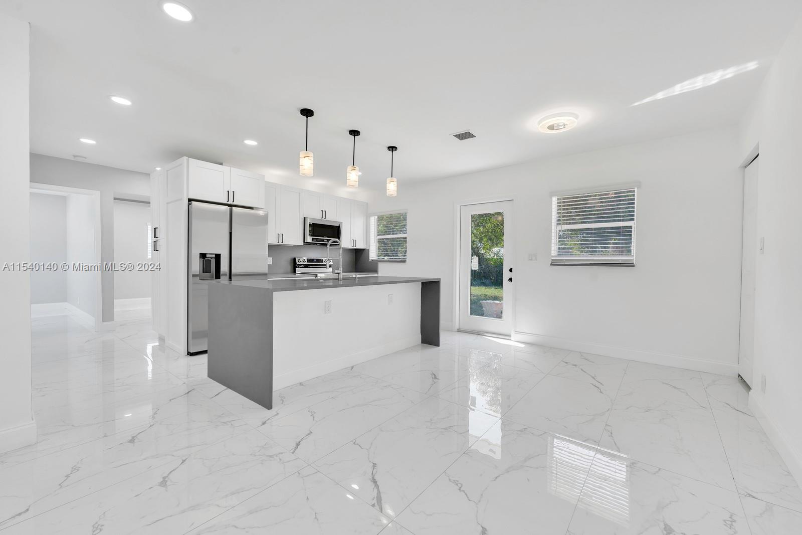 Welcome to the New Wilton Manors! Only 5 min to eclectic Dtwn Wilton Manors & artistic Flagler Village, 7-10 min to vibrant Dtwn Ft Lauderdale, & 10-15 min to the serene beaches. This elegantly renovated 4bed 2bath home is nestled in a tranquil neighborhood with NO HOA & boasts a newer roof, electrical system, impact windows, modern bathrooms, & open kitchen. The spacious living room seamlessly transitions into an island kitchen, complete with a pantry and abundant cabinet space. The home's design creates a delightful indoor/outdoor ambiance, with views of the expansive backyard from the entrance, enhancing the sense of space. The backyard, is an eden of fruit trees, & has room for a pool. The home boasts a split floorplan with a private en-suite primary bedroom/bathroom. It's a MUST see!
