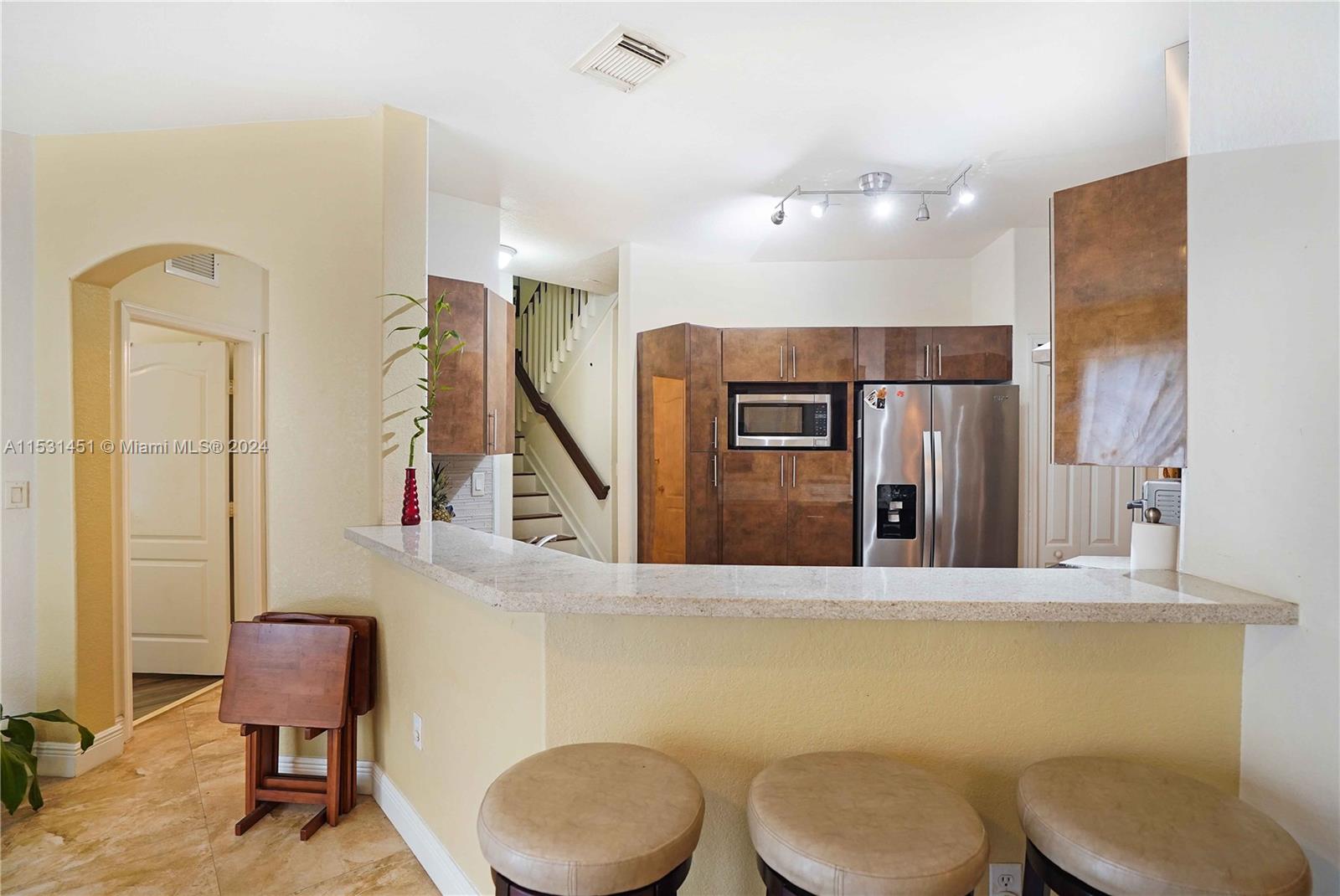 Splendid home with elegance and functionality in mind features 4 beds x 3 baths. Gated community, boasting contemporary allure, one garage converted into useful workshop or den. Step onto the inviting patio, enveloped by lush greenery , ideal for entertaining or quiet relaxation. One full bedroom & bathroom downstairs. Strategically located within one minute from Florida’s Turnpike and Palmetto. Enjoy the fine dining & shops within minutes at the Dolphin Mall, International Mall, IKEA, Downtown Doral and much more. This neighborhood features a resort style pool, giant clubhouse, state-of-the-art gym, child’s play area, basketball and tennis Court. Also, is conveniently located within a short distance to the Legacy Park. So, seize the opportunity to make this your family's perfect haven.