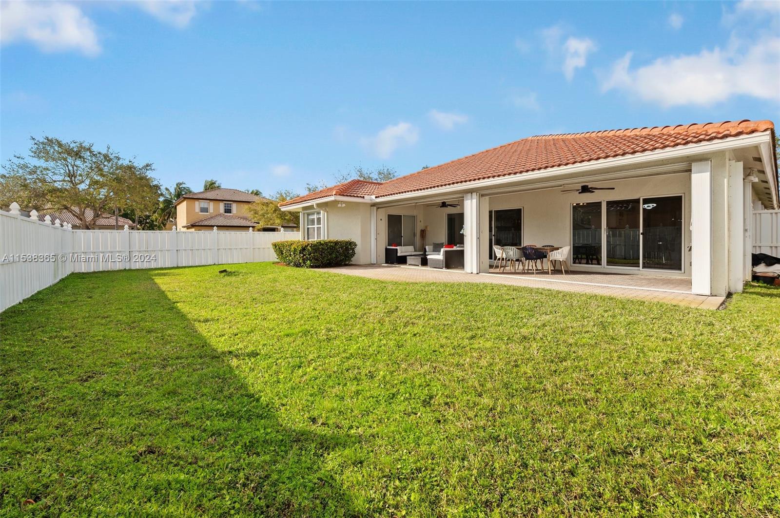 Located within the prestigious gated community of Windsor Palms in Miramar, FL, this single-family one-story luxury home. Situated on an oversized corner lot with white acrylic fence including the possibility of adding a pool to enhance outdoor living. Inside, the property boasts high ceilings that contribute to an airy atmosphere, laminated wood floors in bedrooms and wood in the living room. All bedrooms featuring California closets, with the master suite boasting two walk-in closets for ample storage. *Auto-Sprinkler system with well water* ADT Alarm Outdoor amenities include a spacious patio, perfect for enjoying Florida's sunshine and ideal for entertaining guests. Additionally, the presence of accordion shutters provides peace of mind during storm seasons.