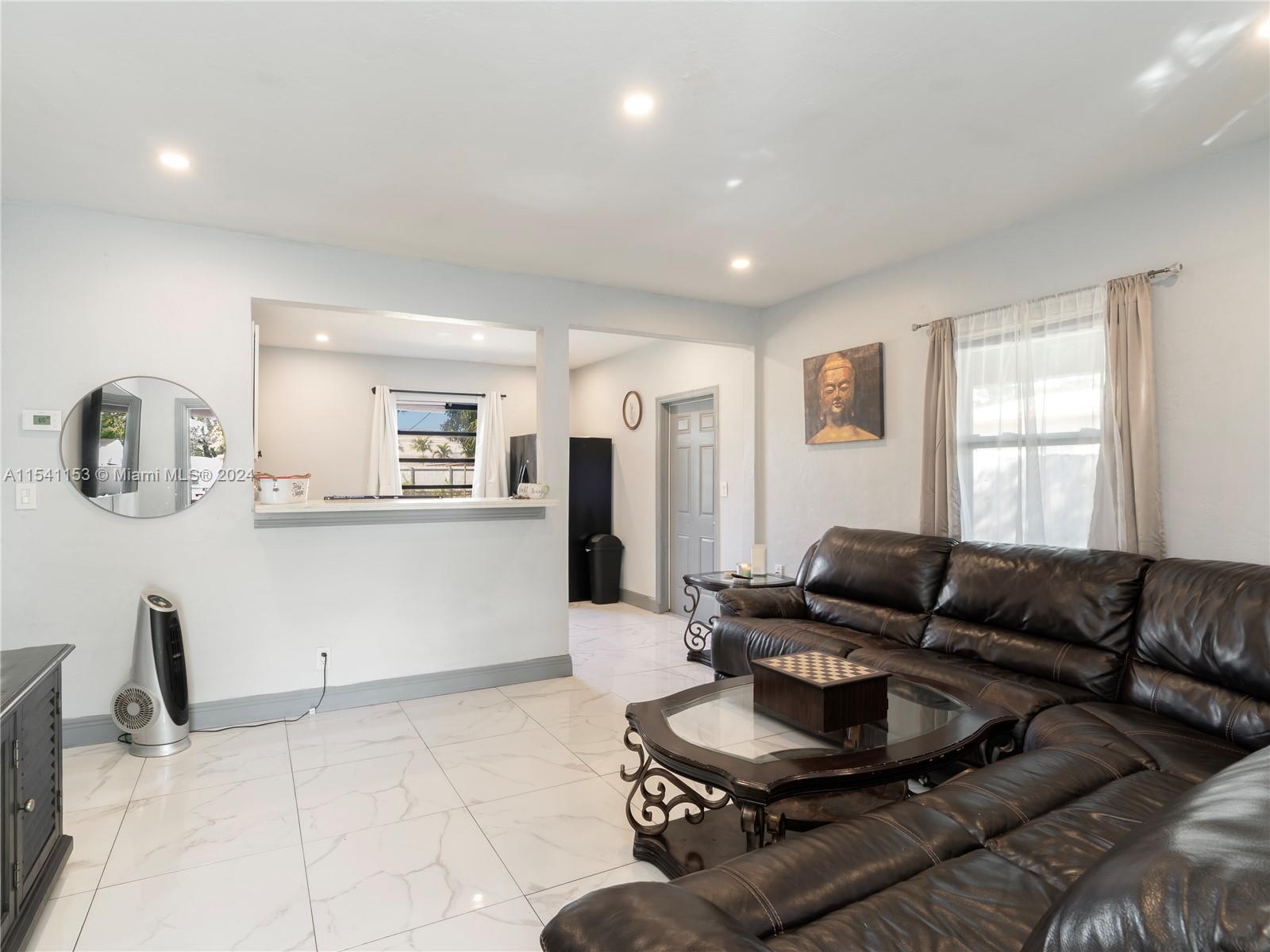 Welcome to your new home in Fort Lauderdale! This property catches your eye with its modern look and sits on a big lot, giving you plenty of space for a dream backyard. It features a freshly updated kitchen with white cabinets and black appliances, and marble tile floors all through the house. The bathroom is also newly renovated with gray tiles and a black vanity. The house has a great layout and is filled with natural sunlight, making it feel cozy and welcoming. There's an attached carport, which is great for parking your car or for hosting outdoor fun. This home is ready for you to move in and make it yours!