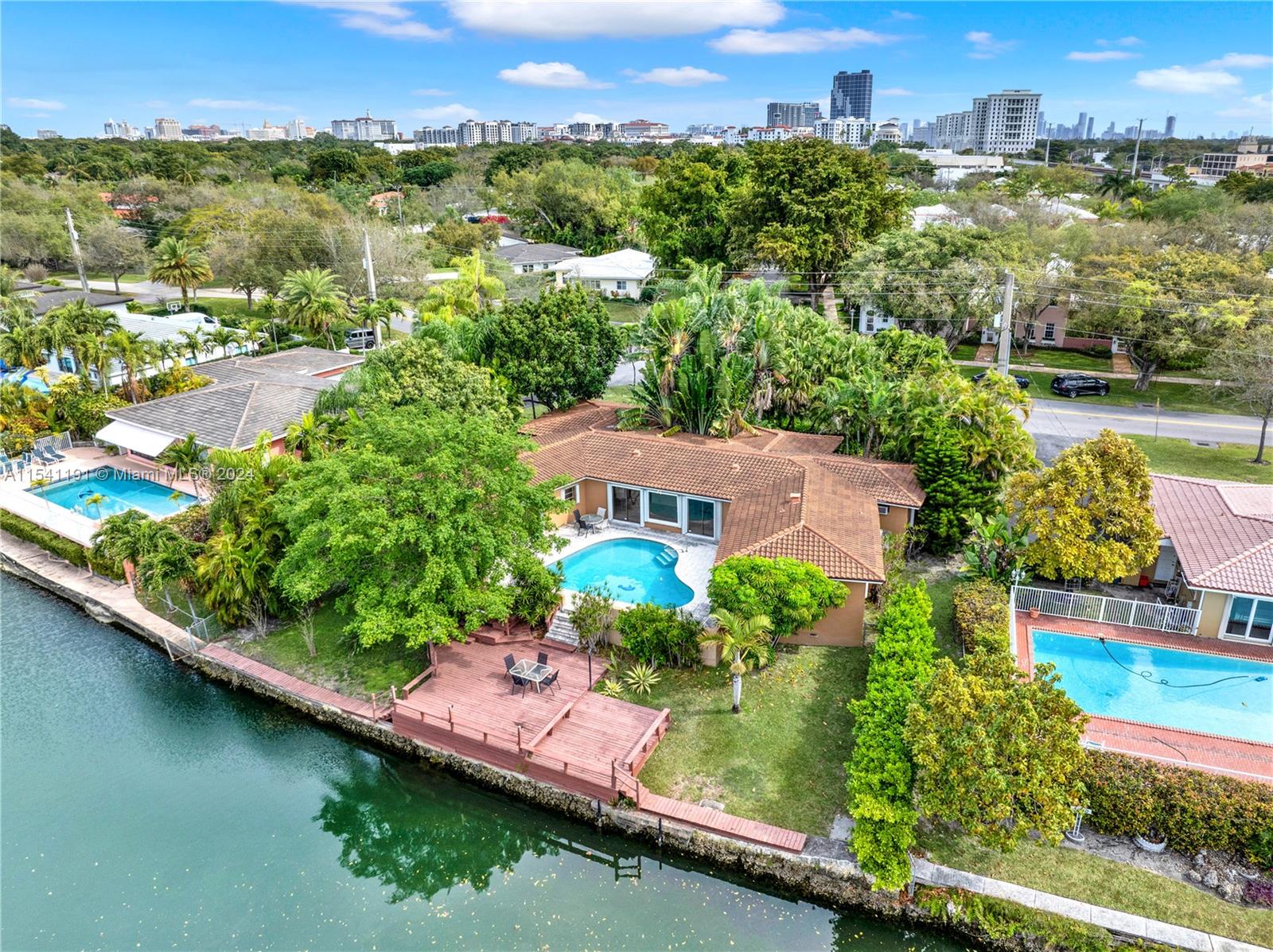 Nestled in the heart of Coral Gables, the City Beautiful, this 4/4 home is a true gem, offering waterfront living with a beautiful pool. Perfectly positioned near US1, it provides convenient access to the University of Miami, top-rated schools, shopping, downtown, the beaches, and Miami Int. Airport. This house has a great split plan layout with the primary bedroom on one side and three additional bedrooms on the other. The kitchen is a nice size, and the house has an open floorplan framing the pool, conducive for entertaining. The seawall was recently reenforced and there is a large private deck on the waterway; creating a peaceful and serene place to watch the sunset and the perfect place to dock your boat. Bigger than tax record: as per appraiser 2,446 Living Area square footage.