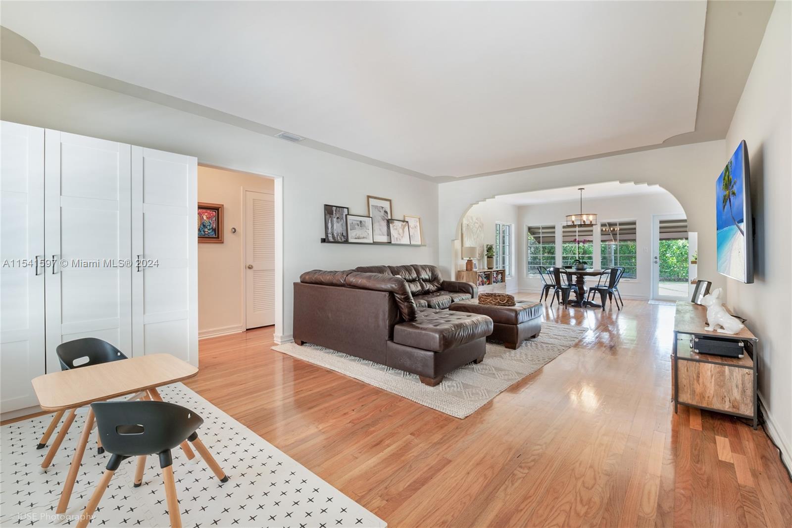 TURN-KEY! Charming & spacious, this enchanting house boasts a picturesque setting nestled among towering trees & lush greenery. With 2 bed/1 bath, it offers ample living space for families or those seeking room to grow. The open-concept design seamlessly connects the living, dining, & kitchen areas, creating an inviting atmosphere for gatherings & entertaining. Gleaming hardwood floors, large PGT impact windows & doors amplify the sense of light & space throughout. The kitchen features SS appliances, quartz countertops, & plenty of cabinet space. Outside, a sprawling backyard w/patio provides the perfect spot for outdoor dining or relaxing amidst nature's beauty. Conveniently located, this home offers both tranquility & accessibility, making it an ideal haven for its next fortunate owner.