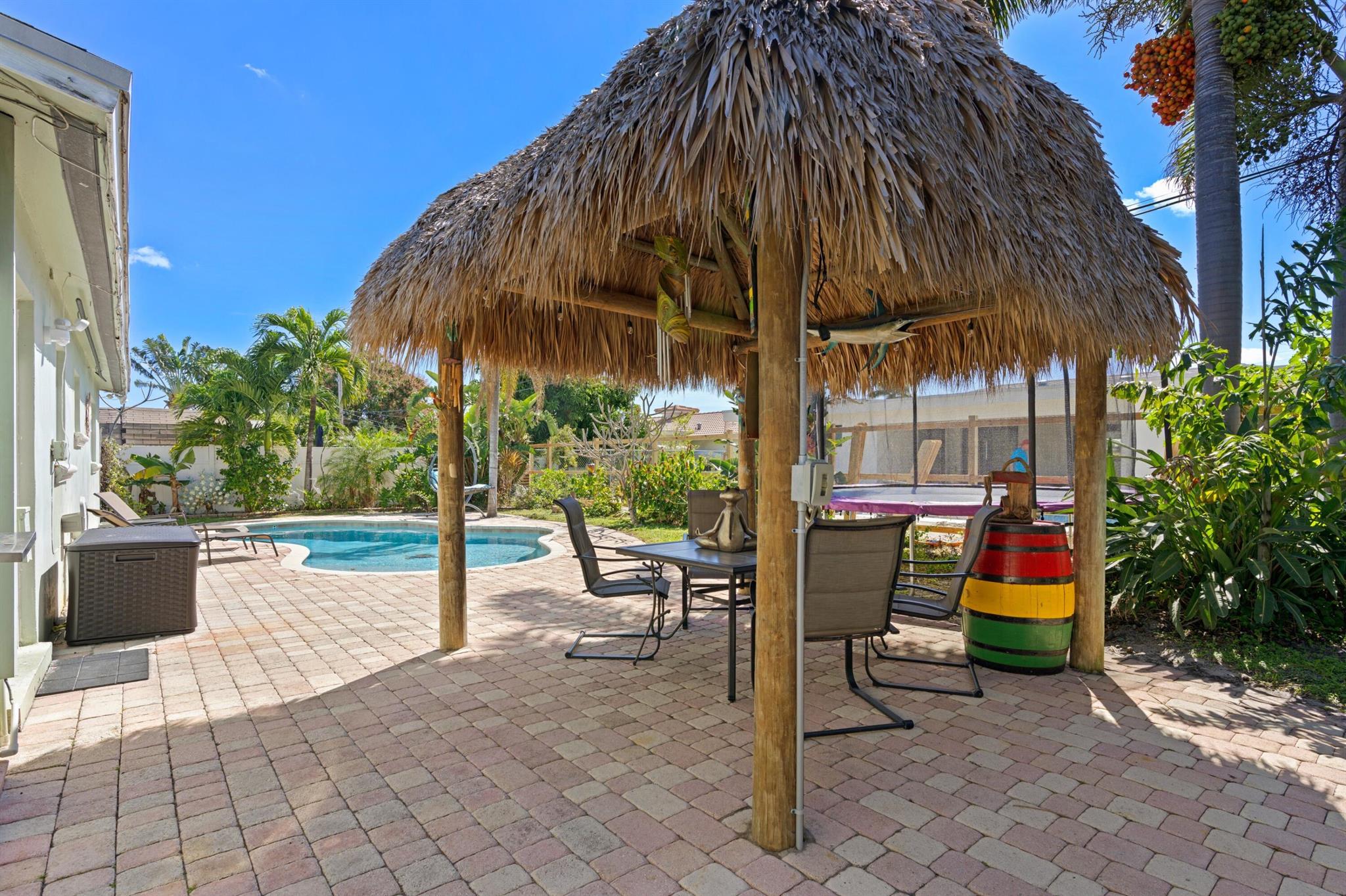 Location! Location! Location! Beautiful Single-Family Home in East Boca Raton's Desired Neighborhood of Chatham Hills! Bike to Beach! No HOA FEES! Tropical Lush Oasis Backyard with Manicured Landscaping | Custom Designed Pool | Tiki Hut with Electric | Fenced Backyard | Room for Boat or RV! Bright Open Floor Plan | LED Recessed Lighting | Beautiful Eat-In Kitchen with Large Center Island, White Wood Cabinets, Quartz Countertops & Tile Backsplash & S/S Appliances! Primary Bedroom | Large Closet | Updated Ensuite! 1 Car GA | 2+ Car Paver Driveway! Best A+ Rated Schools! Minutes to Beach, FAU, Downtown Mizner Park, Royal Palm Plaza, Delray Beach's Atlantic Avenue & I-95. Roof 2014. New AC 2022. New WH 2024!