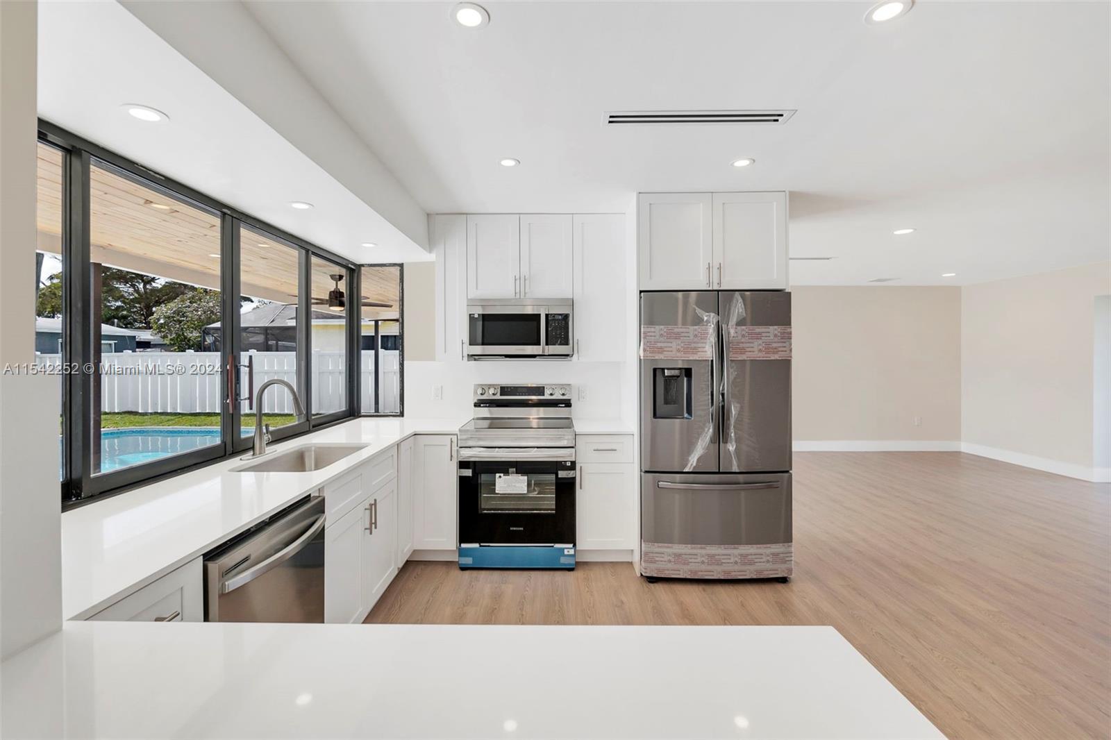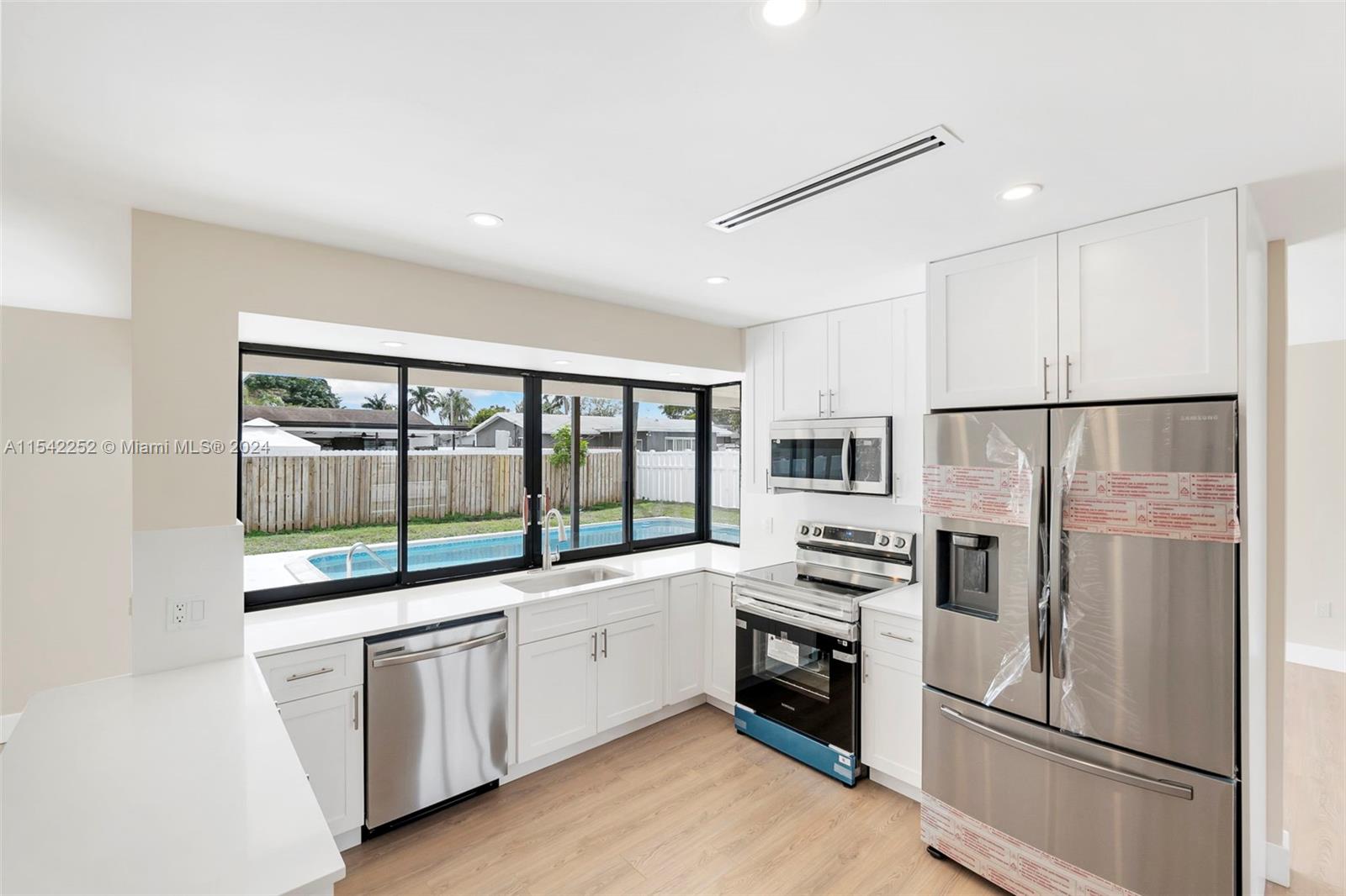 Welcome to this fully remodeled 4-bedroom, 2-bathroom home! Offering a blend of style and functionality. Find a beautifully designed open space where the kitchen seamlessly connects with the living room, creating a perfect environment for both everyday living and entertaining guests. With modern appliances, sleek countertops, and abundant natural light pouring in through large windows. Discover your own private oasis, complete with a sparkling pool. The home also features a 2-car garage, providing ample parking and storage space. With its thoughtful design and attention to detail, every aspect of this home has been carefully crafted to offer both comfort and style. Don't miss the opportunity to make this your own slice of paradise!