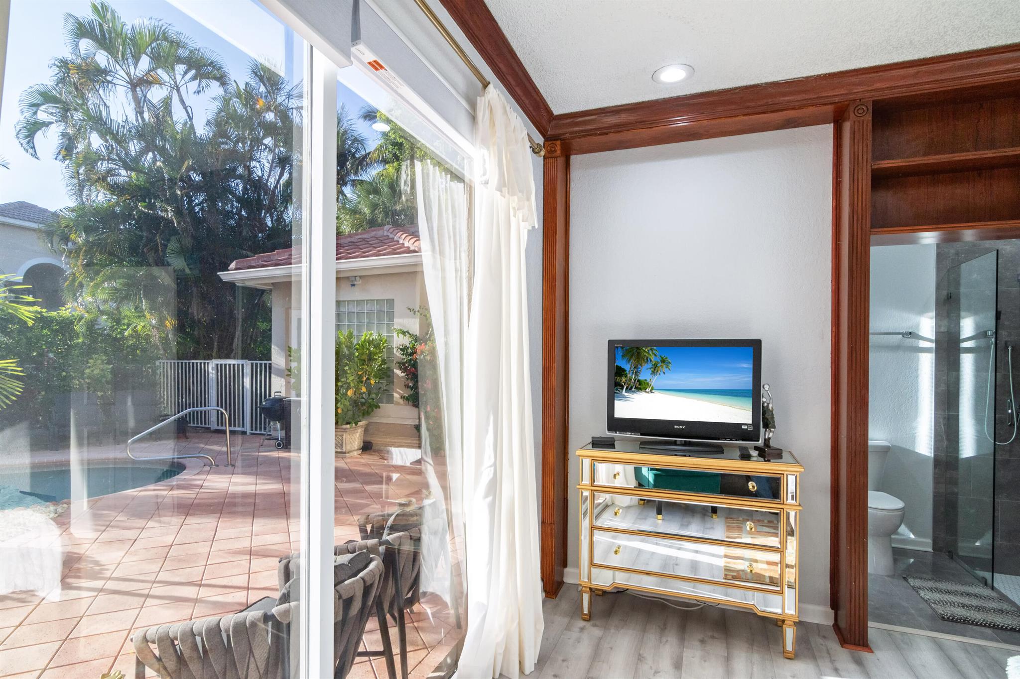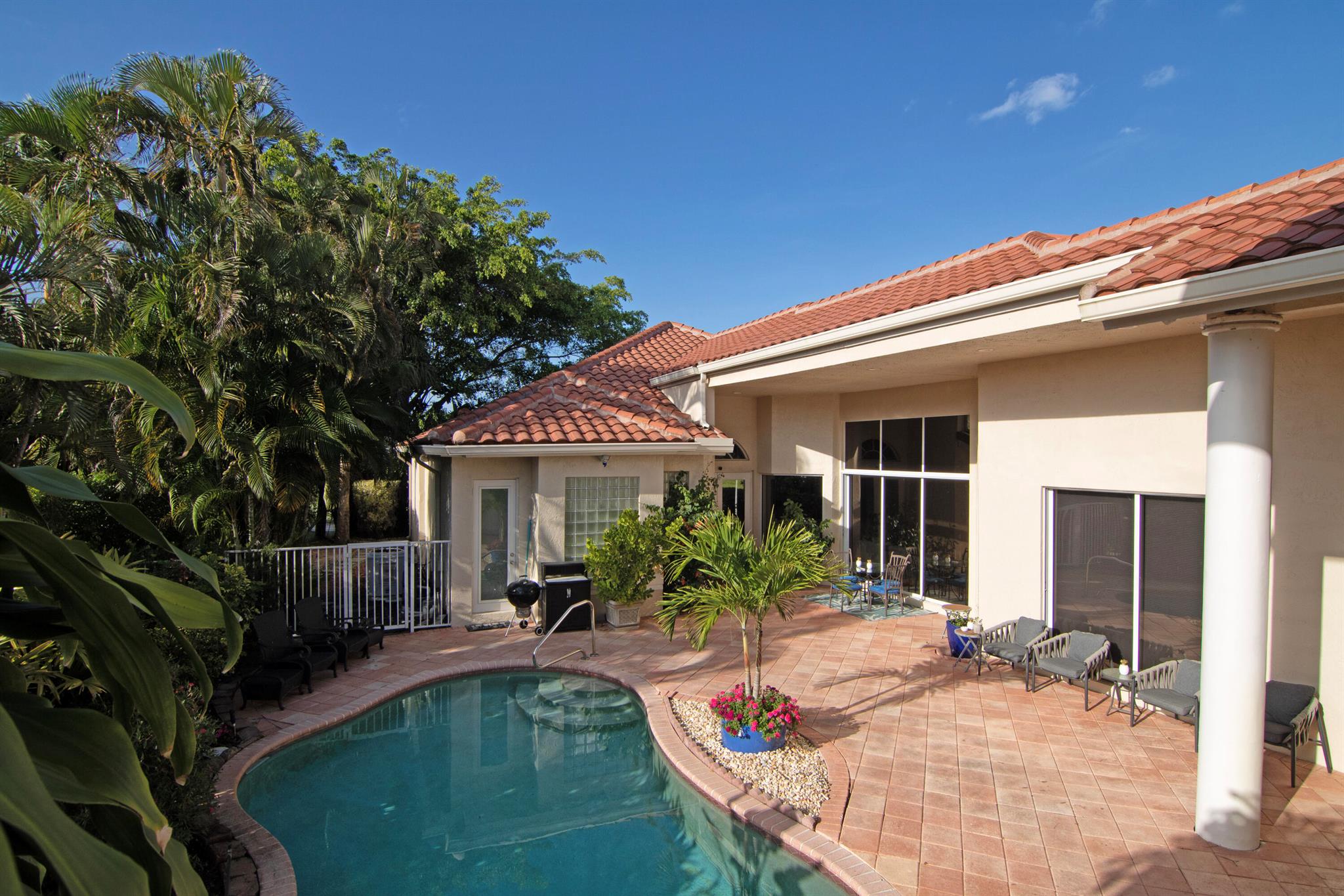 TOTALLY TOTALLY UPDATED A MUST SEE! TRANQUIL COURTYARD HEATED POOL HOME with 3 Bedrooms & 3 Baths in main home with SEPARATE GUEST HOUSE. 2 1/2 Car Garage on private Cul-de-sac. Home sits on the GOLF COURSE in the ELEGANT GOLF COURSE FULL IMMEDITY COMMUNITY of WYCLIFFE. NEW Barrel Tile S ROOF (2020), UPDATED kitchen, Baths, Window Treatments, NEW AC's, NEW Hot Water Heaters.