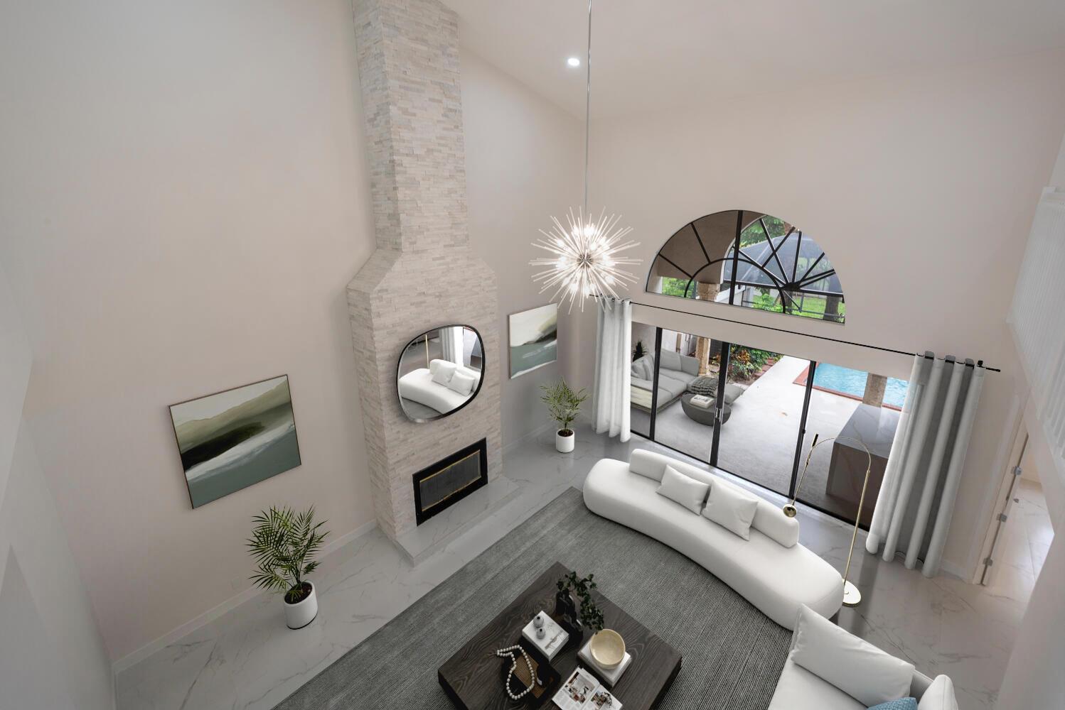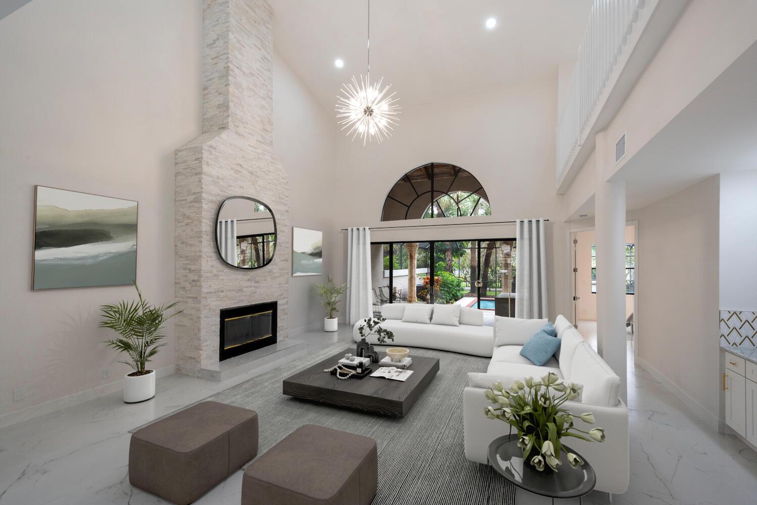 Beautiful Boca Pointe, El Dorado sub. Club Non-mandatory. Guard-gate. Luxury & Spacious home. BRAND NEW INTERIOR! 4 BED, 4 BATHS w/ Pool next to club. 3194 sq. ft Under Air, 4830 Total + MORE OUTDOOR SPACE! 1 BED (1st floor), 3BED (2nd Floor), 2 Full BATH/1st floor & 2 Full BATH/2nd floor. Stone working fireplace. 25+ft ceilings! 1ST floor Primary has 2 walkin closets, Shower w/ multi-sprays, & soaking tub, 2 sinks. Option-2nd primary 2nd floor, 2 closets, tub/shower combo,large lanai. Private Pool, 2 car Garag, 2 car Driveway. AC 2023 & 2018, roof 2007. Kitch upgrades, Calcatta quartz waterfall island, double farm sink, double wall oven. 2 sets washer/dryer. Formal dining can be used as den/enclose for 5th Bed. OFFERING $8300 BUYERS CREDIT FOR IMPACTS/HURRICANE SHUTTERS! OWNER/AG