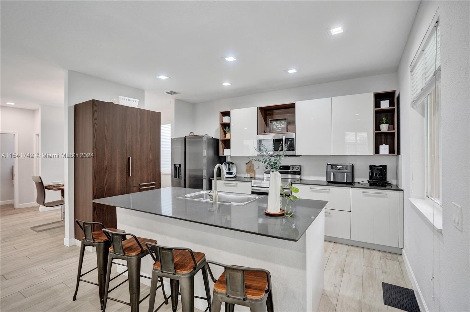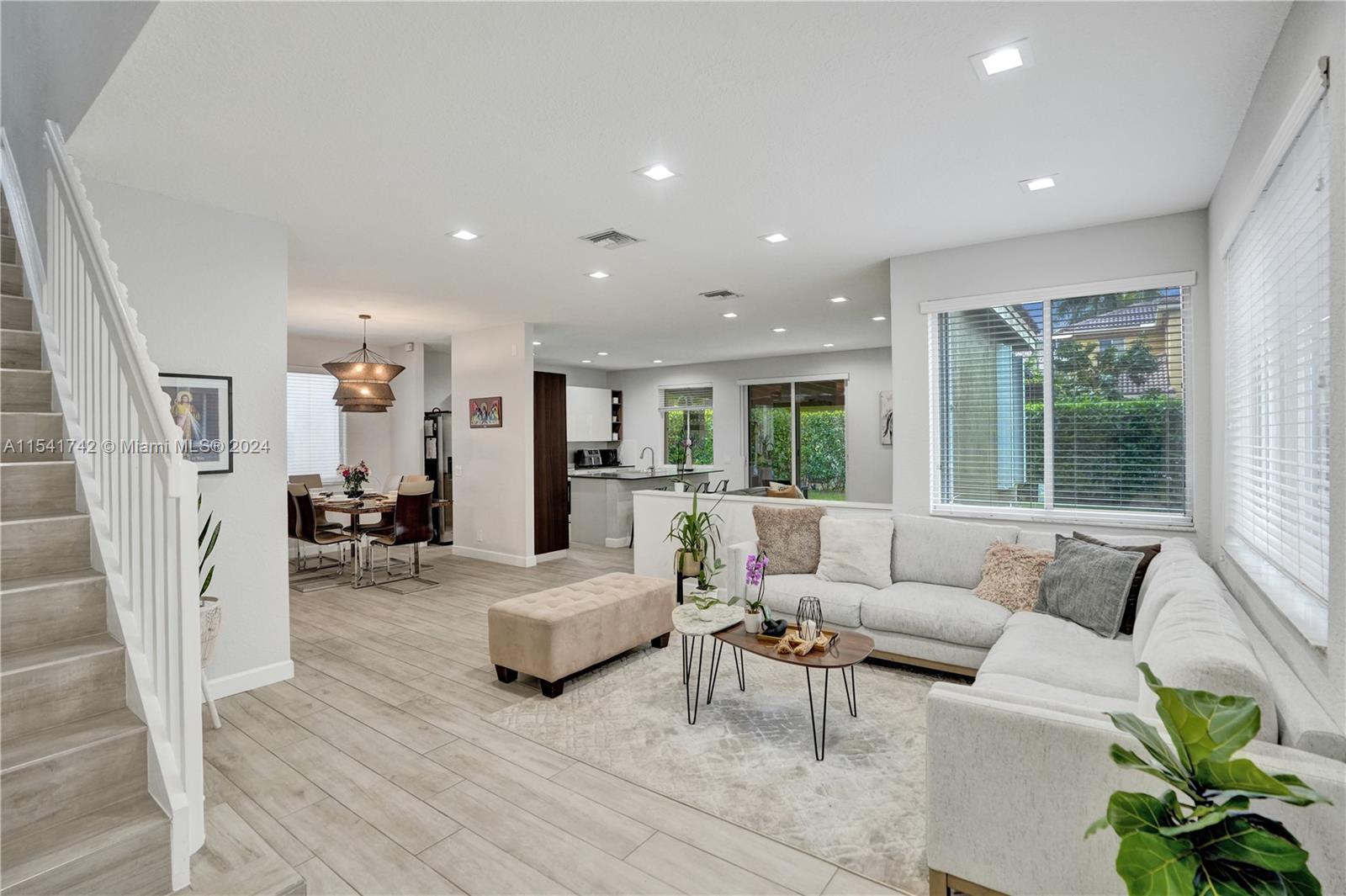 Nestled within a prestigious family-oriented neighborhood, this lovely two story home totally remodeled features 4 bedrooms and 2.5 bathrooms in an open floor plan that invites you into a bright living area, adorned with chic finishes. The modern kitchen showcases newer stainless steel appliances and custom cabinetry. Neutral Tile floor on 1st and 2nd floor. Luxury wood look laminate flooring on bedrooms. A High Efficiency AC was installed in 2023. The resort-style living offers 5 star amenities, with clubhouse, 3 swimming pools, sports courts, surrounded by lush landscaping and walkable paths within tranquil lakes. Savanna offers serenity and comfort in a prime location with an excellent school district, and surrounded by shoppes, restaurants and un paralleled lifestyle.