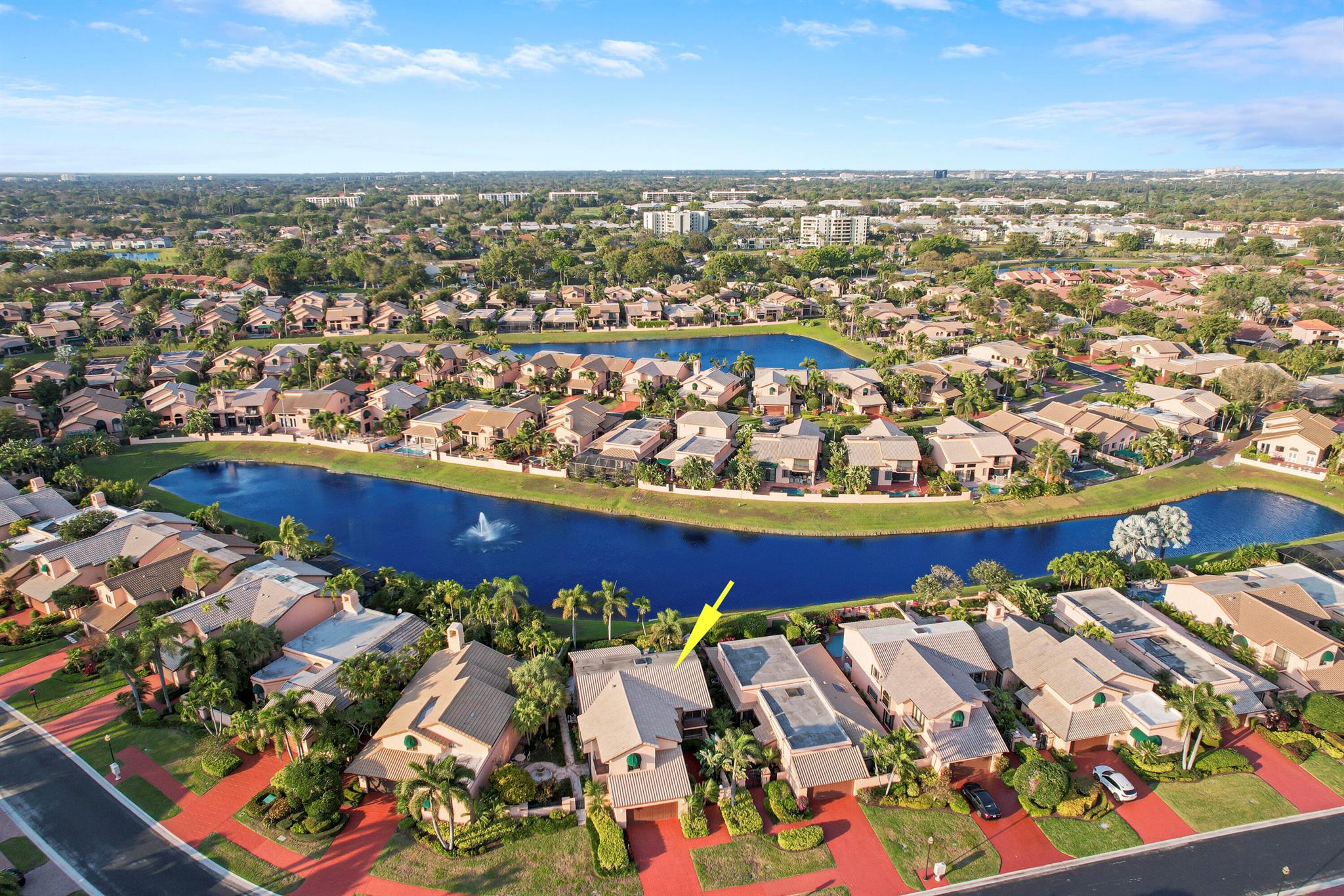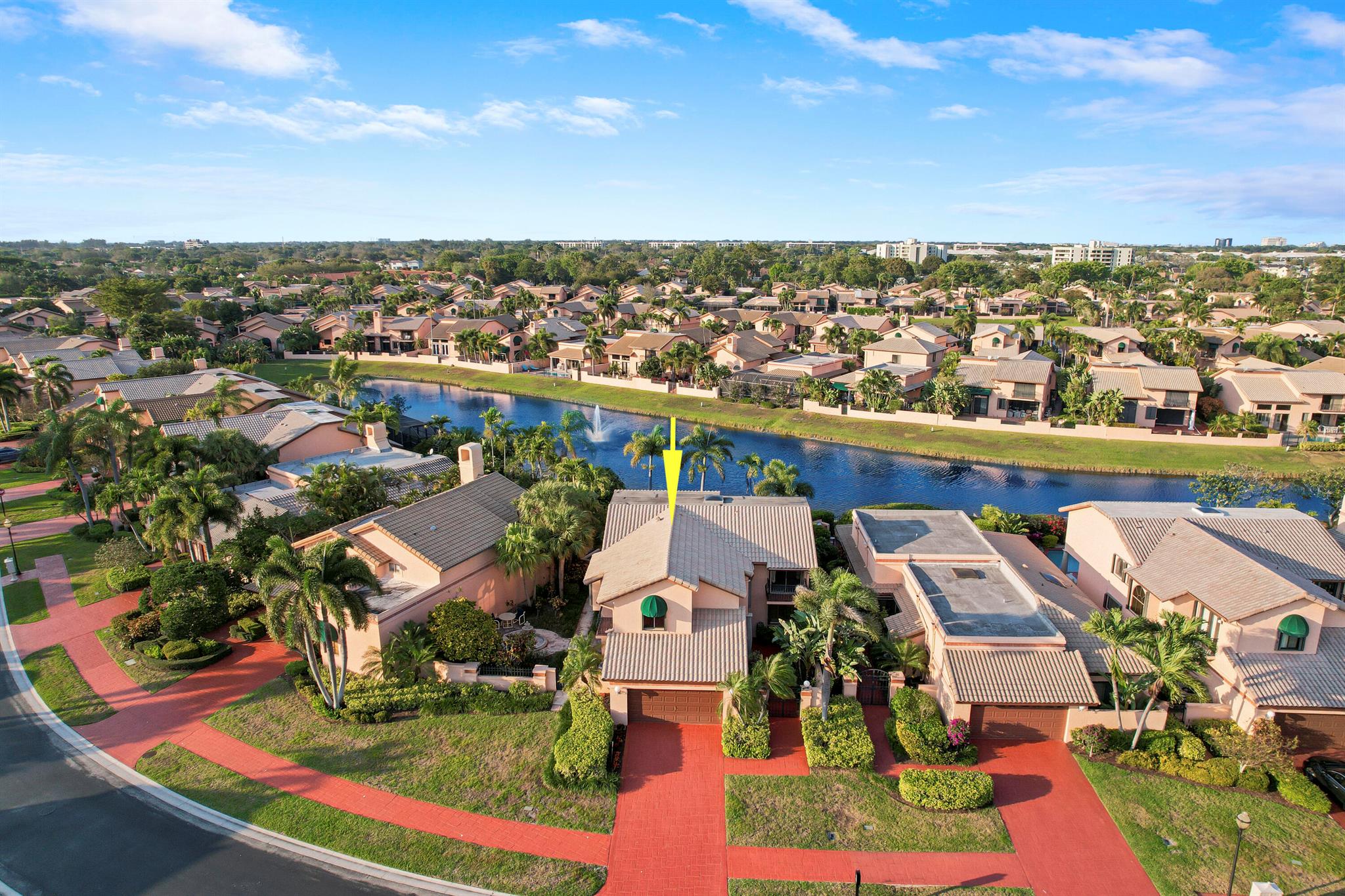 Rarely Available! A stunning Mediterranean style home directly on the LAKE in beautiful Villa Flora BOCA POINTE. This two-story single-family home has 4 bedroom, 3 full baths with high vaulted ceiling, open floor plan and elegant natural light throughout. All four spacious bedrooms have walk-in closets. Large eat-in kitchen, with center island. Patio has views of pool/spa, lake & lake fountain. Close to I95, turnpike, and our beautiful clear blue water beaches.A+ Rated Schools! Minutes from the best restaurants and shopping Boca has to offer. Optional country club living with a la carte memberships available.Sports Complex featuring 15 tennis courts, 4 new pickleball courts, weight training and cardiovascular equipment, a diverse schedule of classes catering to all fitness levels.