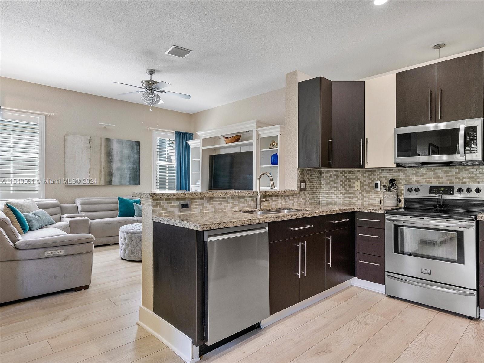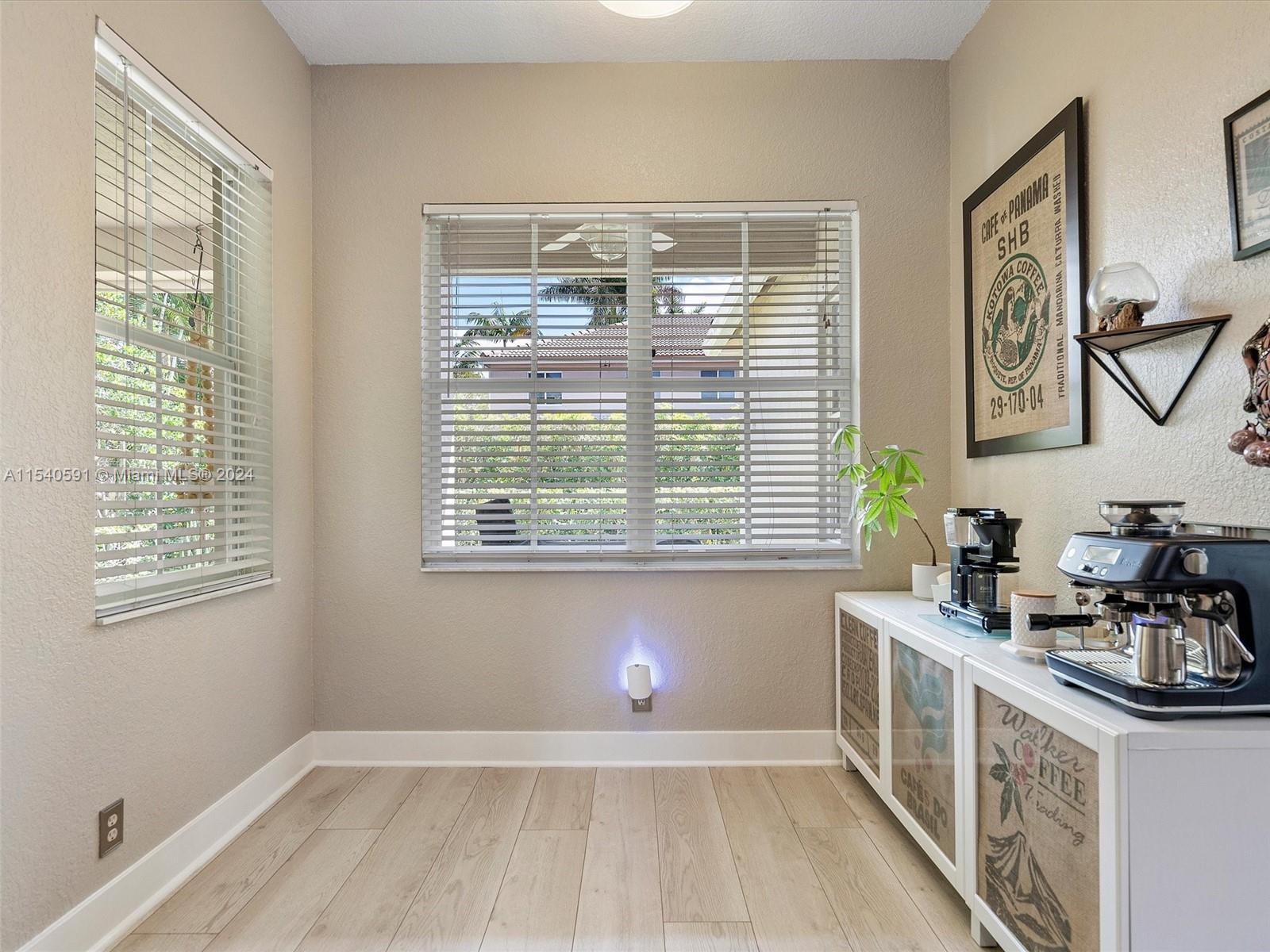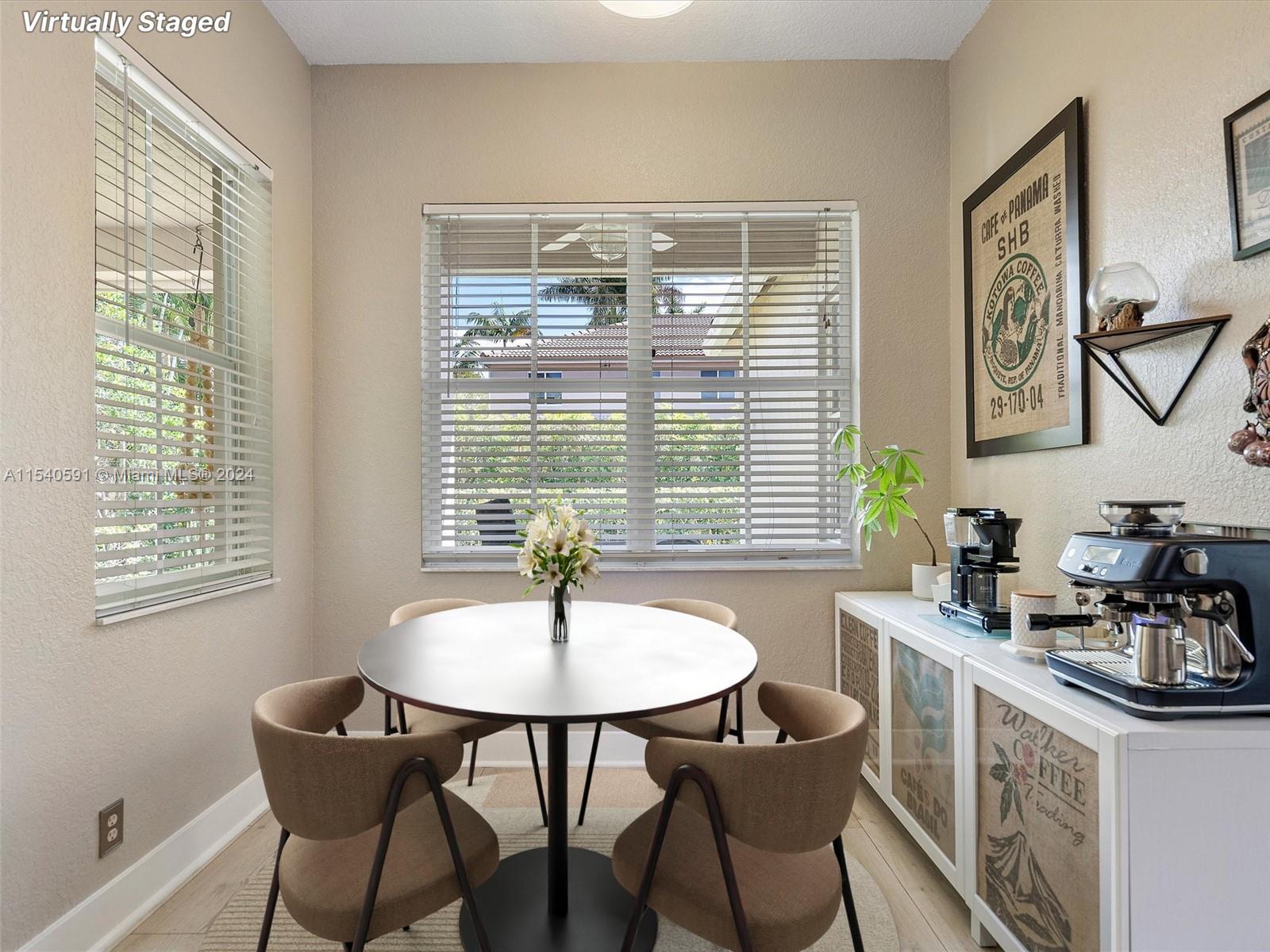 Nestled in highly desirable gated community Savanna, beautiful one-story single-family in corner lot. This home features 3 bedrooms and 2 bathrooms. Upon entering be captivated by the open floor plan with spacious living, dining and family room areas and the abundant natural light. Renovated open kitchen with charming breakfast nook. Renovated bathrooms and built-in closets. Laminate flooring throughout. Large patio with covered area, ideal for entertaining. Laundry inside. 2-car garage. NEW 2021 roof. Resort-style amenities: 24-hour security, clubhouse with cafe and party rooms to rent, 2 pools, water park, BBQ, playground, basketball court, soccer field and hockey ring. Conveniently located close to I-75, restaurants, shopping, and parks. Assigned to A+ rated schools from K to 12 grade.