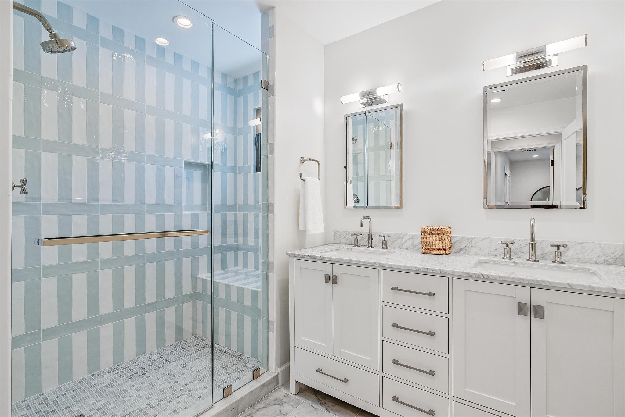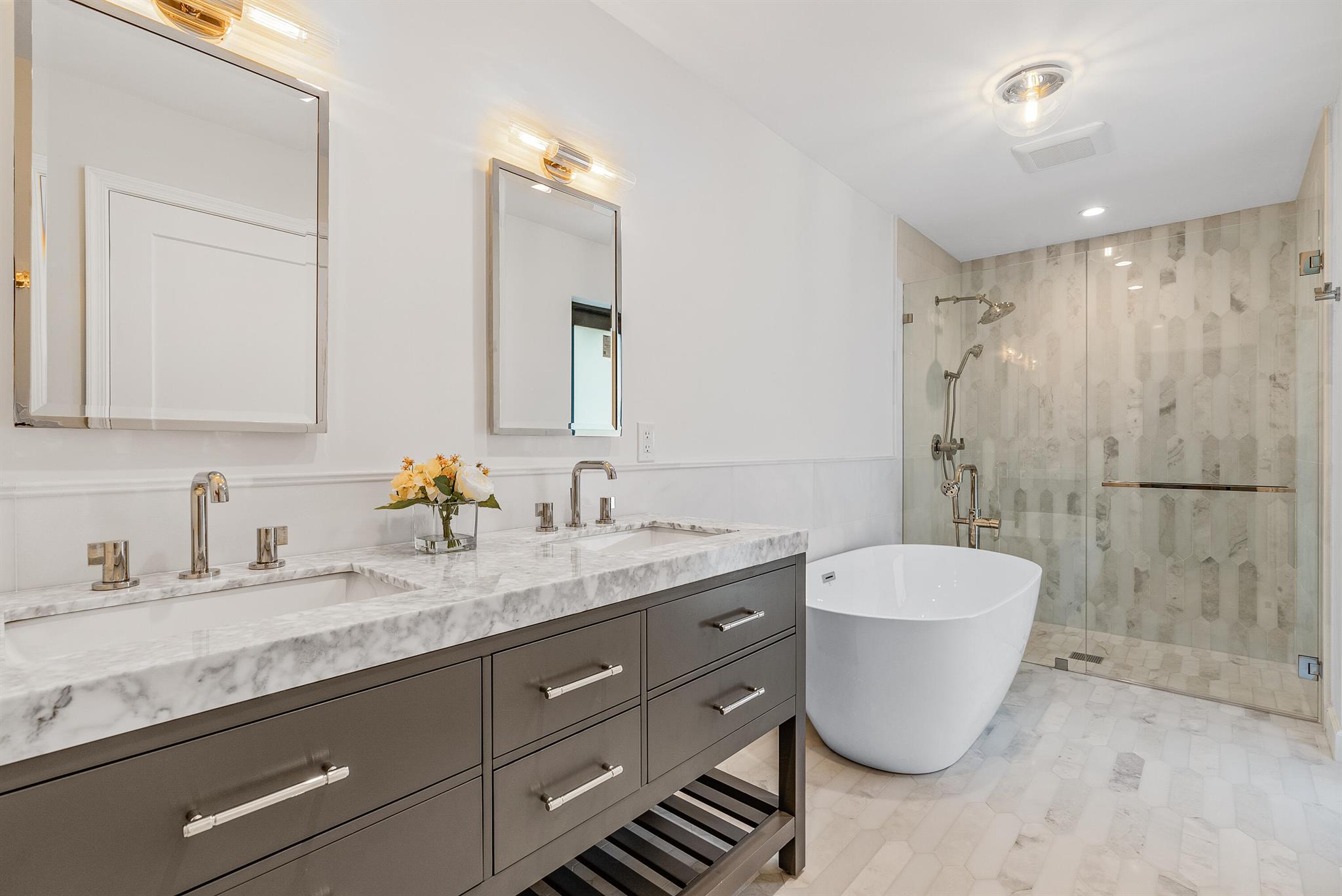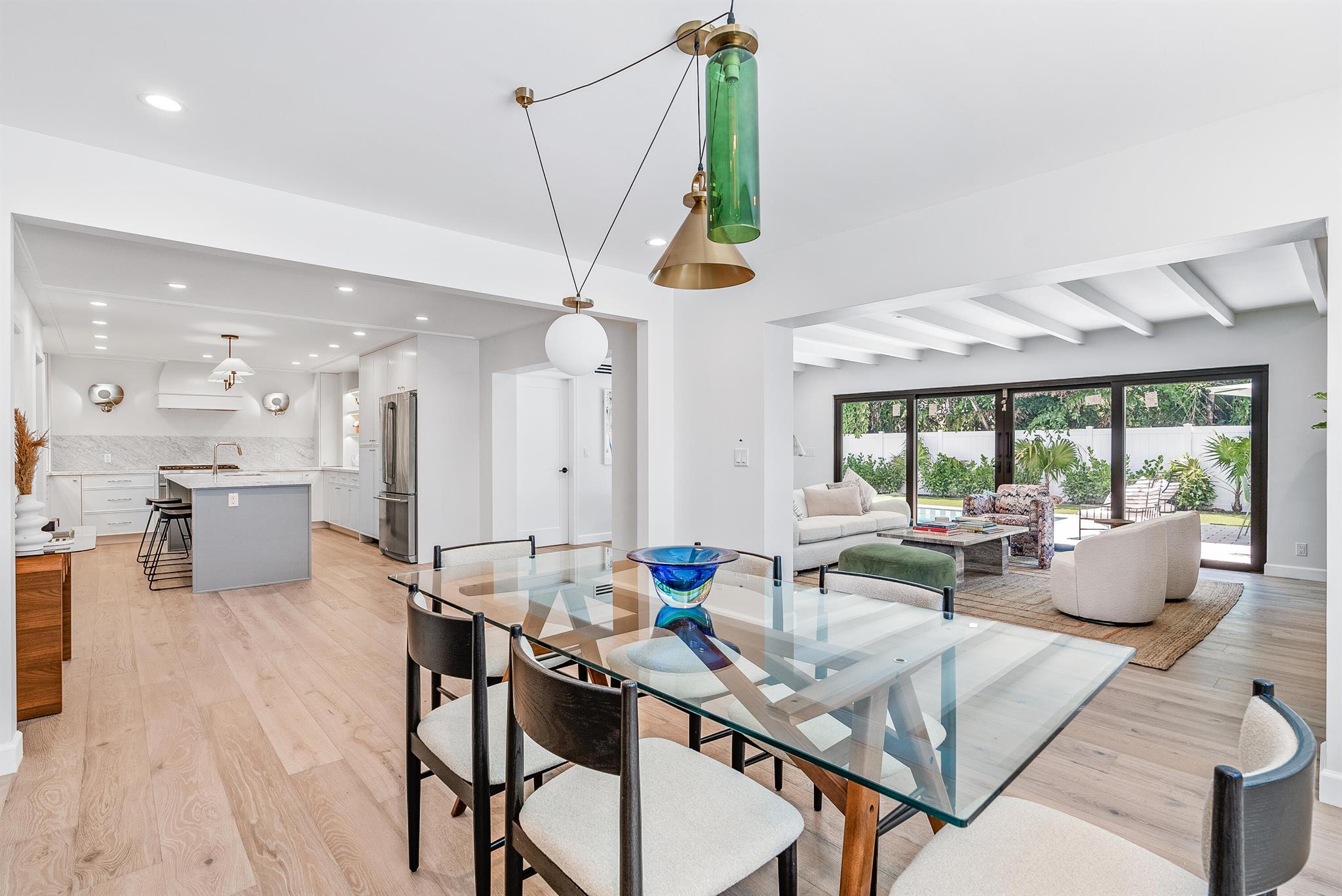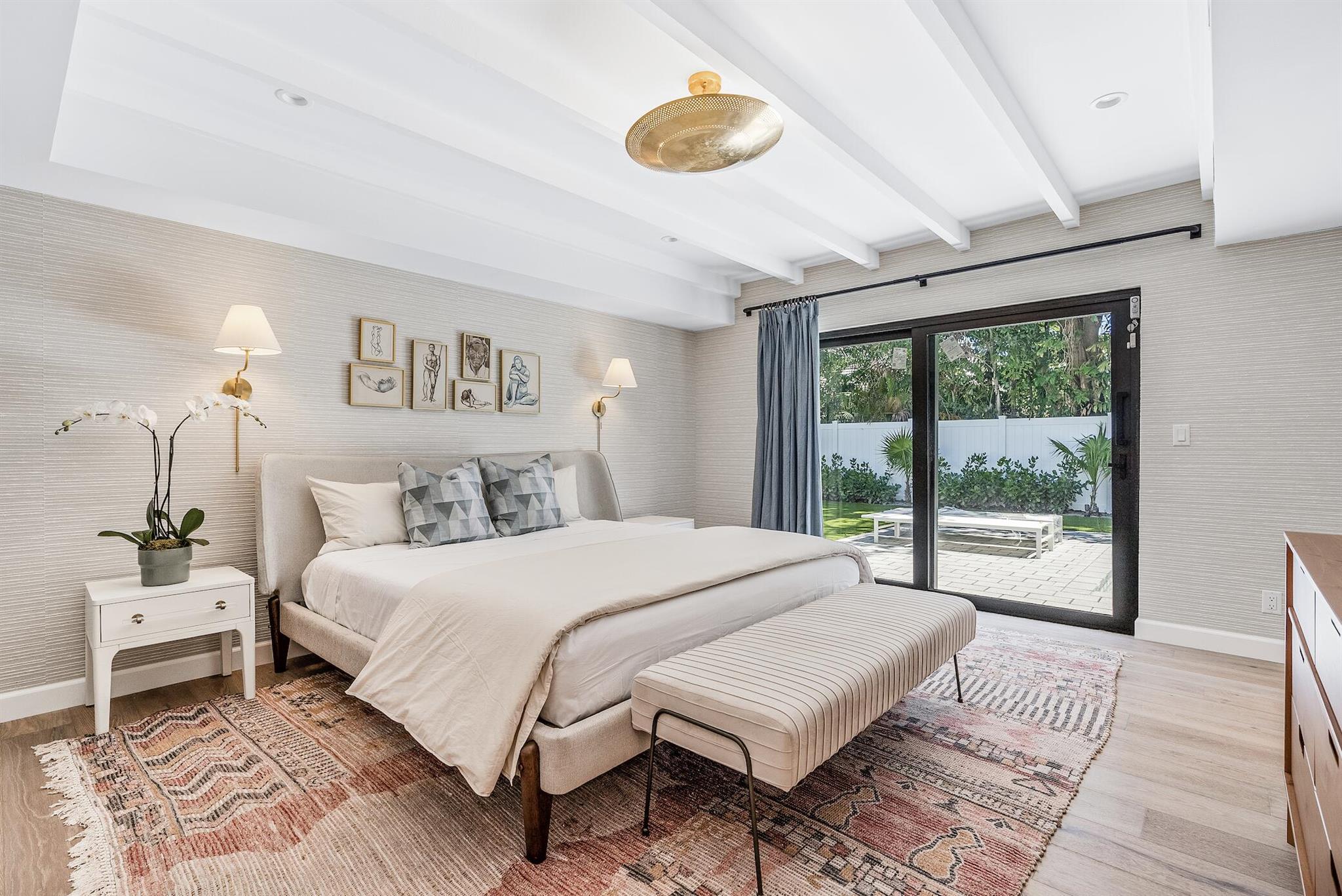 Nestled in the sought-after SoSo neighborhood of West Palm Beach, this 5-bedroom 4.5 bathroom home, renovated by Caroline Rafferty Interiors, offers a spacious layout. The primary suite is conveniently situated on the first floor, while four additional bedrooms occupy the upper level. The main floor boasts an open living area, a modern kitchen, and a den/office, seamlessly combining comfort and functionality.Step outside to discover a tranquil oasis with a newly installed pool and patio, surrounded by lush landscaping. Enhanced with new impact windows, doors, roof, A/C units, and water heaters, this residence harmoniously merges elegance with peace of mind, providing an ideal retreat for SoSo living.Located just a short walk away from the Intracoastal.