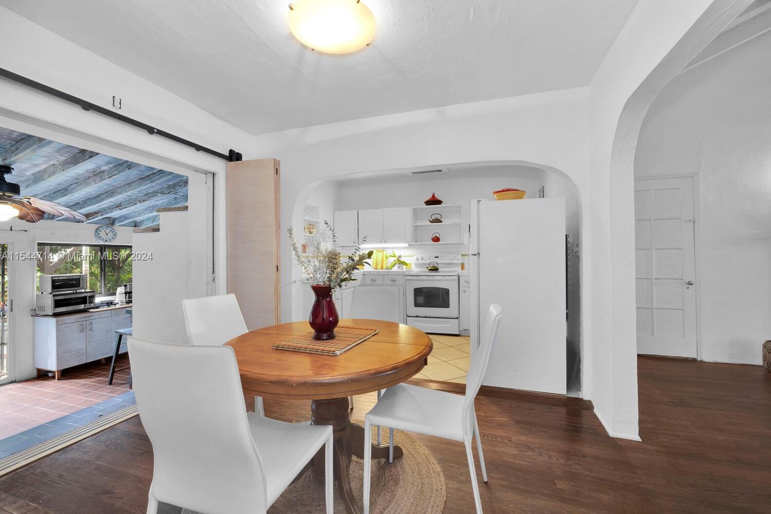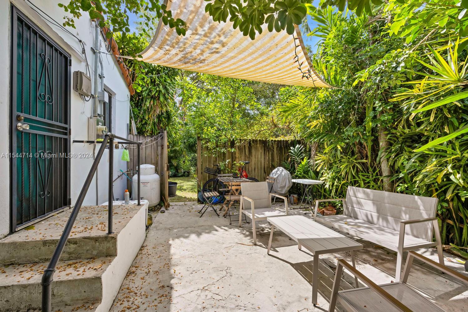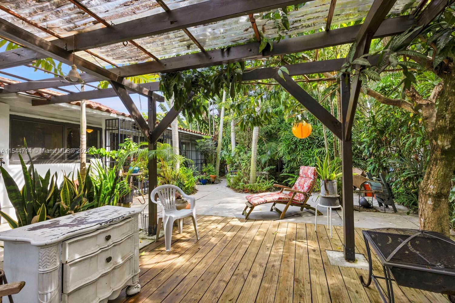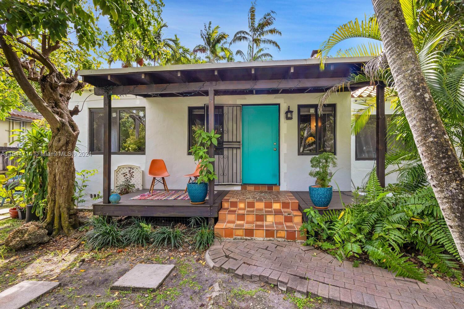 Charming North Grove bungalow on a quiet, tree-lined, no thru-traffic street. 3BR/2BA main house + a 1BR/1BA attached guest quarters (w/ private entrance), Light-filled living spaces feature vaulted, wood-beamed ceilings, working fireplace & wood flooring. Classic kitchen w/ white cabinetry. Living & dining rooms + enclosed Florida room w/ built-in bar. Enjoy outdoor living & entertainment in the private tropical garden w/ wooden deck, exotic native plants & fruit trees (mango, avocado, starfruit and lychee). High sea-level elevation (not in a flood zone). Located just a short walk or bike ride to bayfront parks & marinas and the Grove village center’s trendy galleries, boutiques & cafes. Minutes drive to downtown, MIA, Key Biscayne & the beaches.