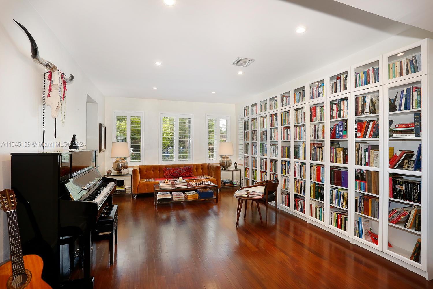 Captivating, gated home on a quiet, tree-lined street in prestigious North Coconut Grove. Light-filled living spaces feature custom built-ins & gleaming solid wood floors. Recent major renovation including: 2 new modern-style baths, impact windows, updated electrical, HVAC and roof (2022). Stunning kitchen features new European-style cabinetry, stone countertops, stainless appliances & breakfast bar. Enjoy outdoor living & entertaining in the ultra-private garden w/lush tropical landscaping that surrounds the home & oversized pool. Not in a flood zone -14’ sea-level elevation. Walk or bike to bayfront parks & marinas and to the Grove village center’s trendy galleries, boutiques & cafes. Just minutes to downtown, MIA, Coral Gables, Key Biscayne and the Beaches.