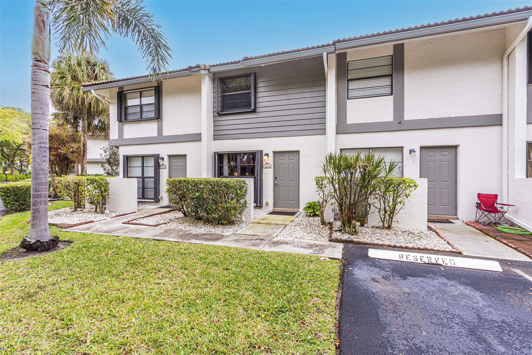 Very Strong Association. Can purchase with 3%. updated and impeccably kept condo/townhouse w/low maintenance, no assessments, and they have reserves! Walking distance to University Dr, shops, restaurants, & a 2-minute drive to Whole Foods! You can't beat this LOCATION, LOCATION. The first floor has beautiful tile throughout, & beautiful wood cabinetry in the kitchen w/granite counters, and SS appliances. Impact Hurricane windows and doors along with accordion shutters. Both bathrooms have been beautifully updated & custom cabinetry in all closets. W/D in unit. Large patio, right across from the pool area, and the garden area is lined with Magnolia trees. Very strong association. . No downpayment requirement per the association.
