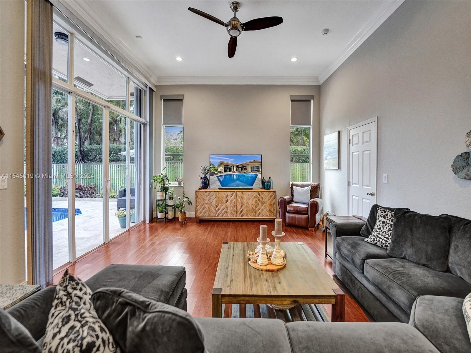 Unveil the charm of this residence in The Ridges with 4 bedrooms with custom closet cabinetry, and one bedroom is transformed into a well-designed custom office. This home includes 3 upgraded bathrooms and a primary suite bathroom with a Vessel tub and marble finishes. The contemporary kitchen has Silverstone countertops and stainless steel appliances. Lush tropical greenery that captivates curb appeal. Retreat to your private oasis in the backyard, where a travertine patio leads to a magnificently refinished Diamond Brite pool with heating and a saltwater system, all enclosed within a fully fenced yard for privacy. Situated within walking distance of the library and highly acclaimed "A" schools, this home is an exquisite find.
