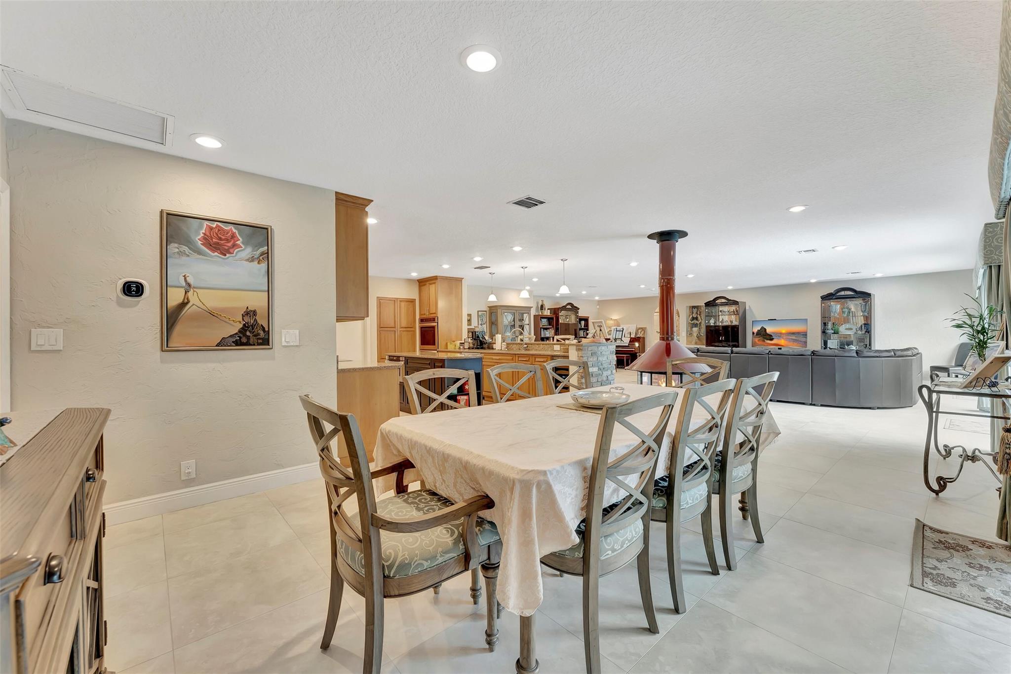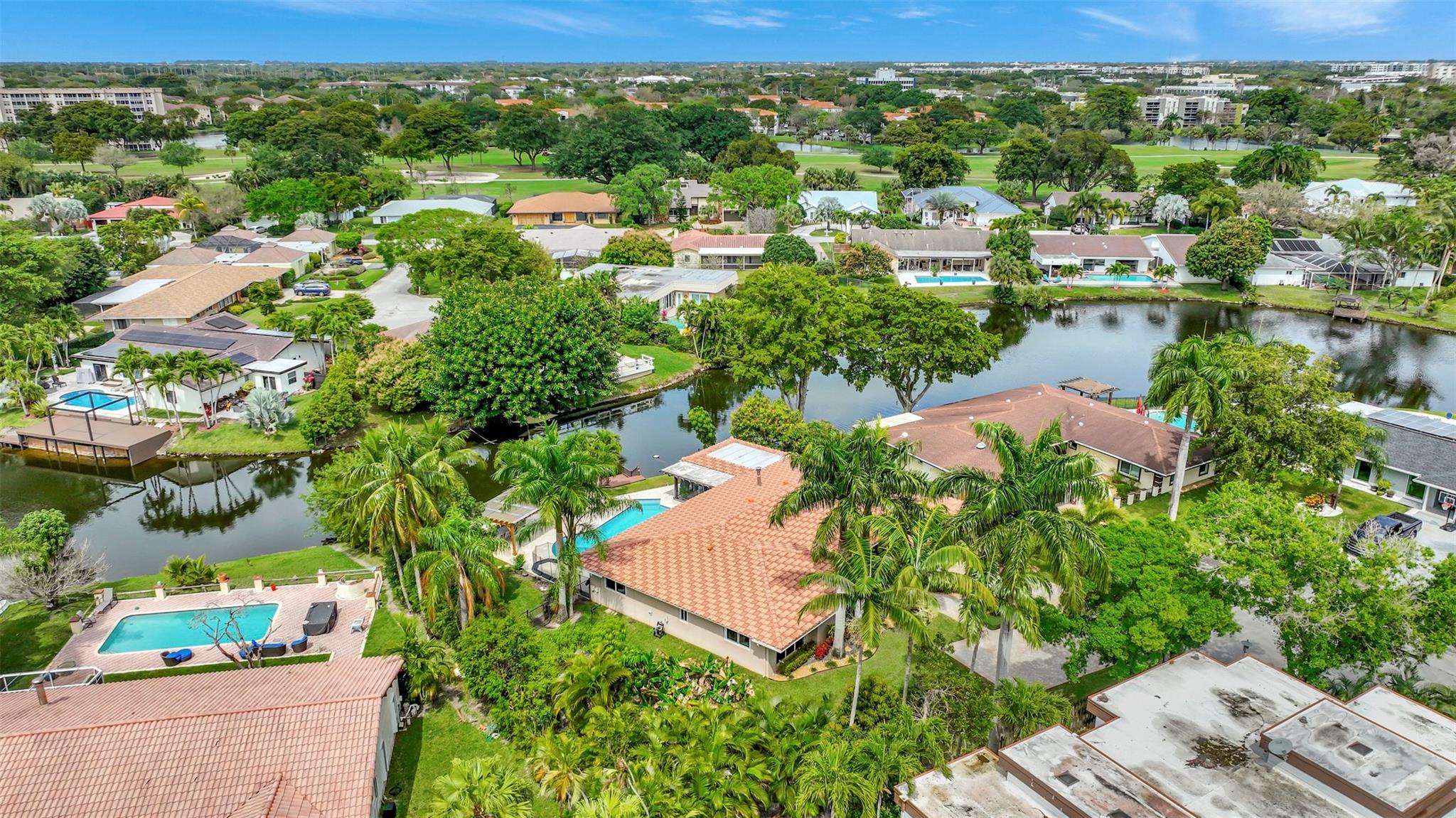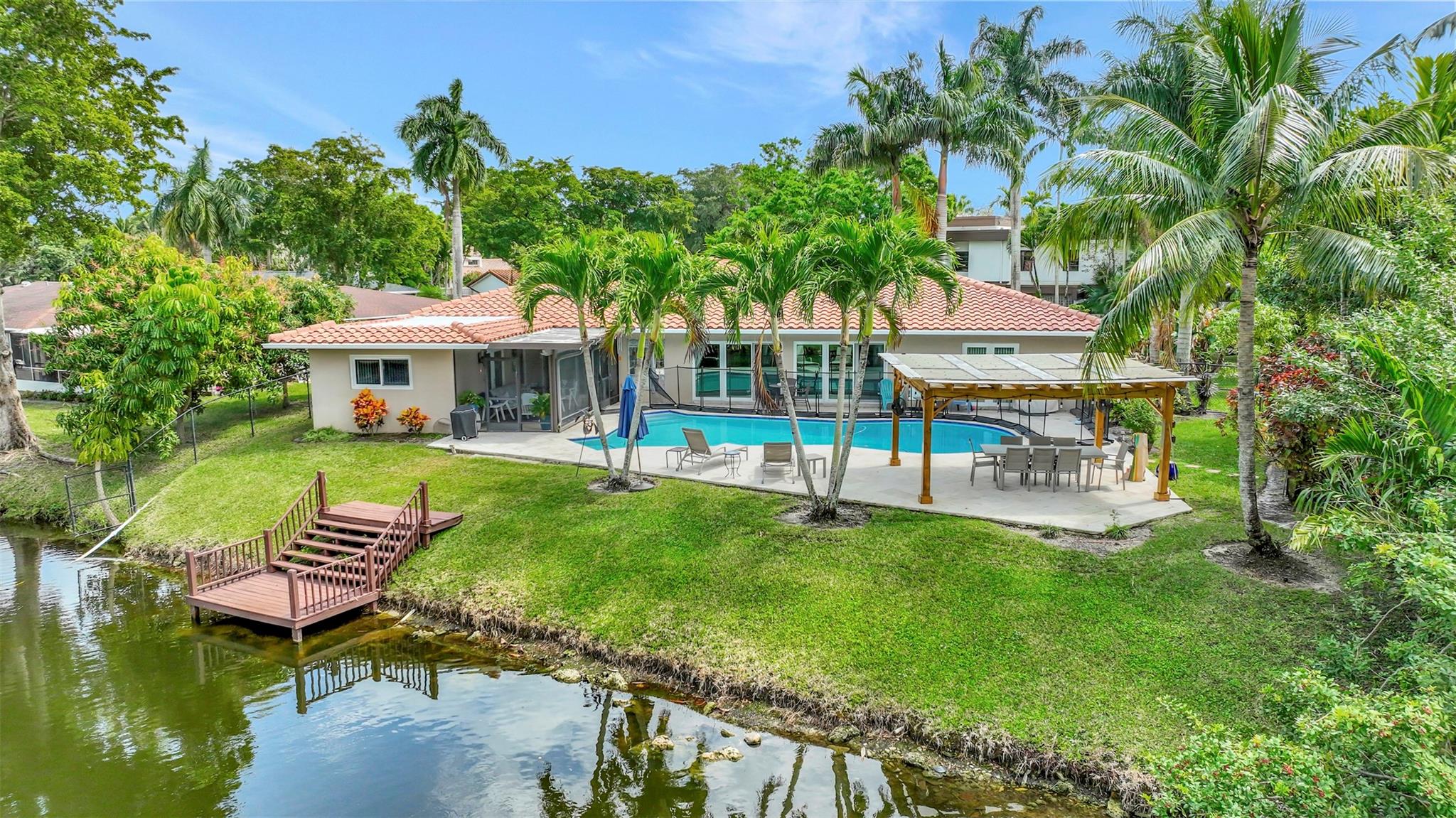 THIS ONE WILL IMPRESS! 5/3 single family home in Jacaranda Country Club. Spacious home on a quiet cul de sac with a water front oversized lot & 2 paved driveways. Large remodeled kitchen with custom wood cabinets, center island with Kitchen Aid & Bosch appliances, including double ovens for added convenience. . Enjoy the wood burning fireplace on chilly winter evenings and open concept ideal for entertaining with a split floorplan for privacy. Bathrooms have all been remodeled Motorized Hunter shades in great room. You will love floating in the fully remodeled salt water pool with a view of the serene water, the travertine deck, custom Pergola and screened in patio for those relaxing evenings. Close to shopping, restaurants and airport. ROOF 2013, AC's 2021 and 2023, IMPACT THROUGHOUT.