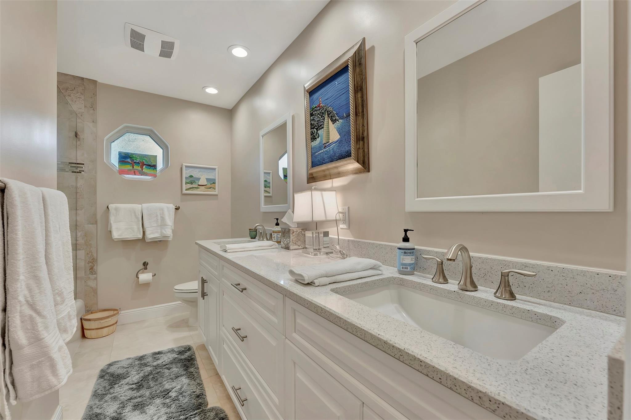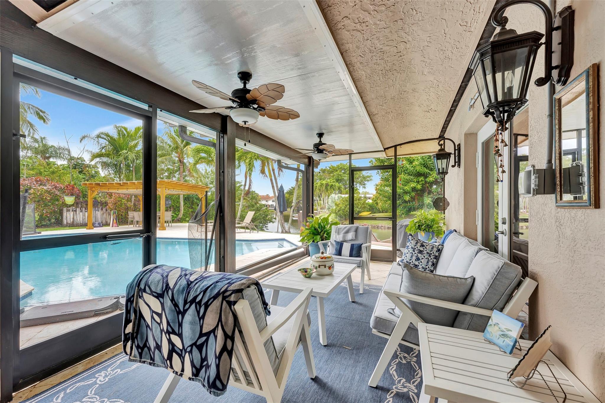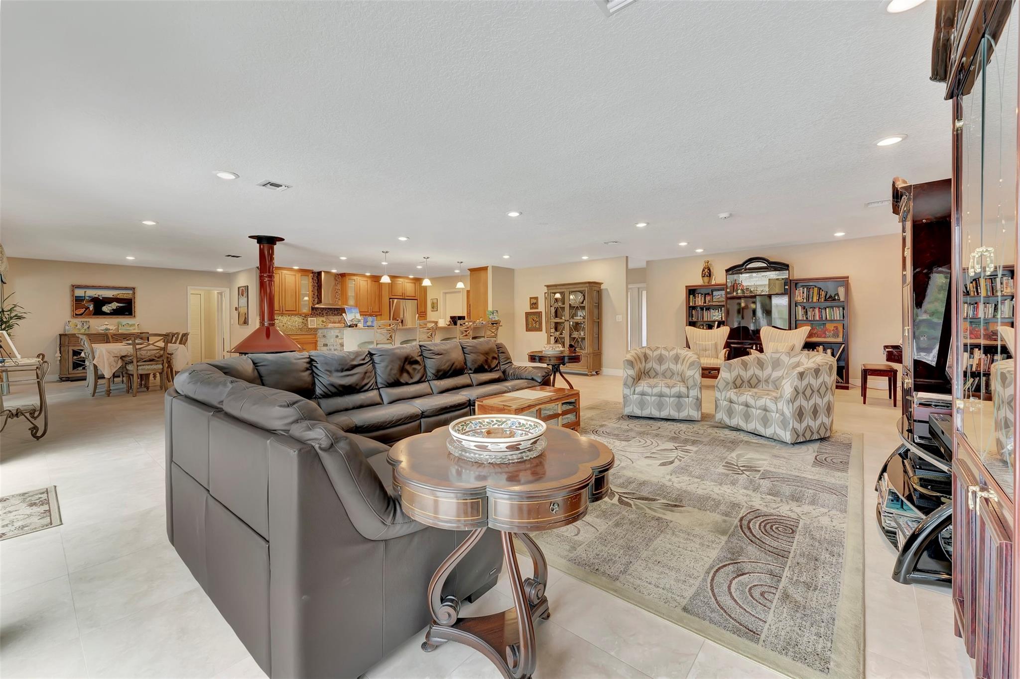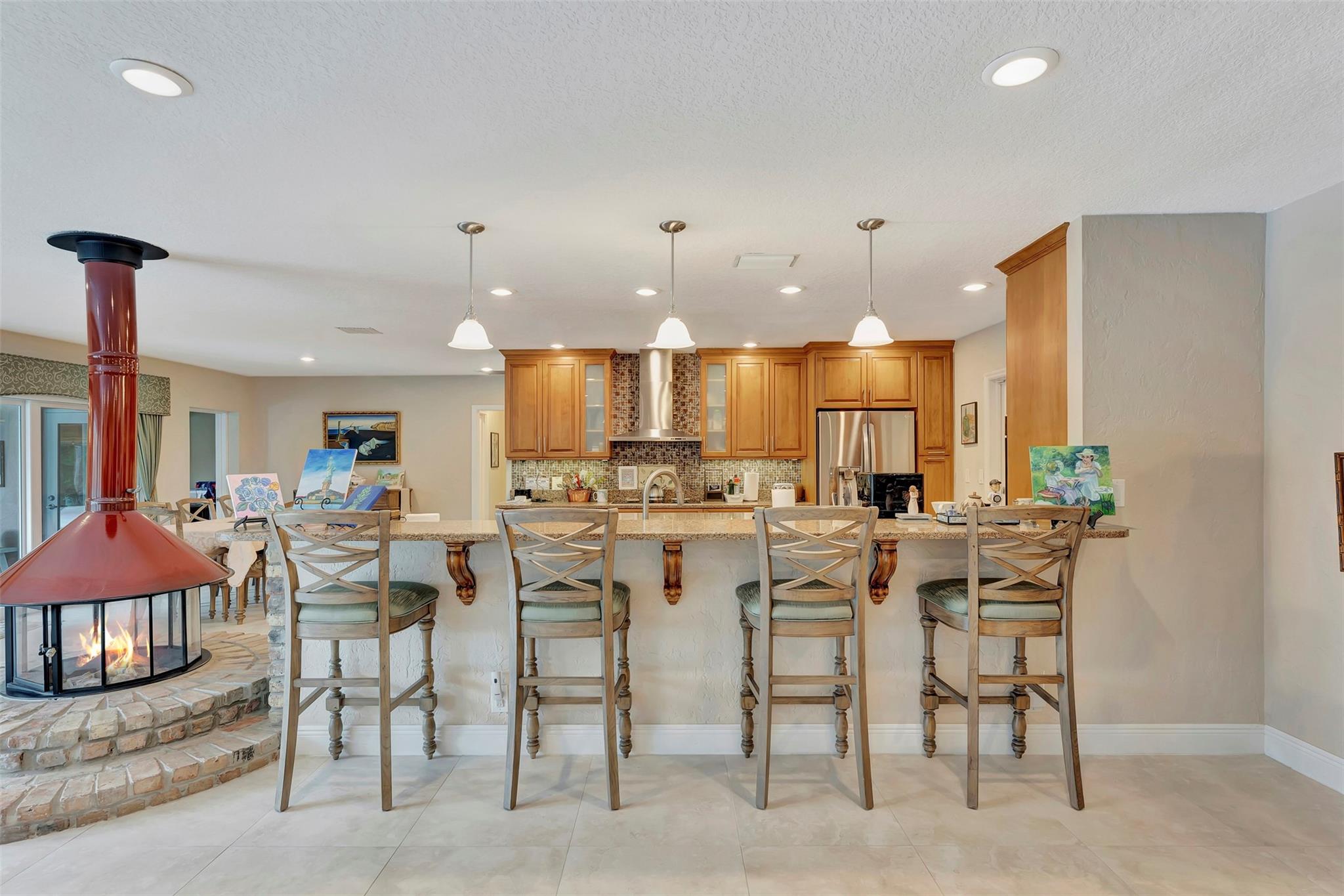 THIS ONE WILL IMPRESS! 5/3 single family home in Jacaranda Country Club. Spacious home on a quiet cul de sac with a water front oversized lot & 2 paved driveways. Large remodeled kitchen with custom wood cabinets, center island with Kitchen Aid & Bosch appliances, including double ovens for added convenience. . Enjoy the wood burning fireplace on chilly winter evenings and open concept ideal for entertaining with a split floorplan for privacy. Bathrooms have all been remodeled Motorized Hunter shades in great room. You will love floating in the fully remodeled salt water pool with a view of the serene water, the travertine deck, custom Pergola and screened in patio for those relaxing evenings. Close to shopping, restaurants and airport. ROOF 2013, AC's 2021 and 2023, IMPACT THROUGHOUT.